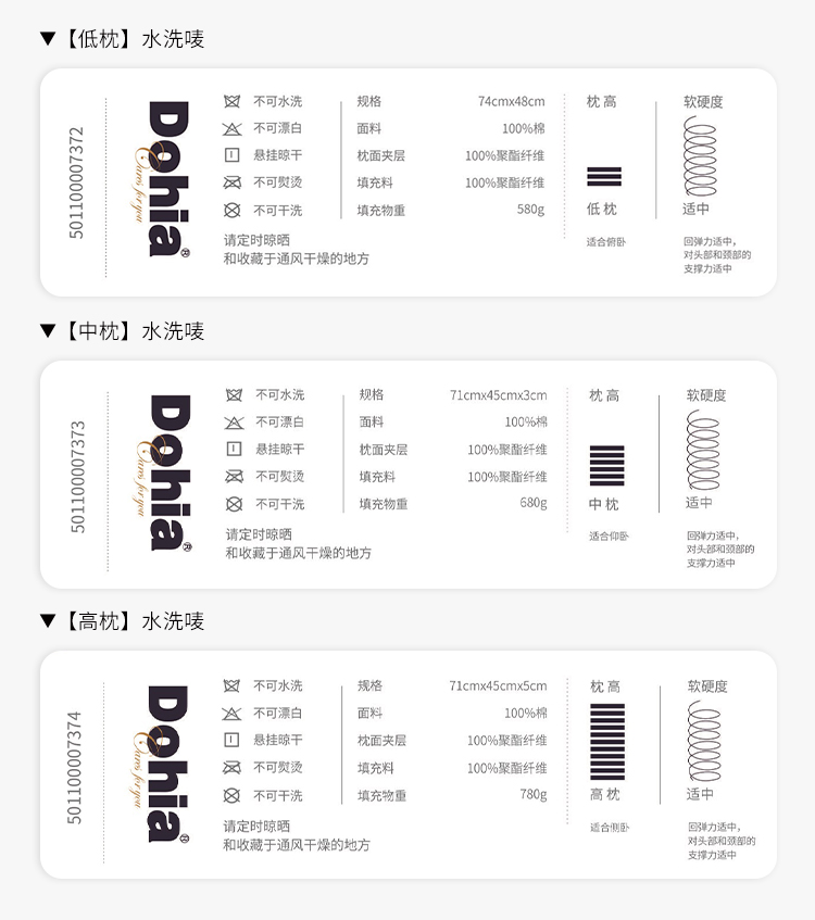 多喜爱 安睡优棉对枕(高/中/低) /FXcs