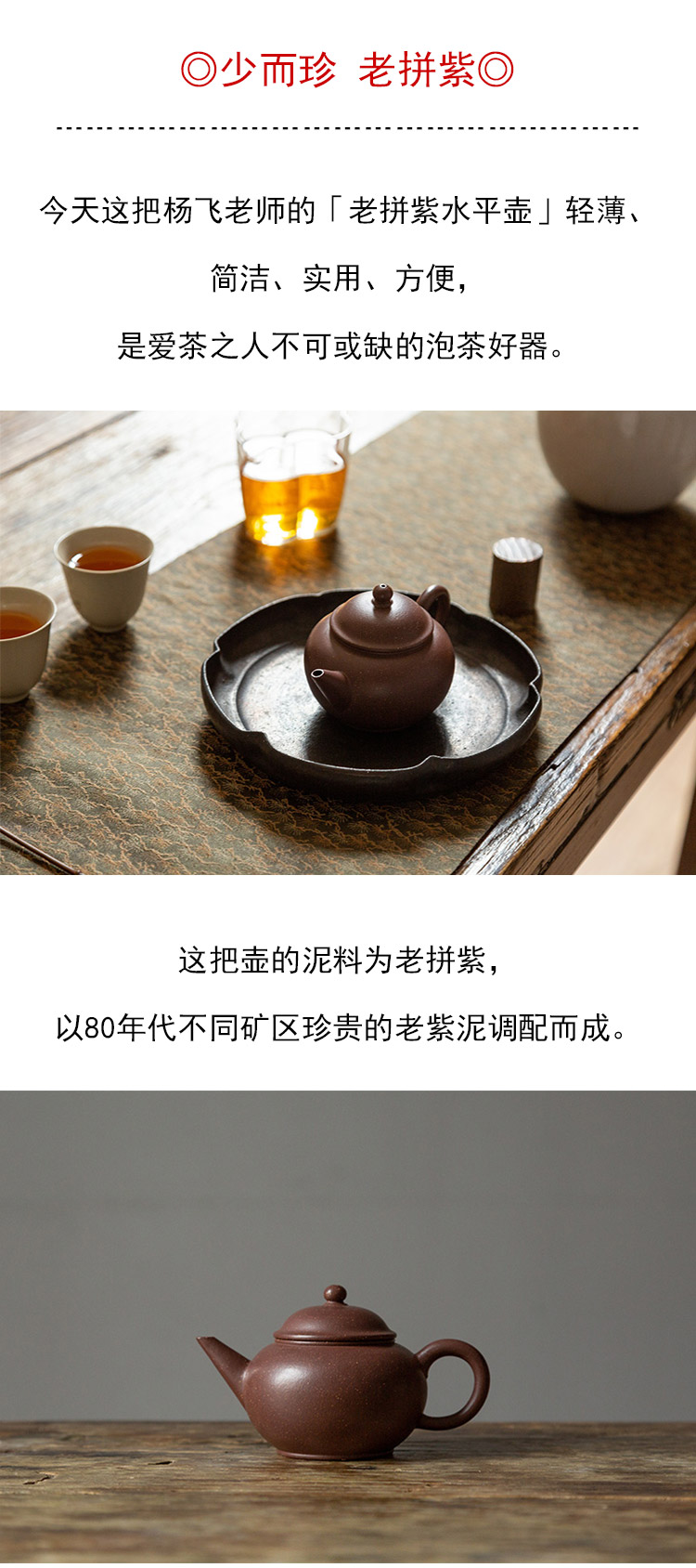 茶香记 紫砂壶 老拼紫水平壶 泥料少而珍 经典器型 周正挺立 泡茶壶