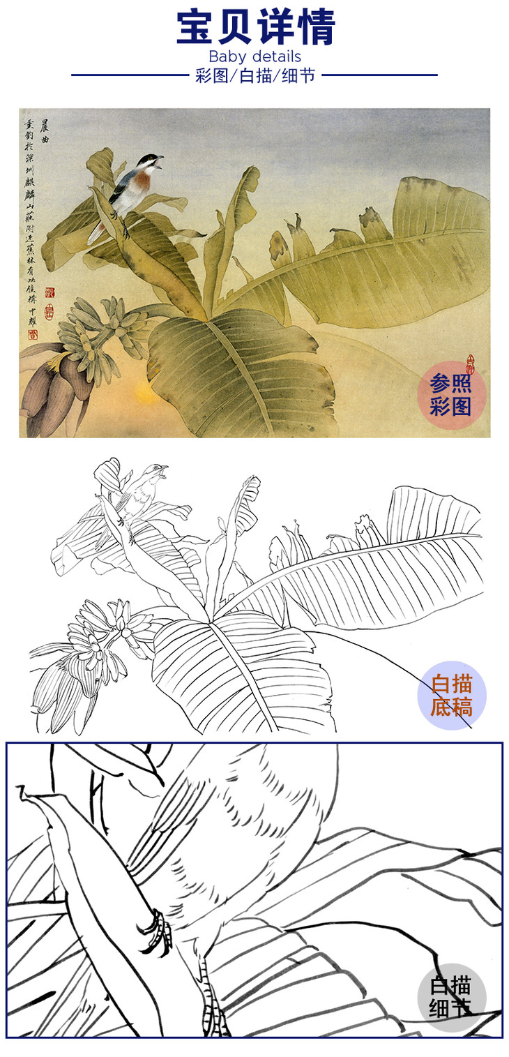 横幅周中耀工笔花鸟白描底稿-晨曲-DV08