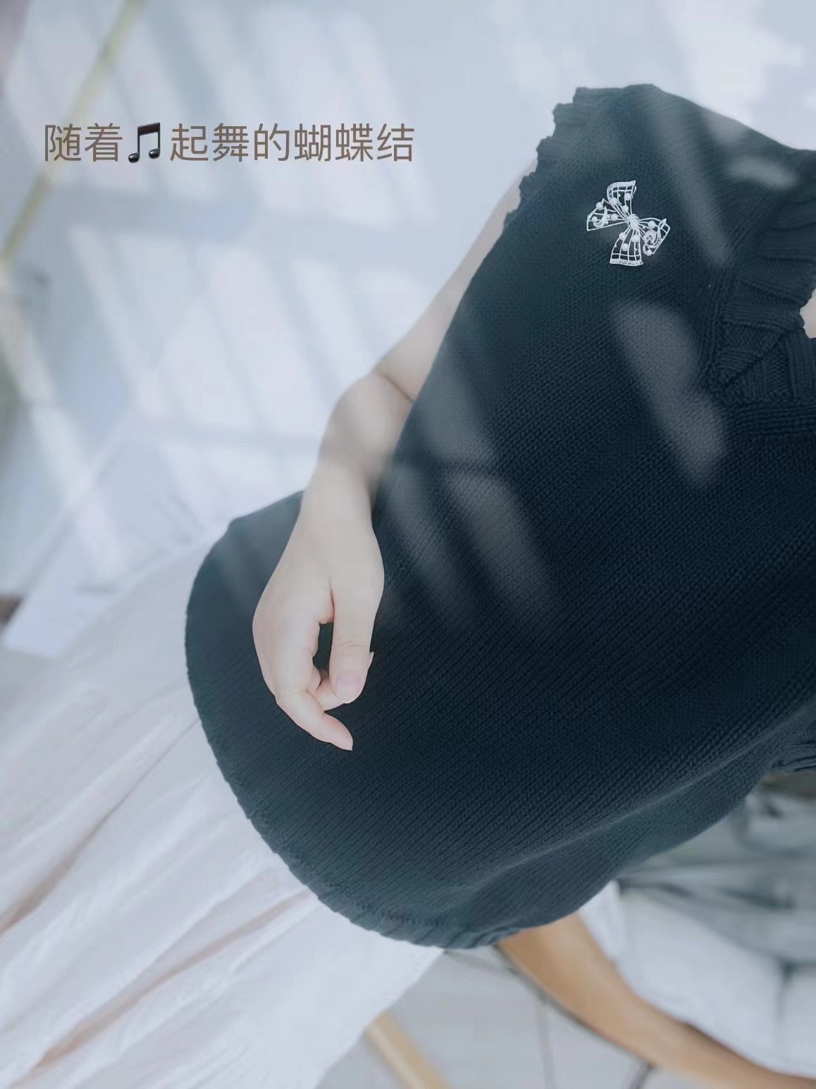 落满了mini正圆珠的一款蝴蝶结胸针,仔细看的话,上面还有音乐的符号,心情很好。