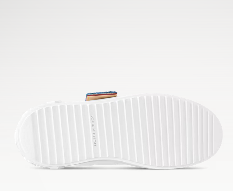 牛仔蓝的帆布挂件可以取下来,鞋身也比较简洁,休闲或者商务一点的搭配都可以