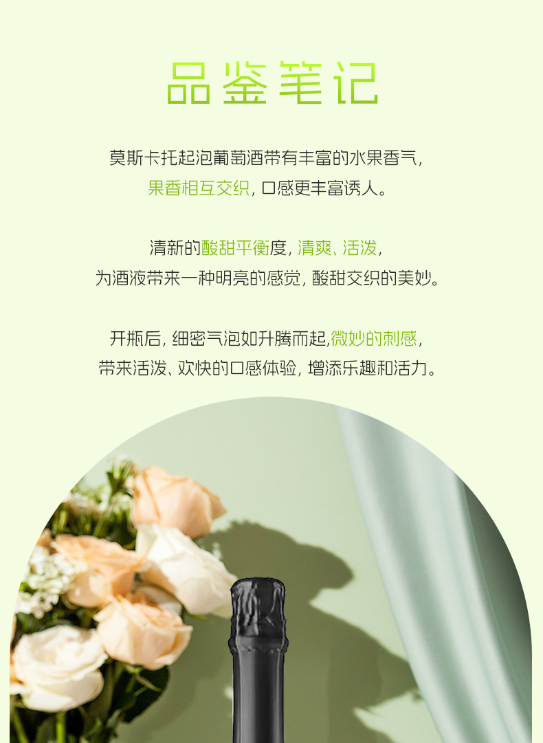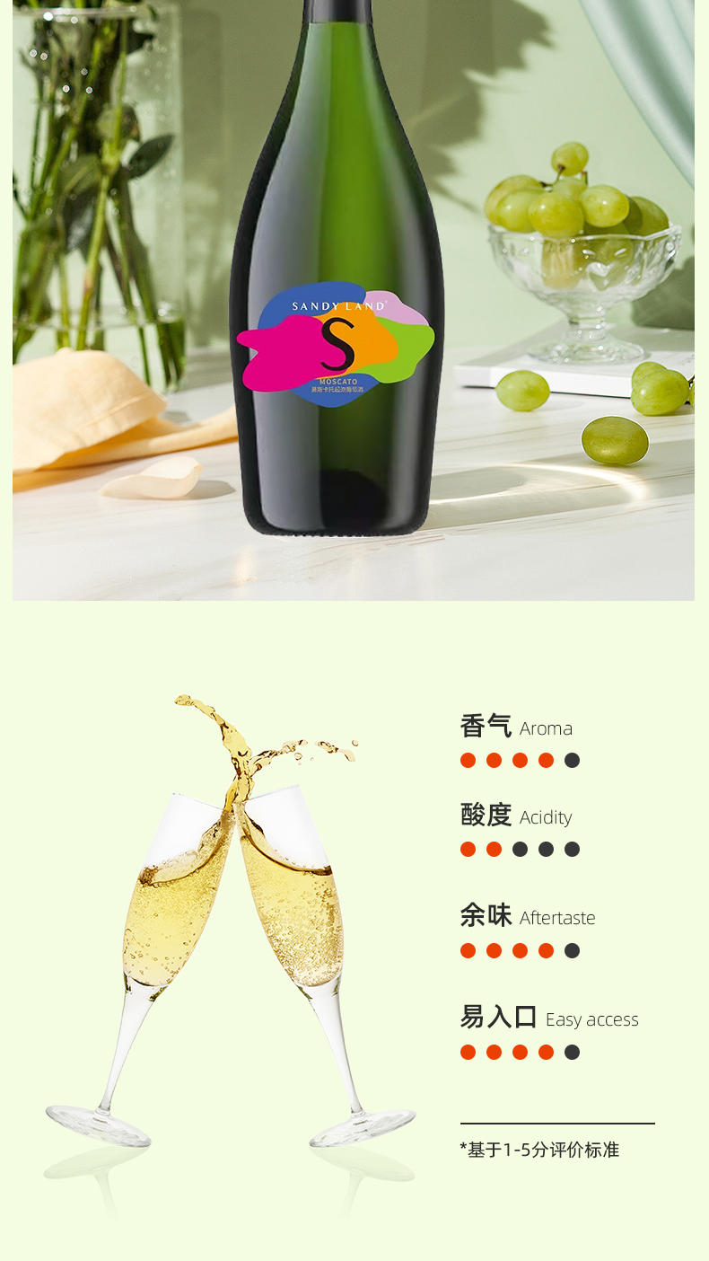 沙地酒庄·莫斯卡托起泡酒 750ml*2 白桃蜜瓜香气 气泡绵密