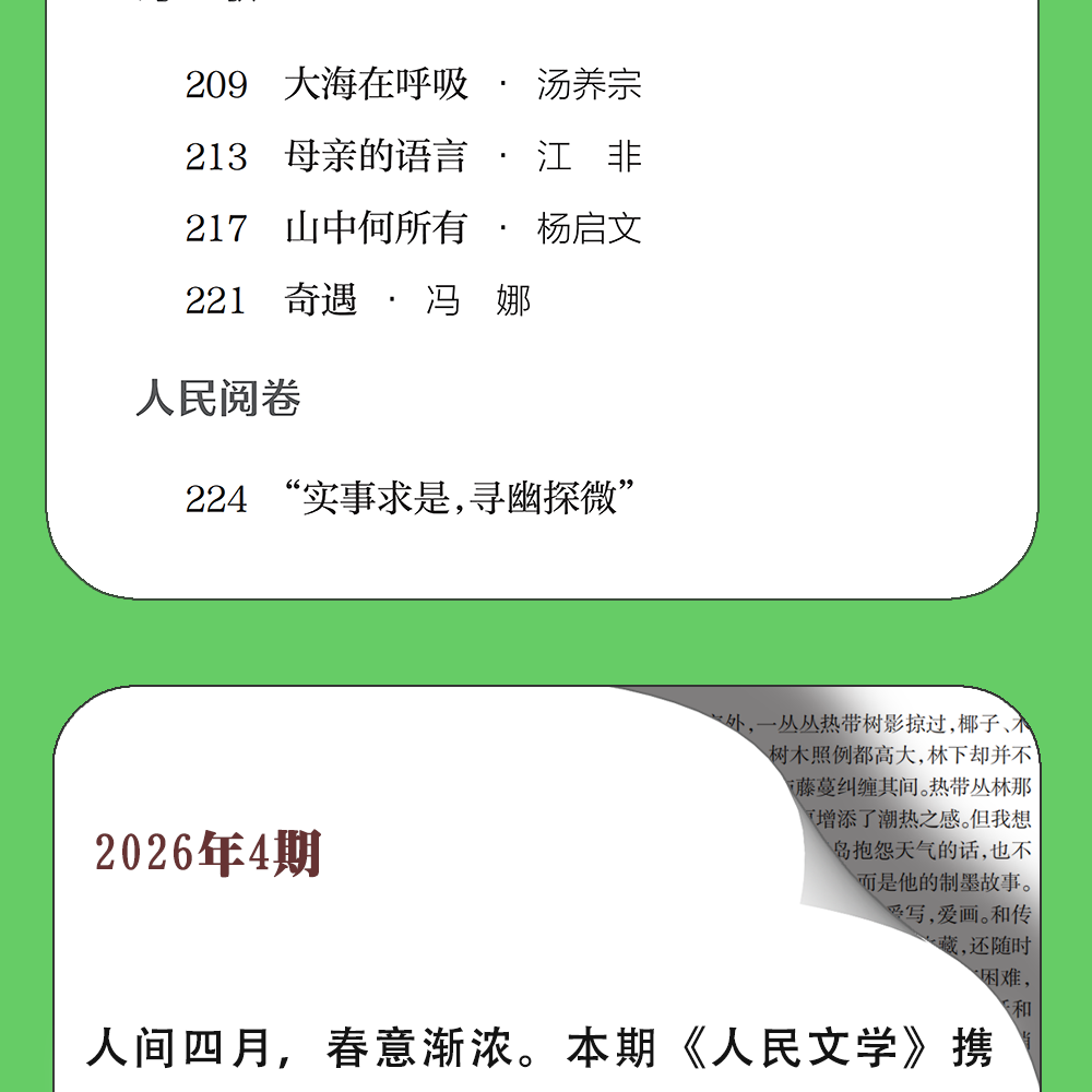 【随刊赠专用稿纸】首发艾伟长篇小说《春歌(下)》人民文学2026年04期
