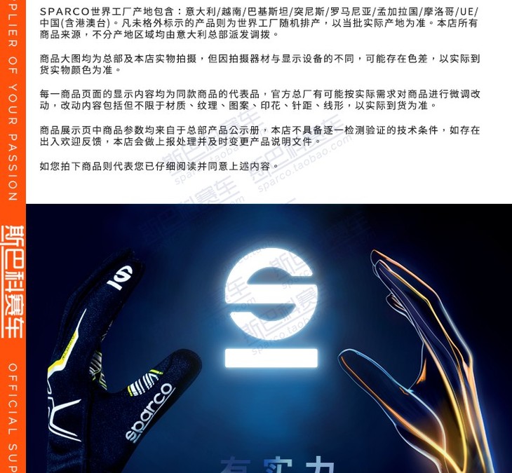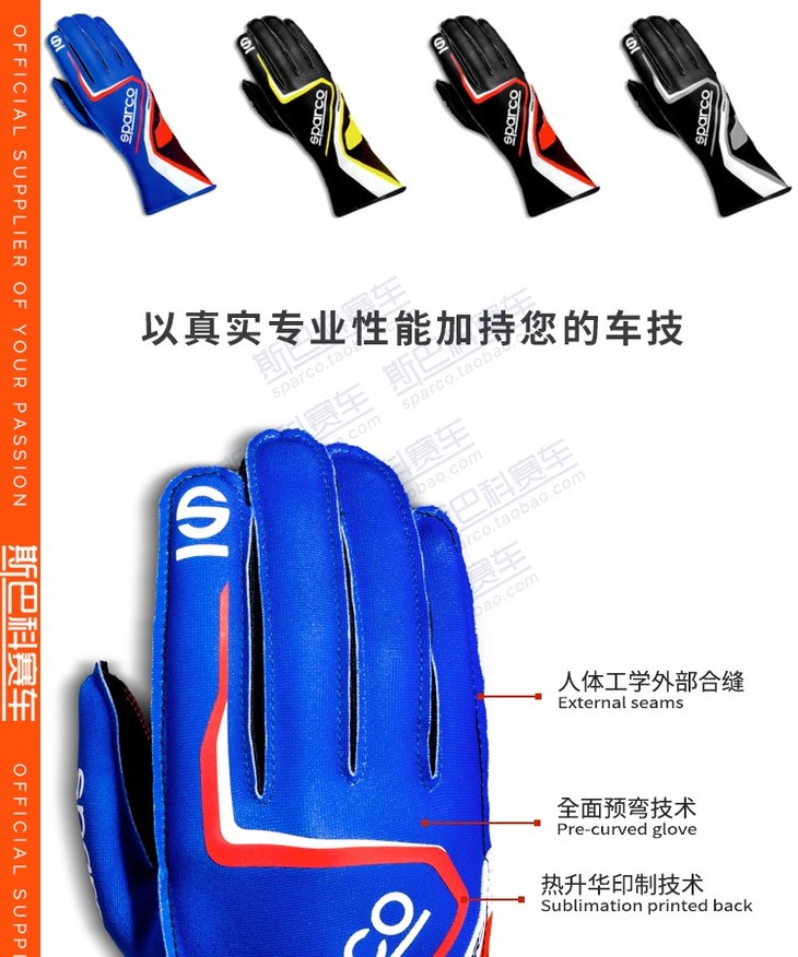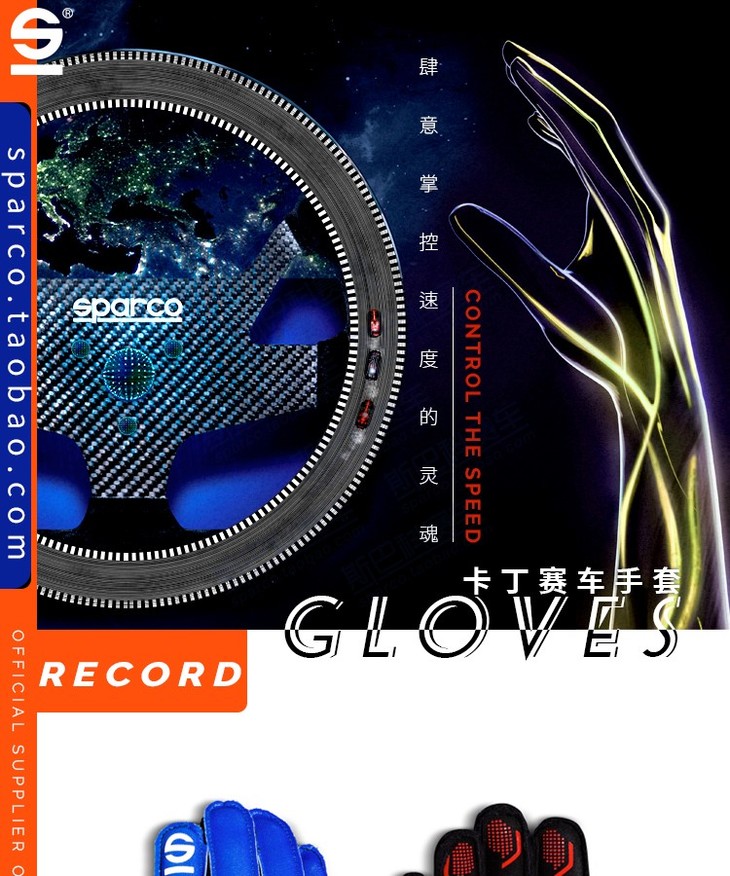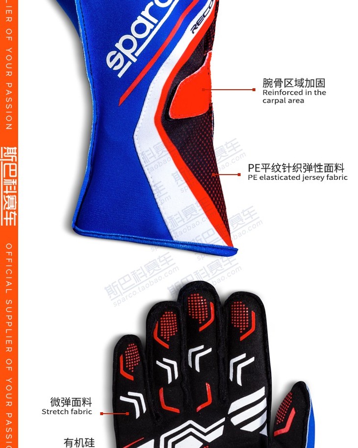 SPARCO手套 卡丁 防滑 弹性透气 硅胶掌纹 RECORD