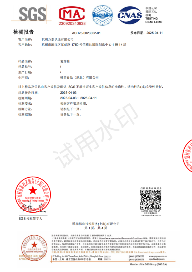 麦芽糖农残检测报告,无检出