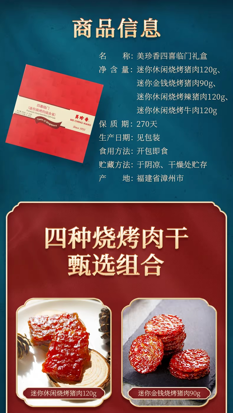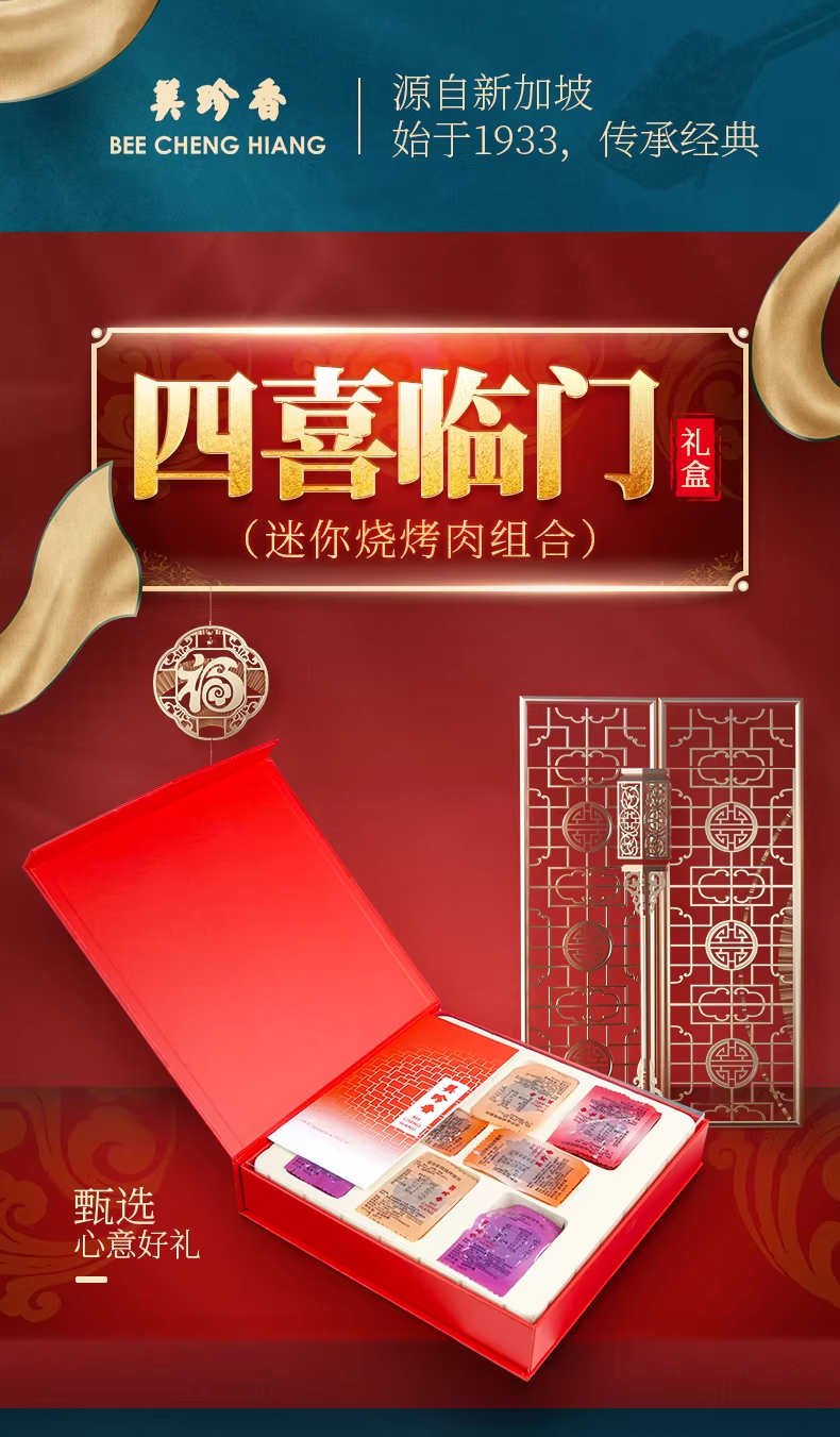 【送礼·特色礼盒】美珍香四喜临门礼盒450g烧烤肉干送礼送长辈日常零食体面大气