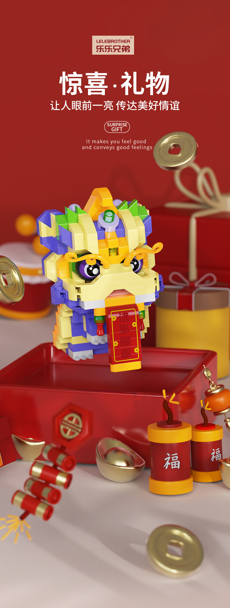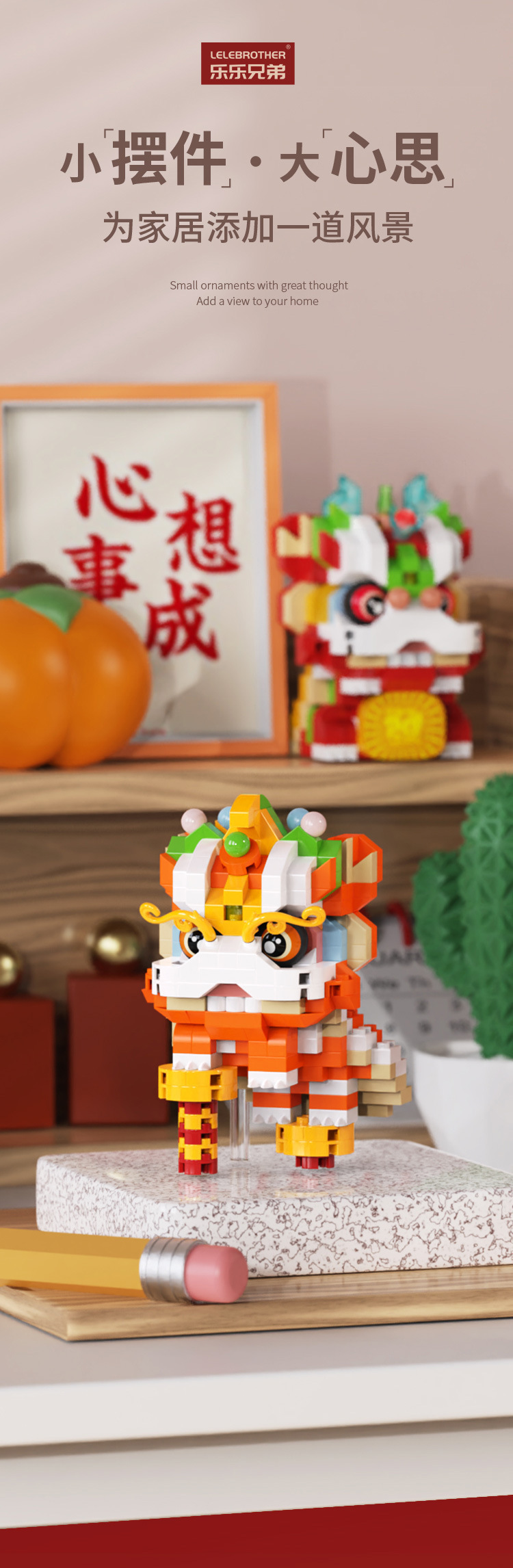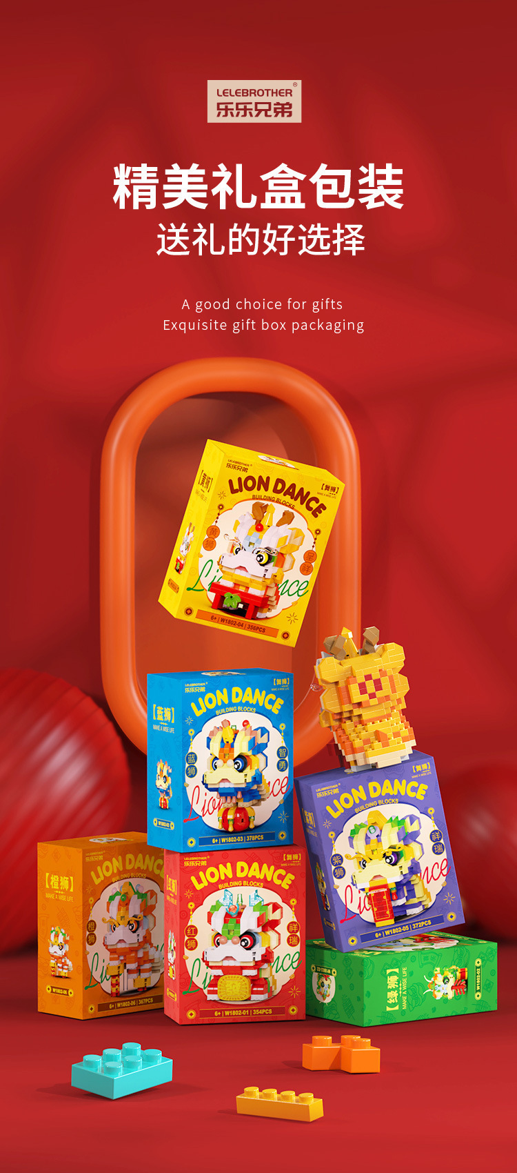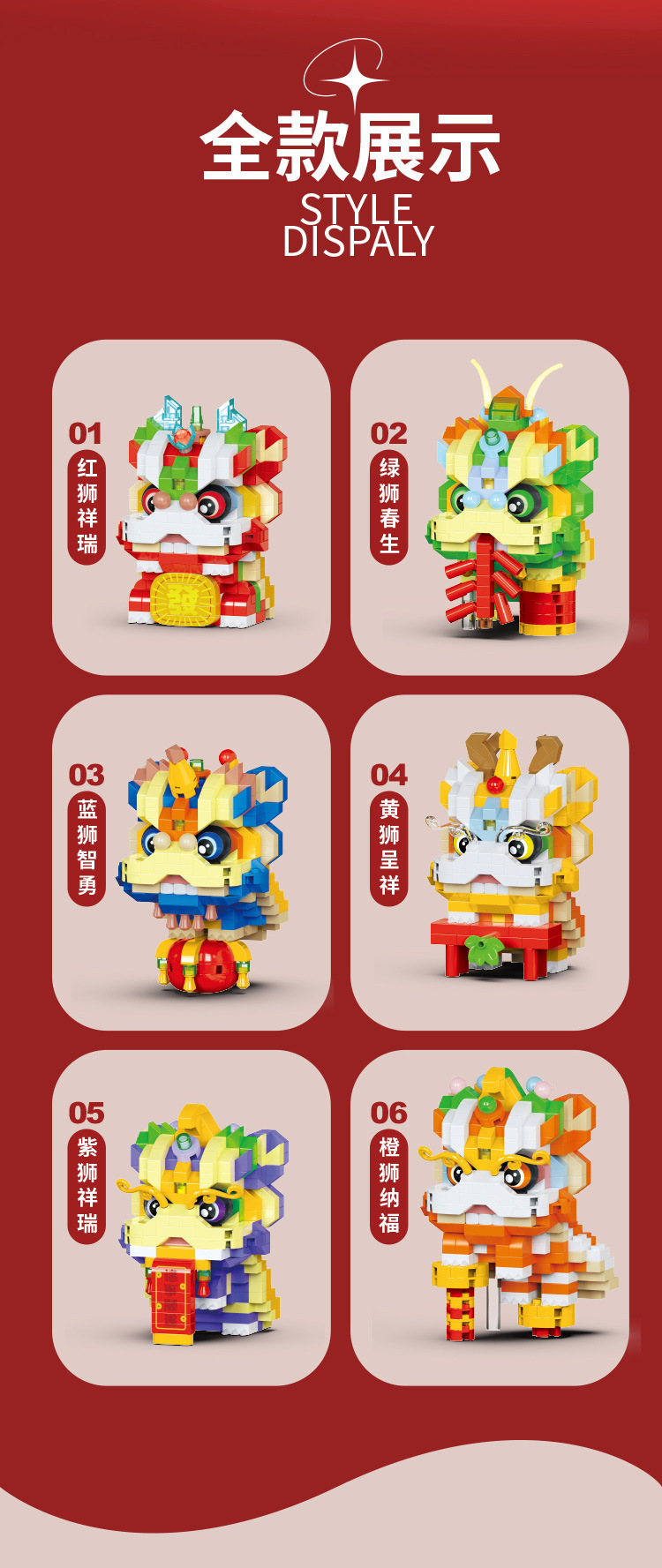 春节舞狮醒狮国潮拼装积木儿童玩具蛇年吉祥物新年礼物