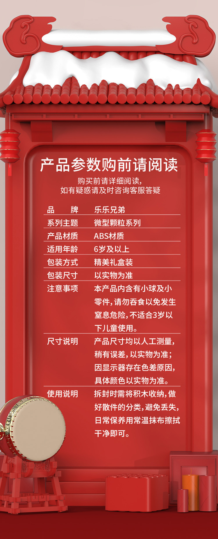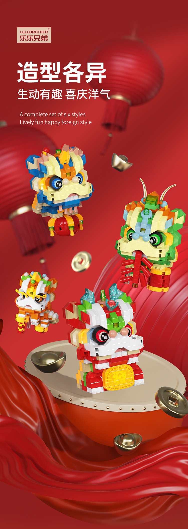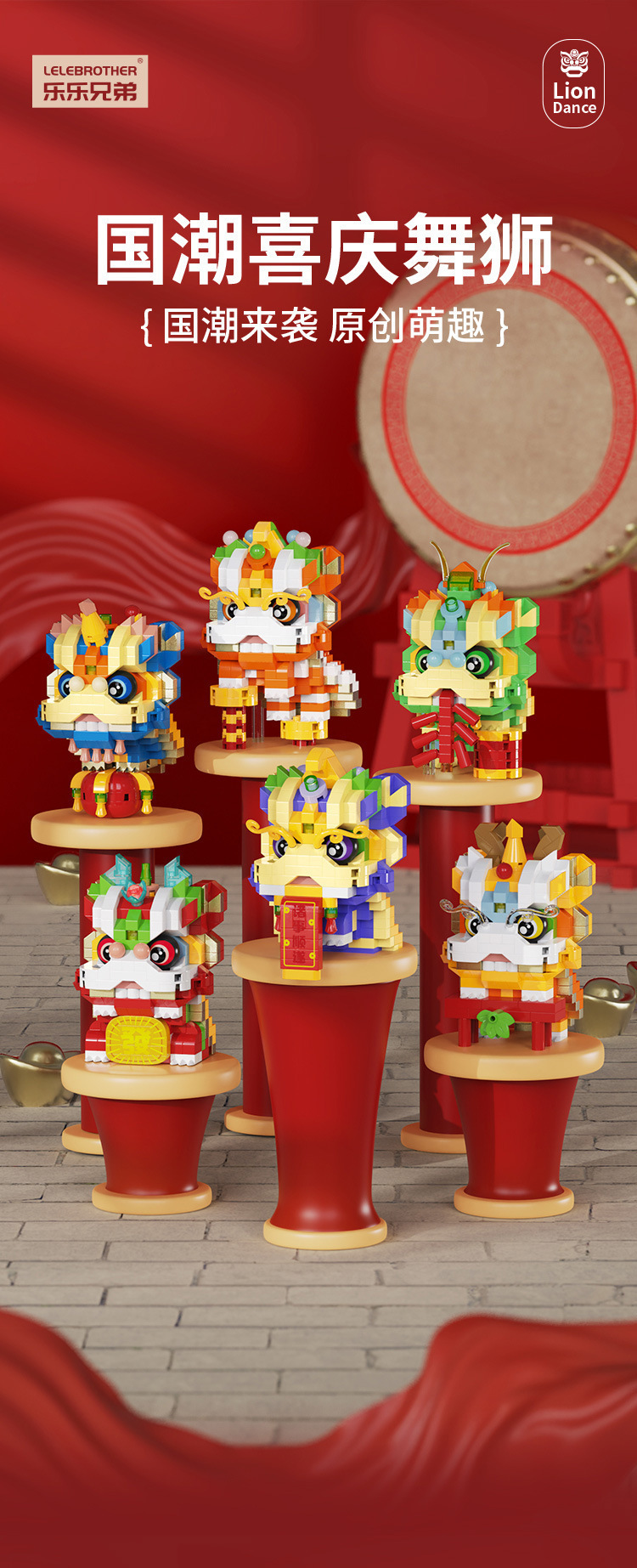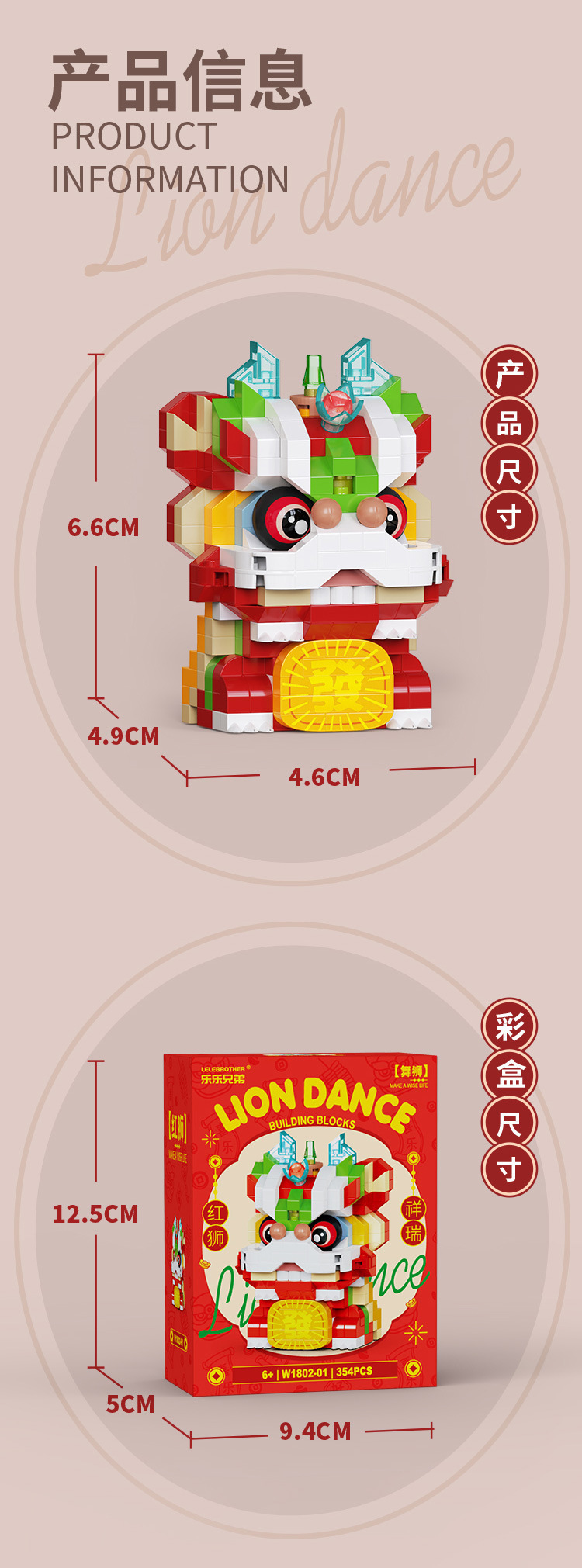 春节舞狮醒狮国潮拼装积木儿童玩具蛇年吉祥物新年礼物