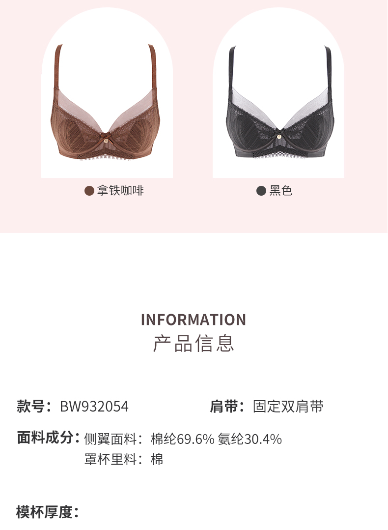 贝佳人甜美亲肤蕾丝文胸3/4杯超薄杯透气舒适精致内衣女BW932054