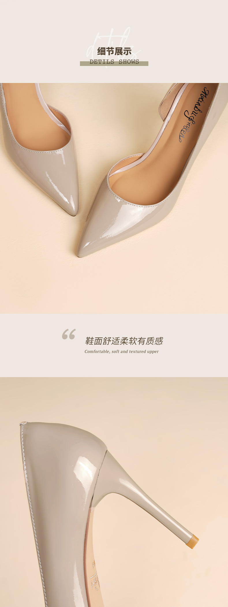 【鞋面材质】 头层牛漆皮