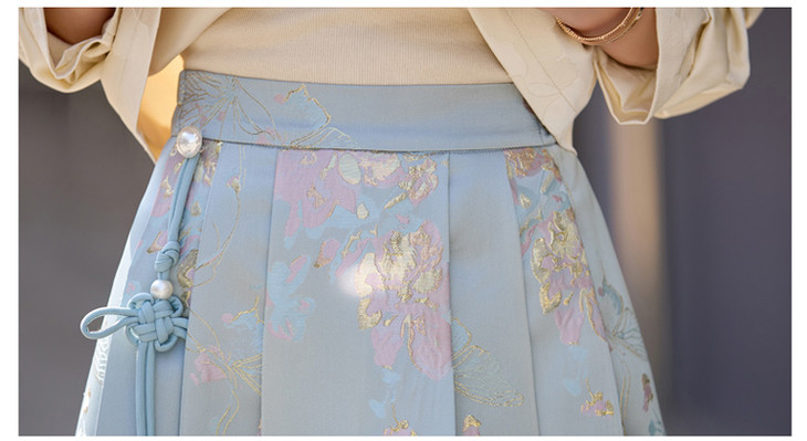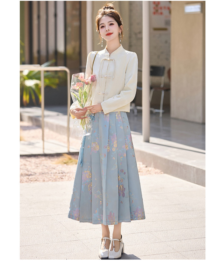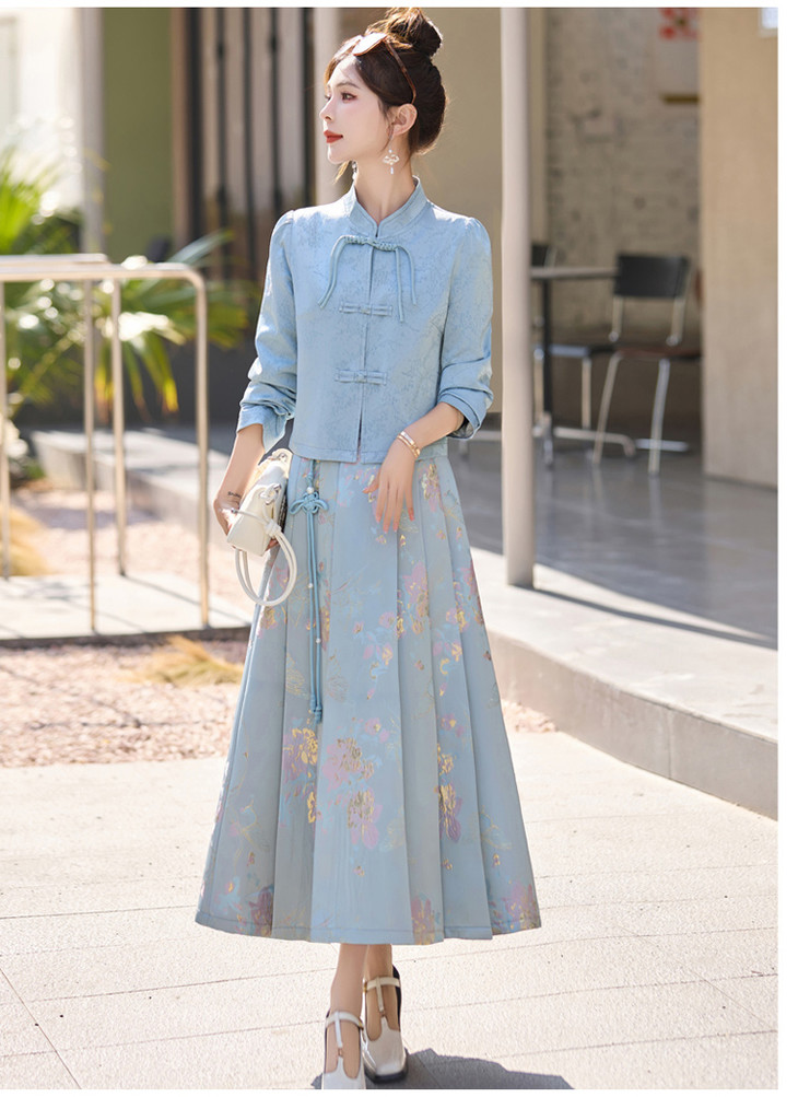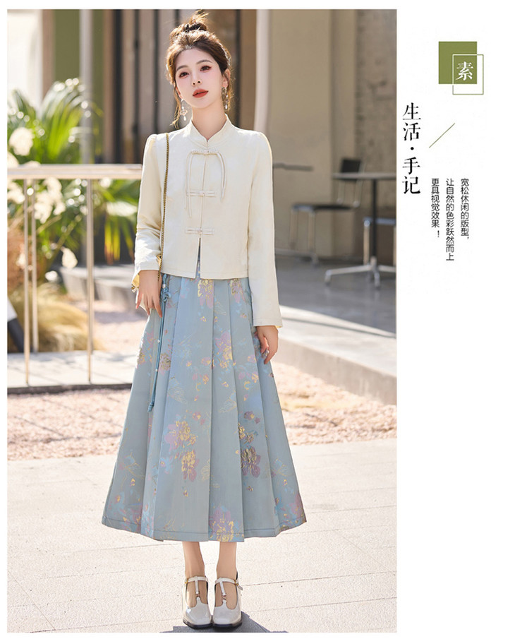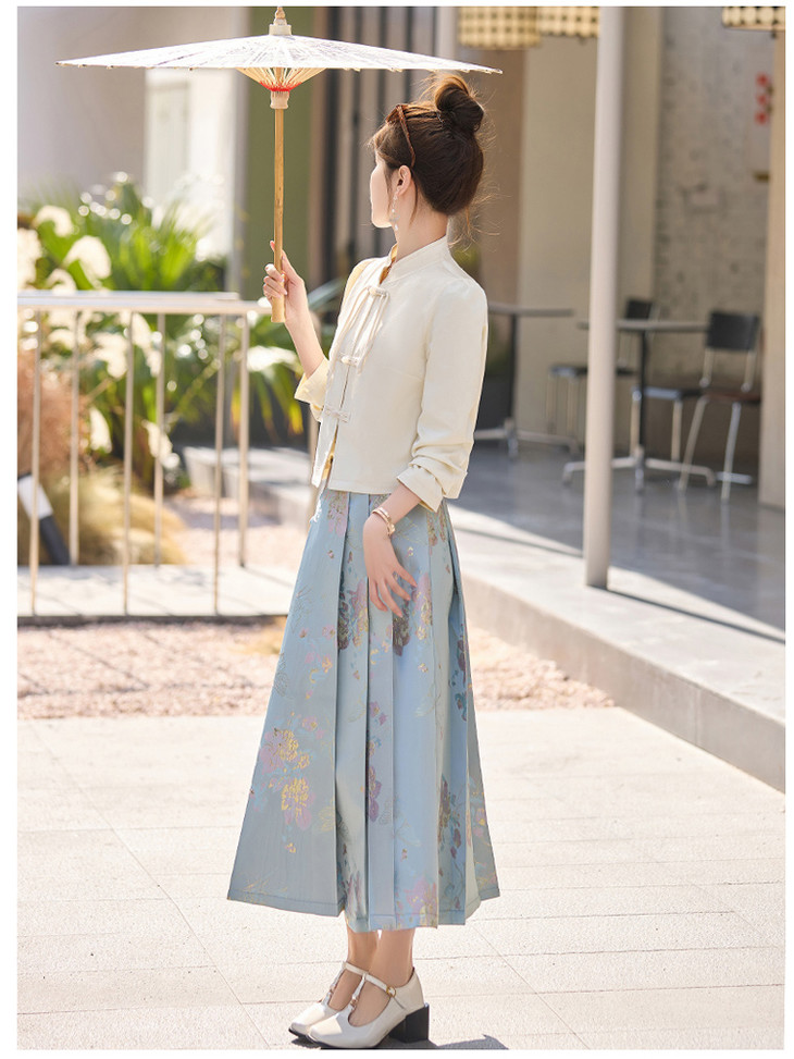 2024春新款时尚中式盘扣短外套印花压皱半身裙两件套套装XPHG98【预售7天】