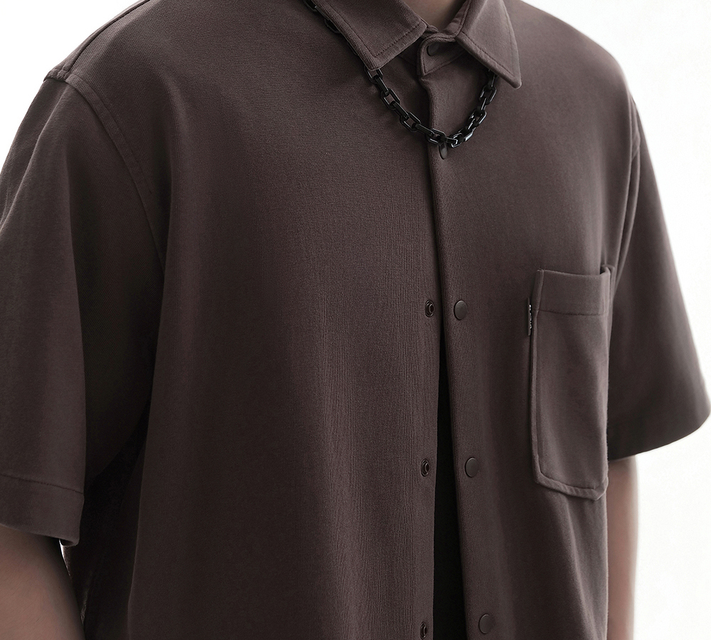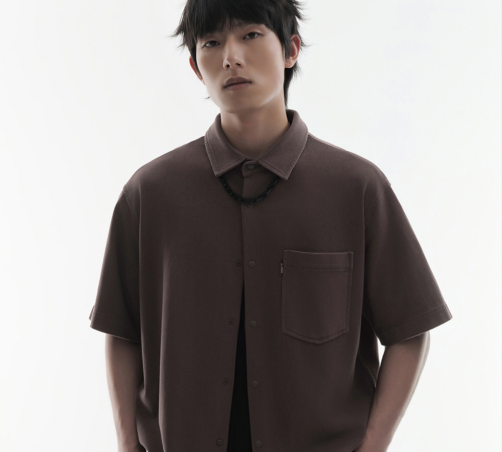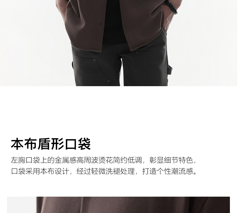 HIM漢崇 时尚简约织唛工装口袋舒适宽松休闲短袖衬衫男 2026春季