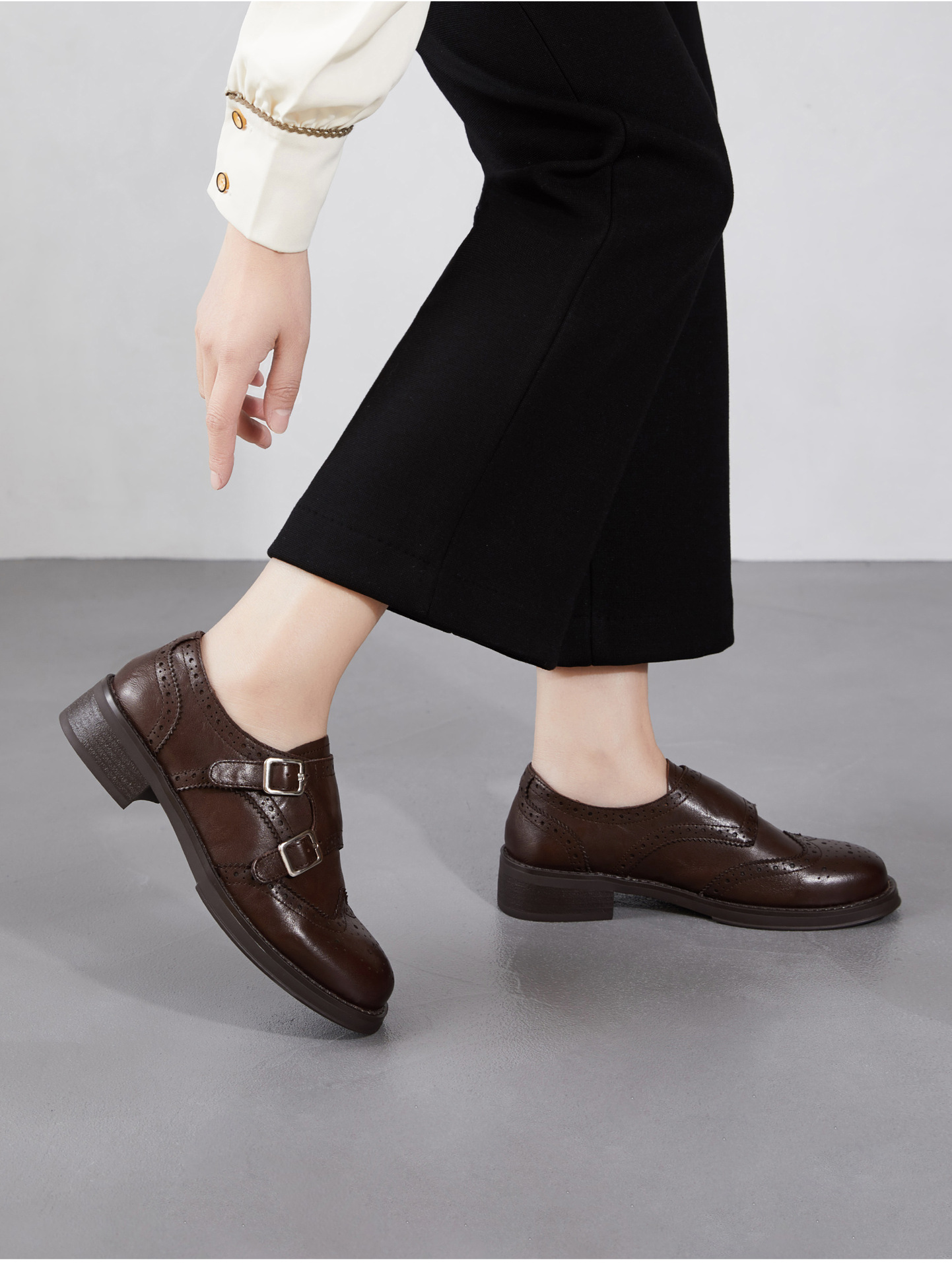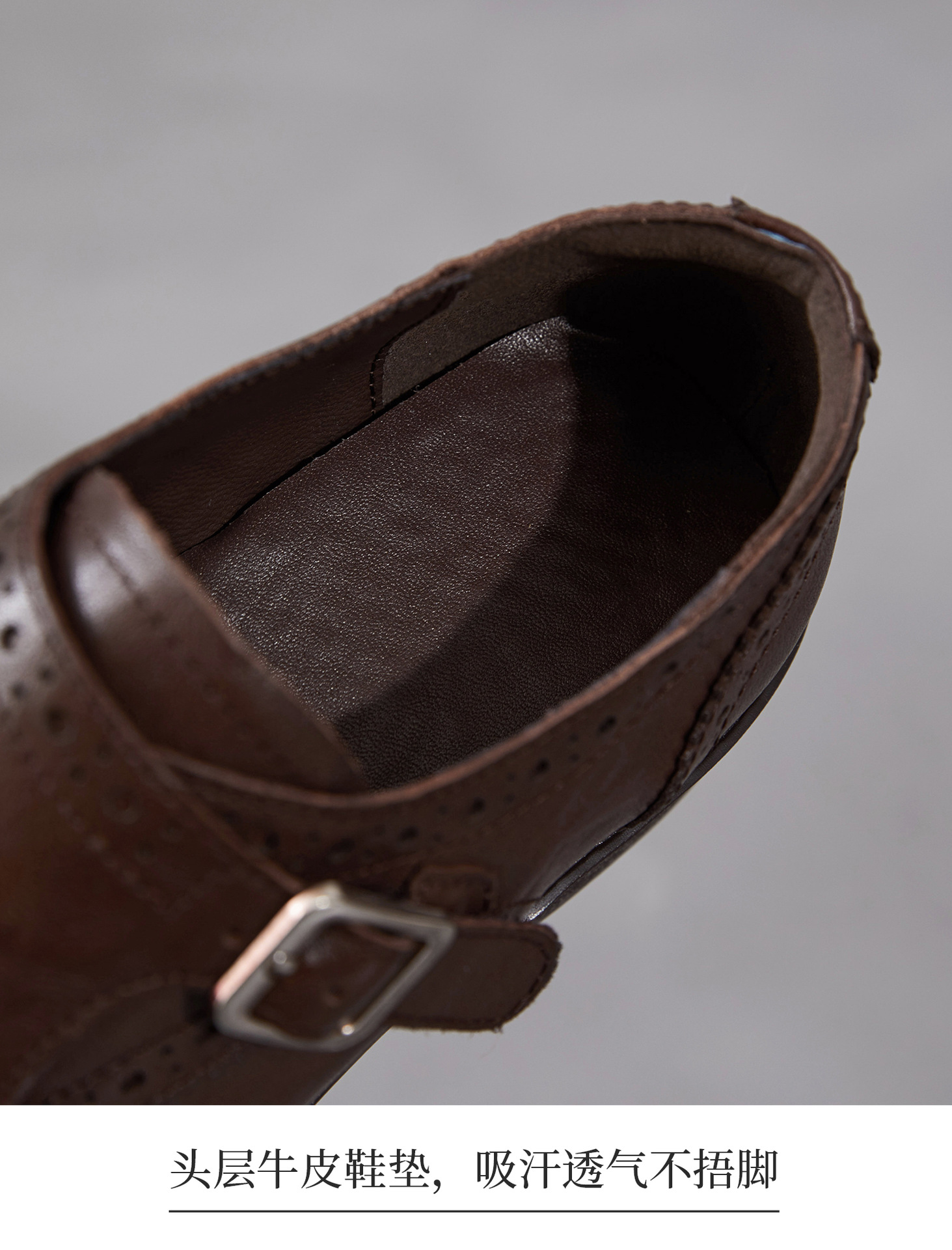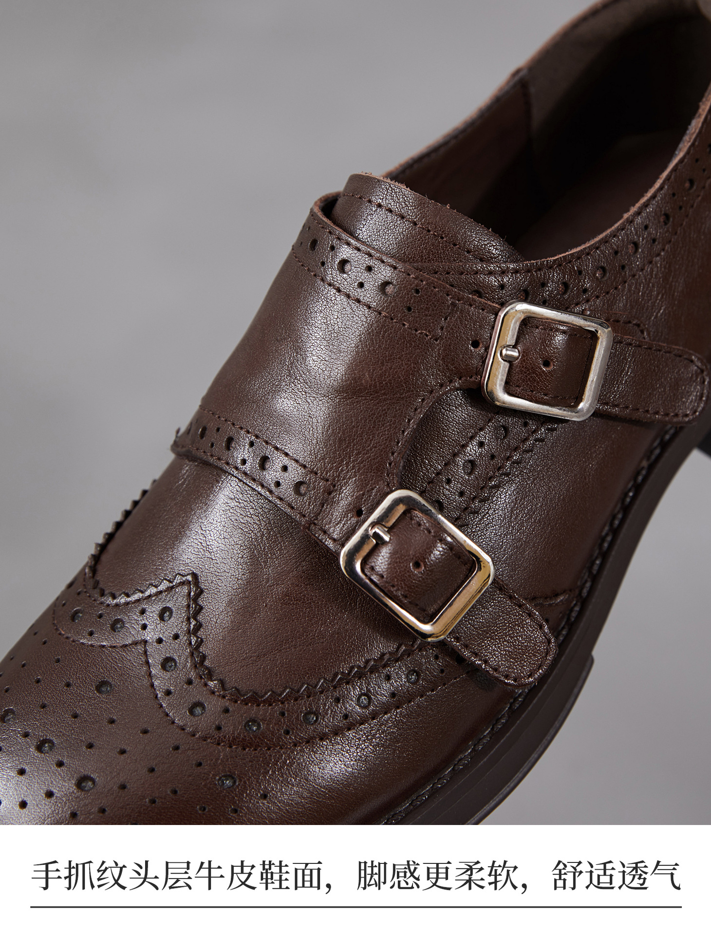 雀说 手抓牛皮手工英伦风乐福鞋女ZM269009