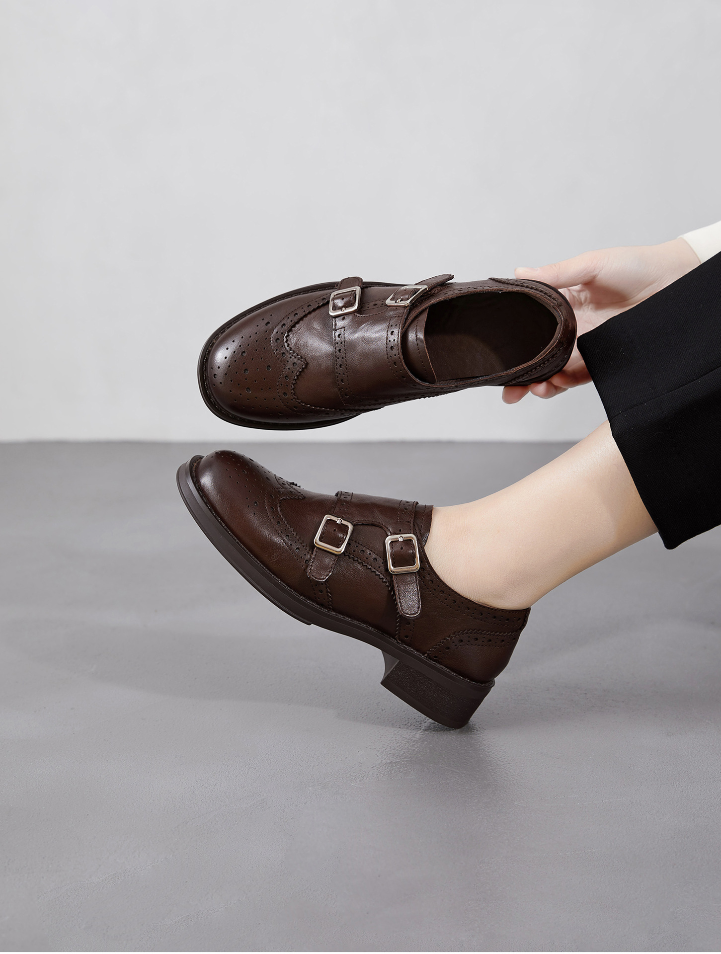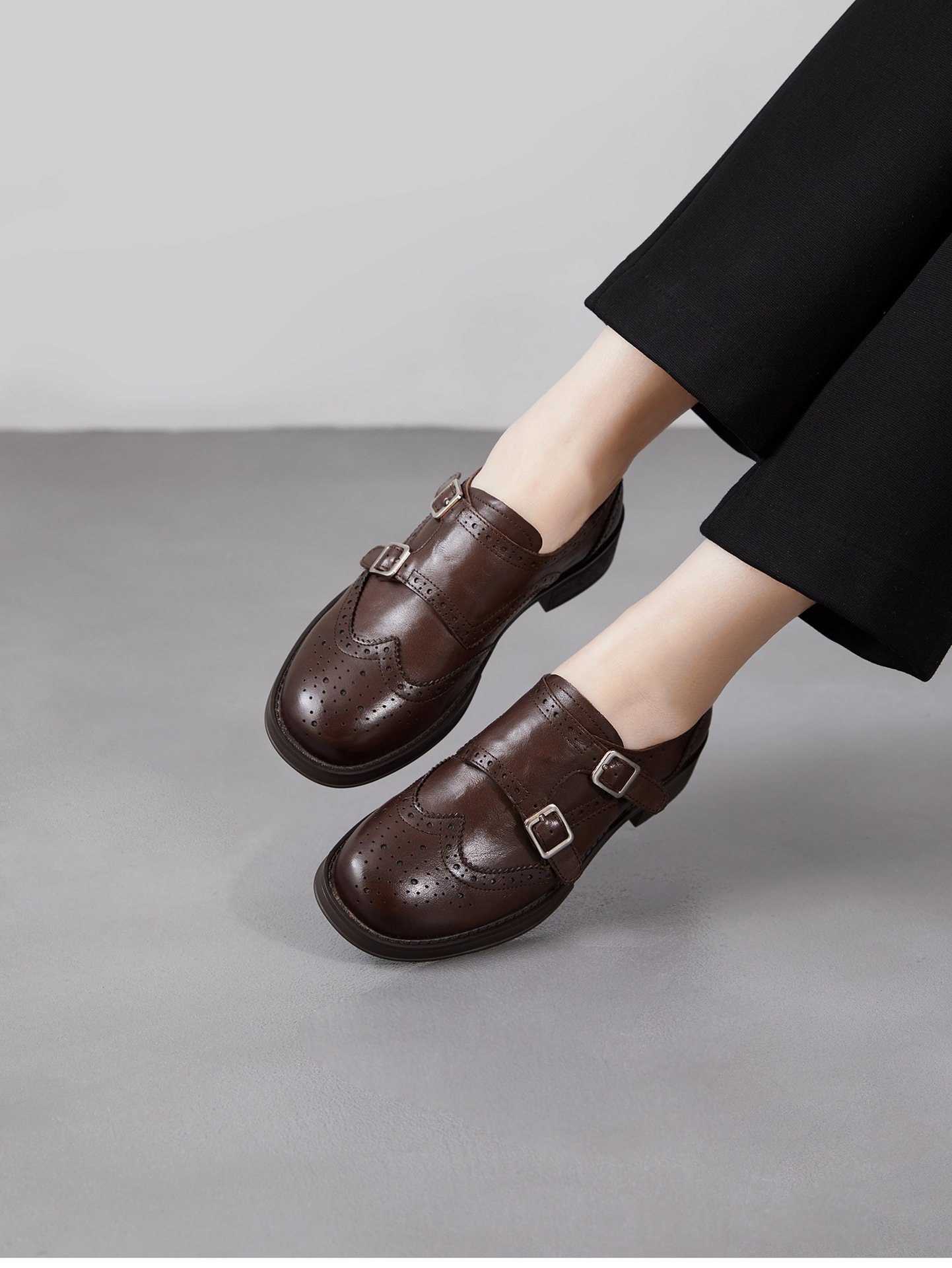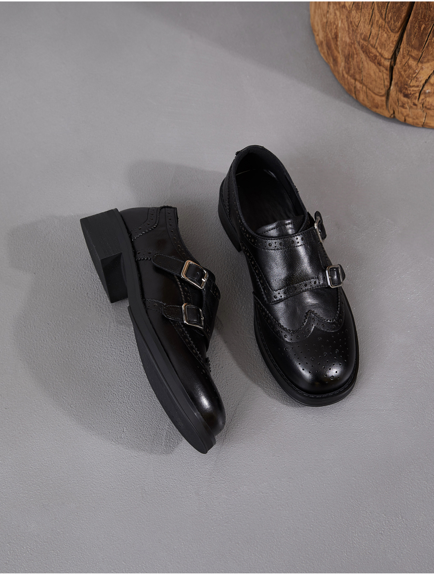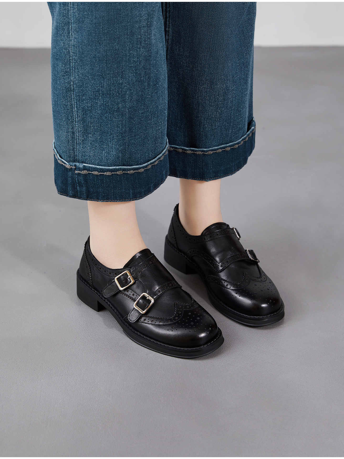 雀说 手抓牛皮手工英伦风乐福鞋女ZM269009
