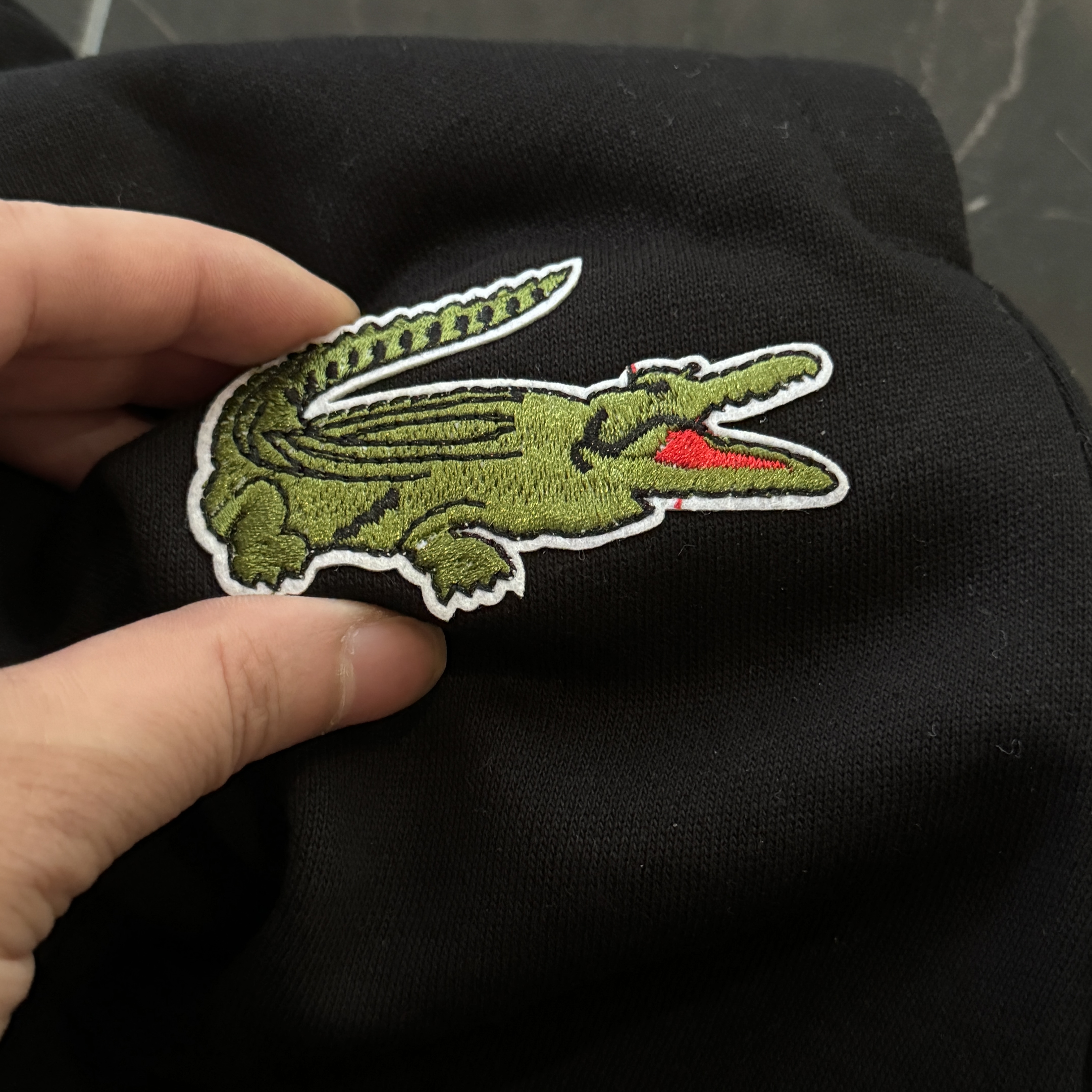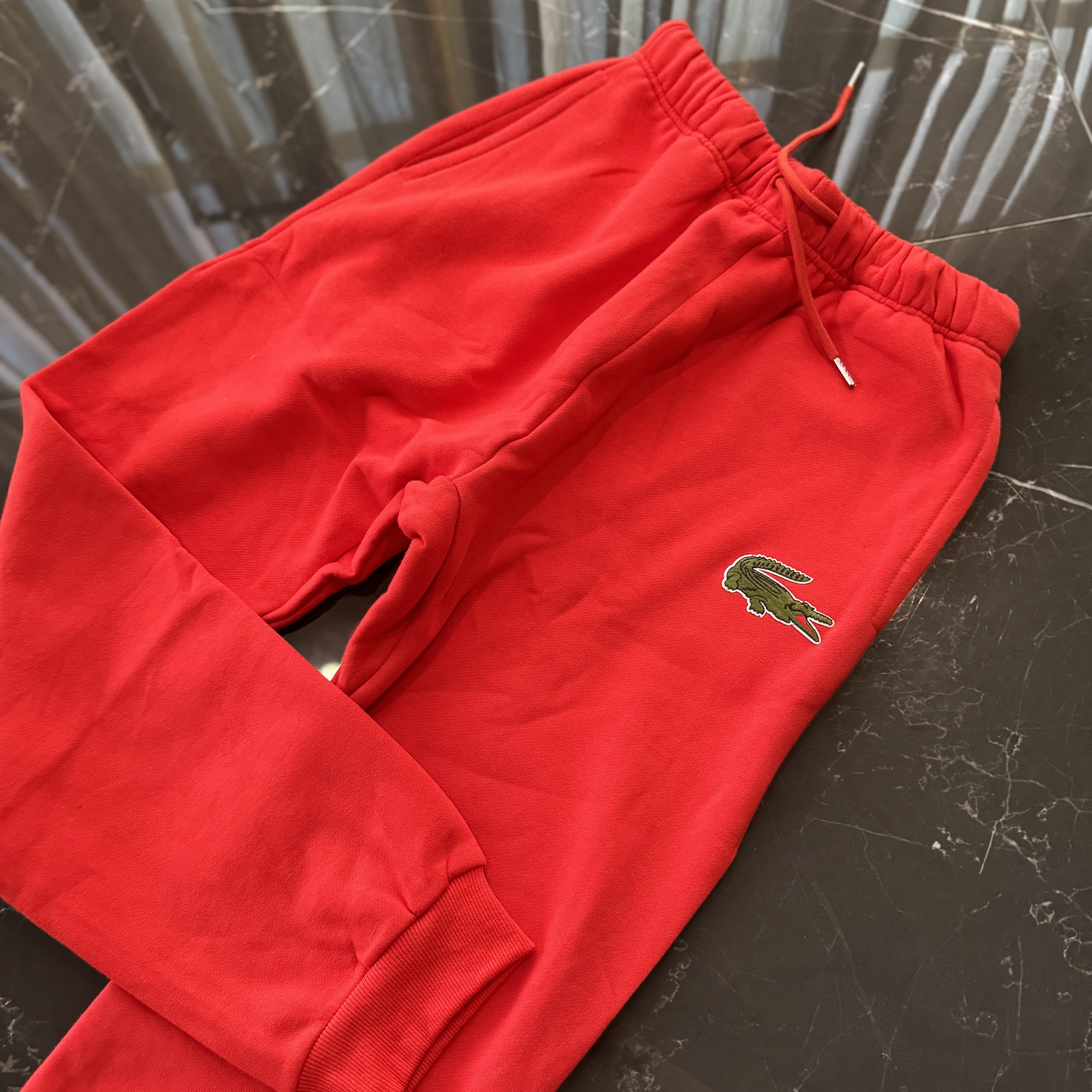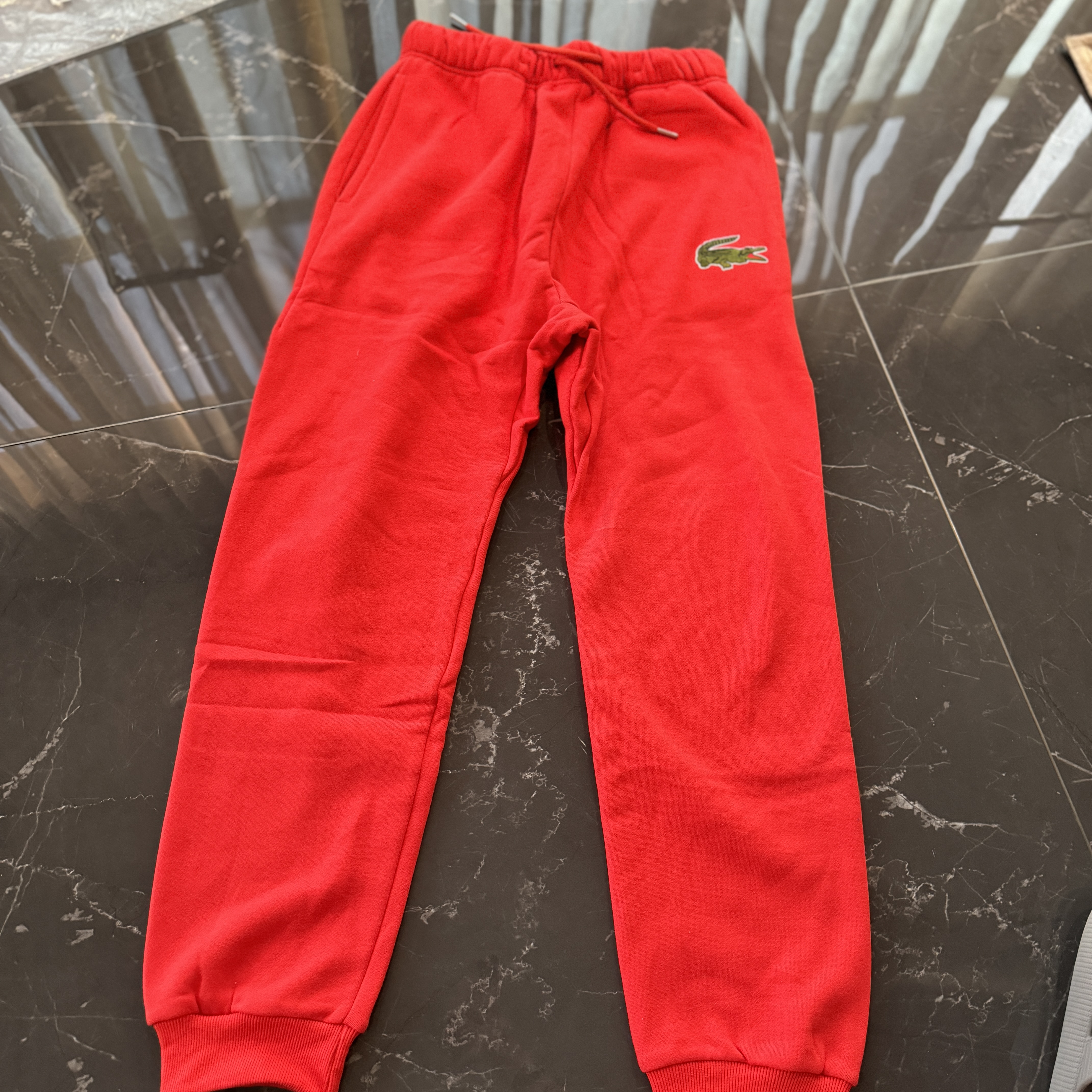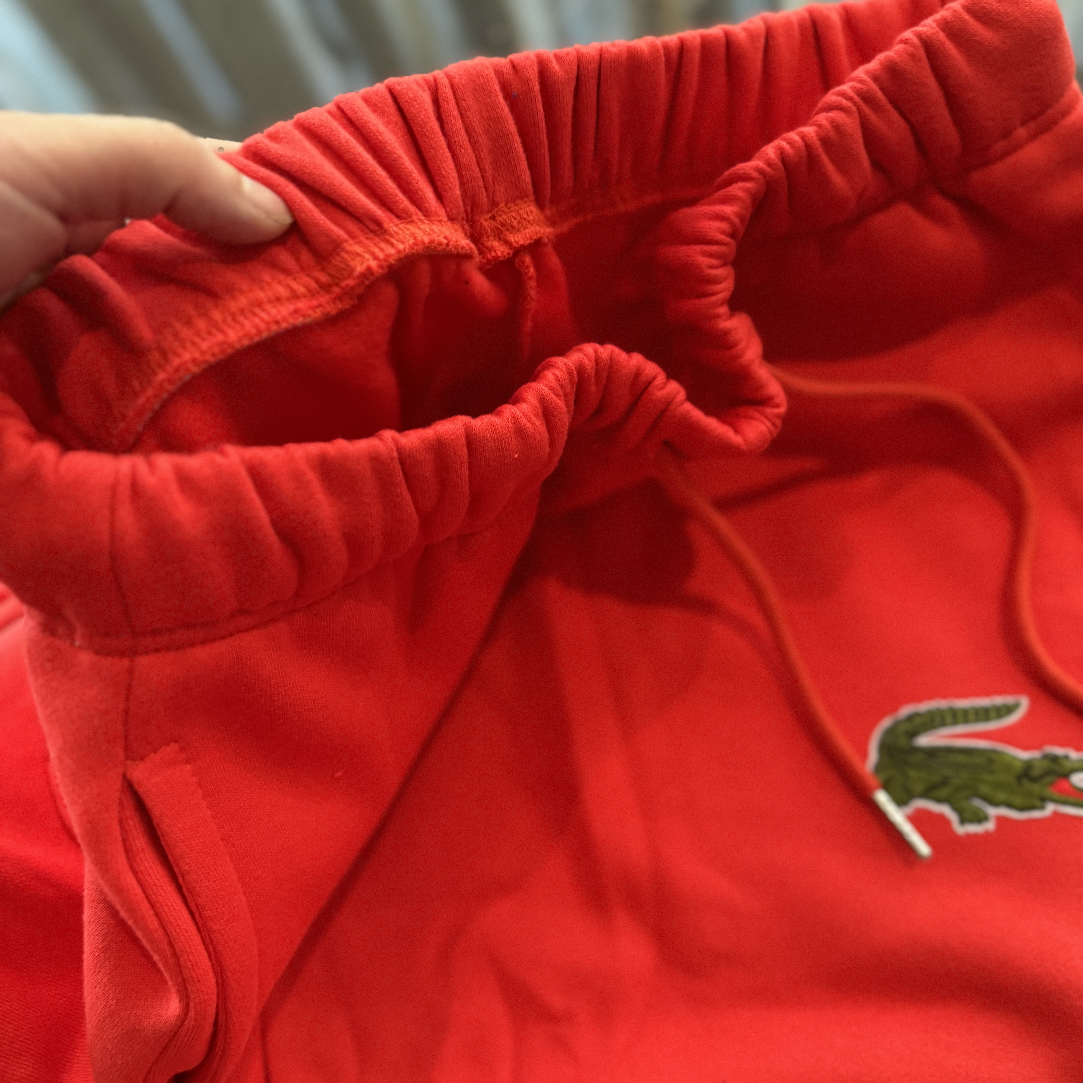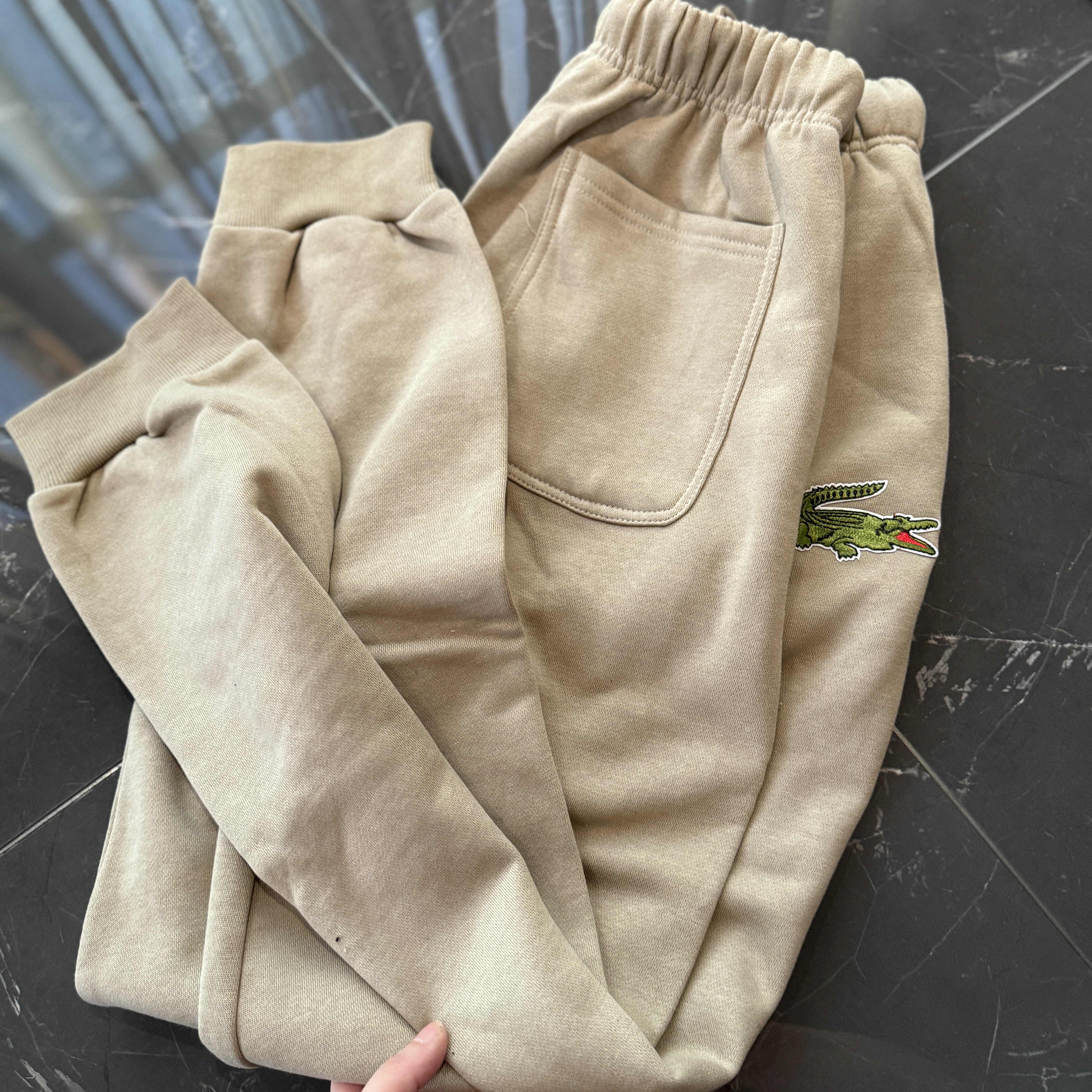5色:黑色 浅灰色 卡其 蓝色。红色 上身百搭轻松!鳄鱼刺绣好看吸引眼球。简约款式 无复杂大logo。不挑身材 不挑人 随随便便¥1000官价。 很超值。不起球 !摸起来跟婴儿肌肤一样!一点儿都不夸张!比普通卫裤强的不止一点儿半点儿!推荐货。