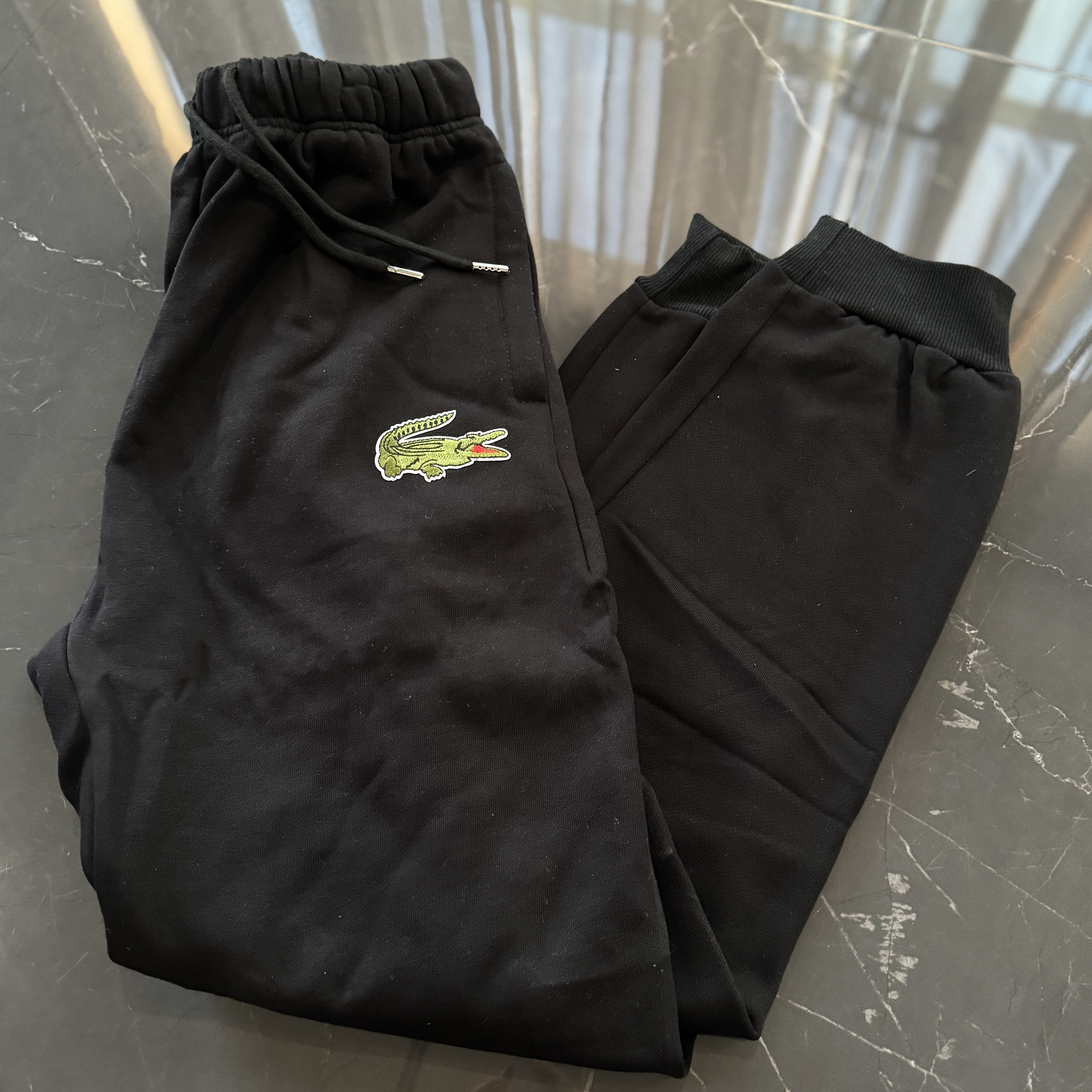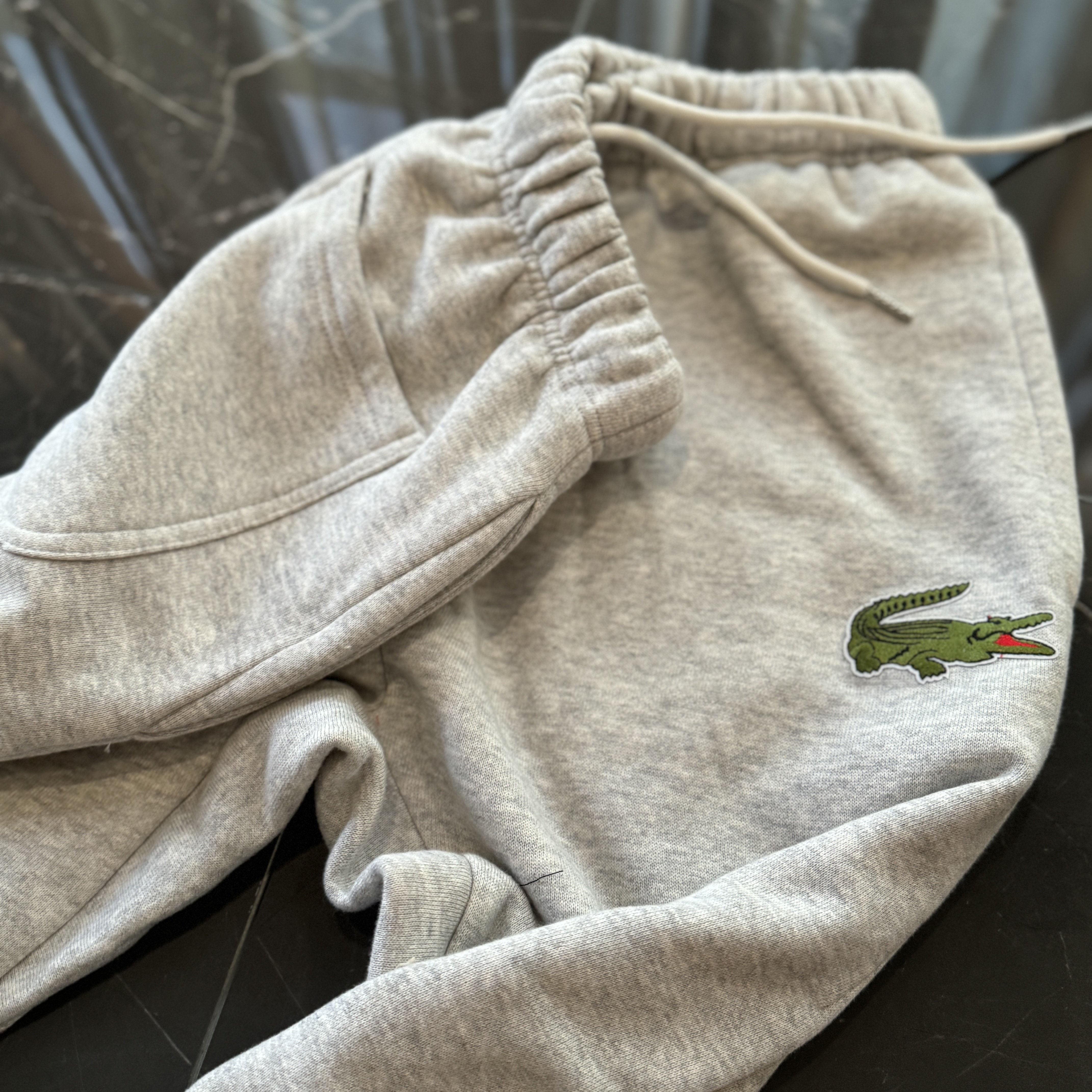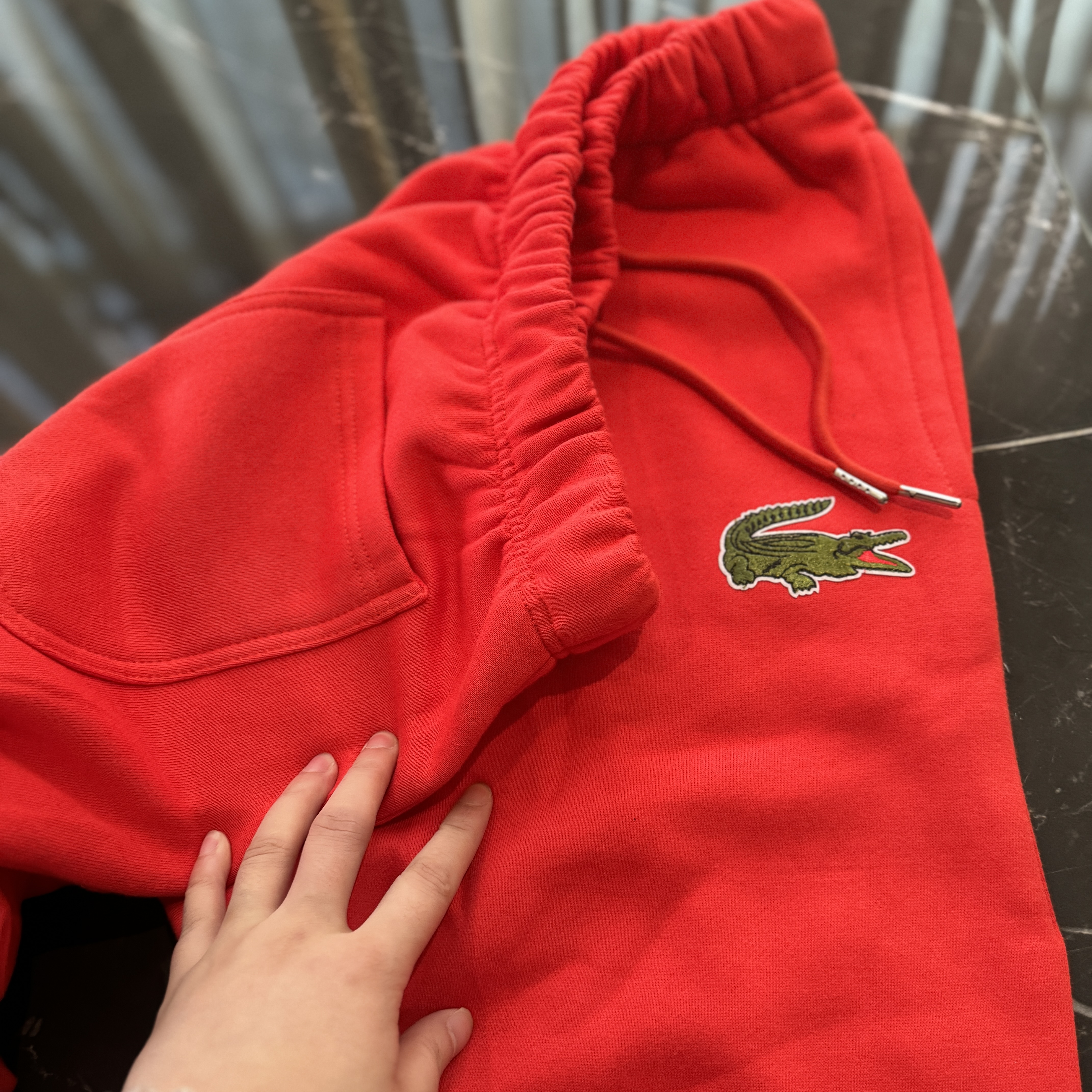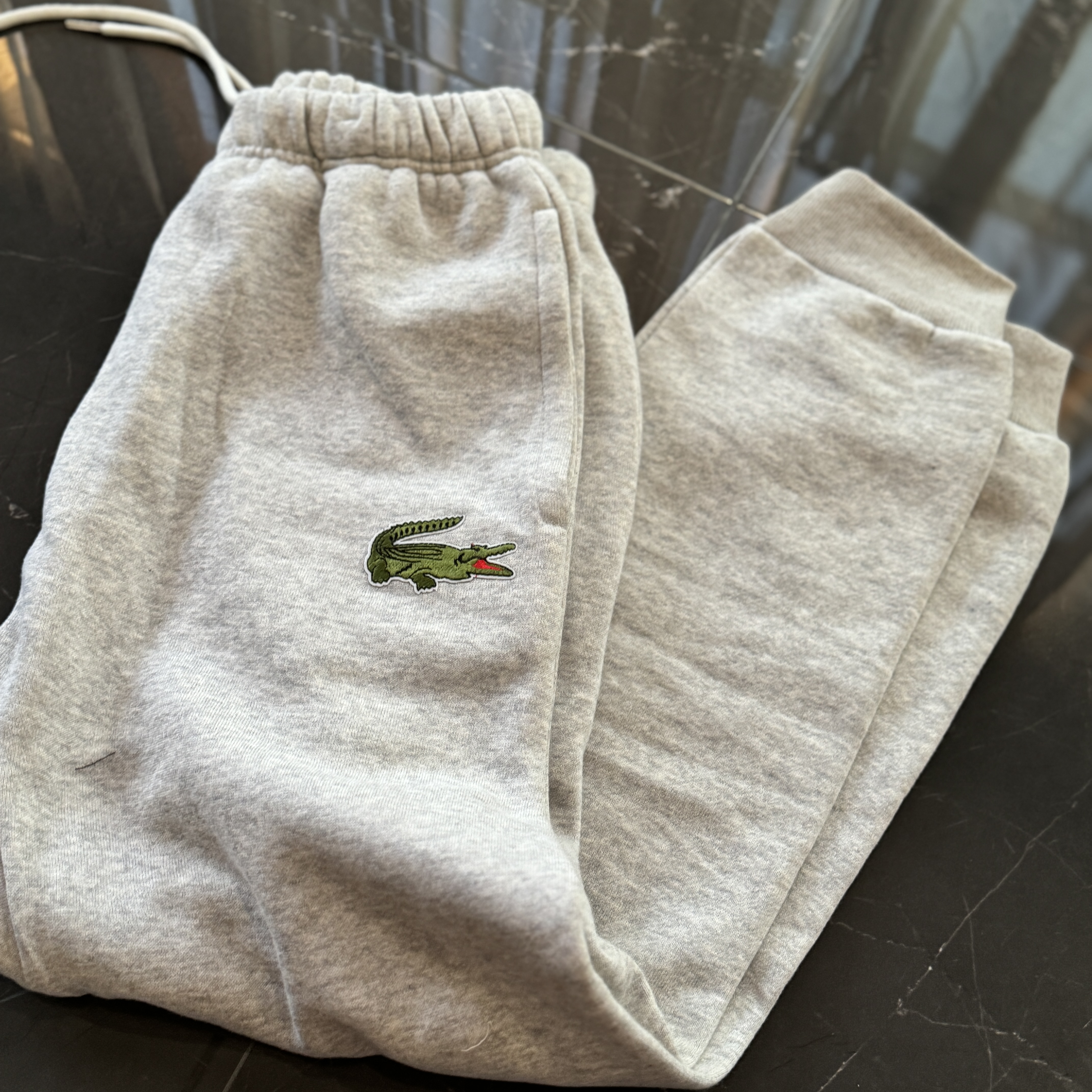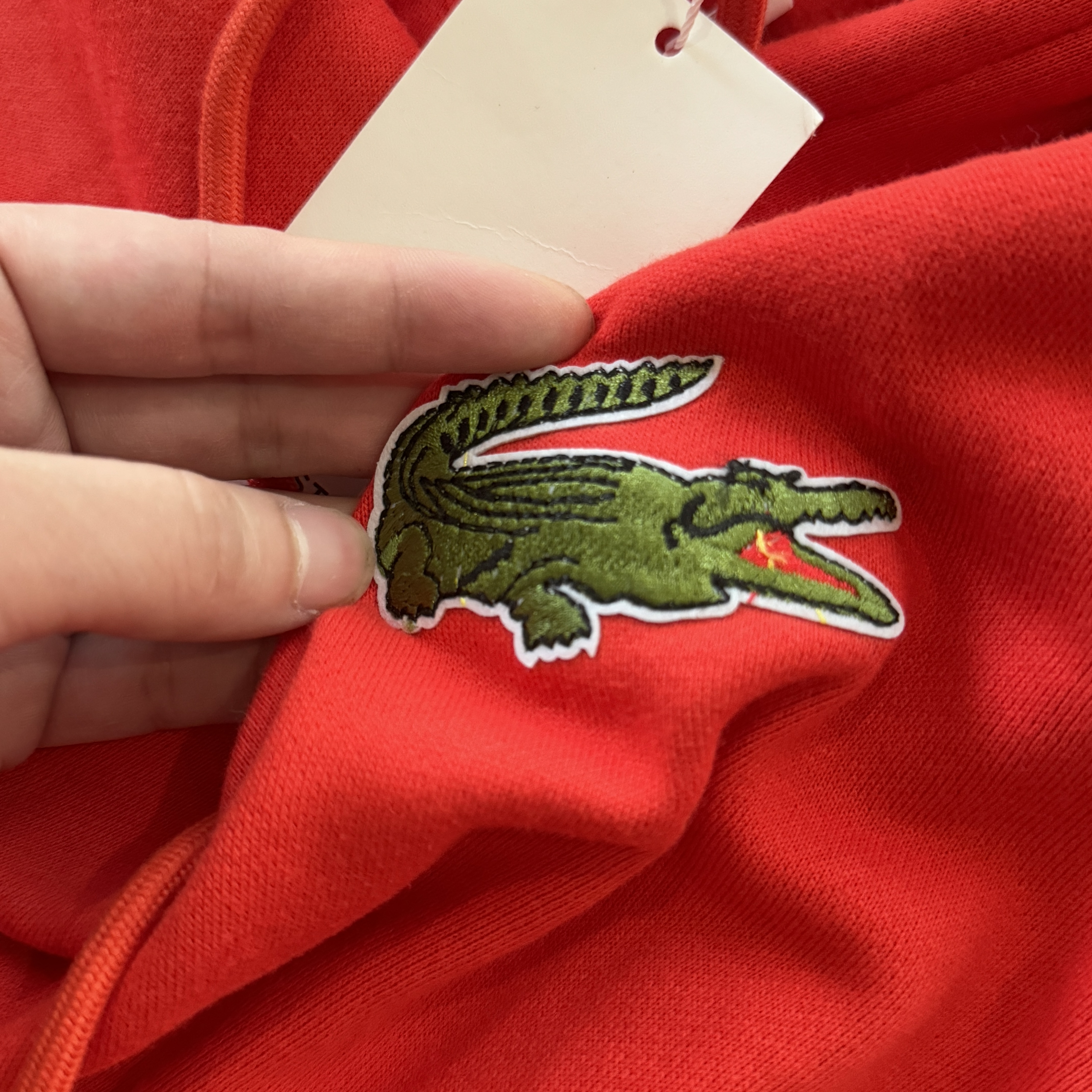 5色:黑色 浅灰色 卡其 蓝色。红色 上身百搭轻松!鳄鱼刺绣好看吸引眼球。简约款式 无复杂大logo。不挑身材 不挑人 随随便便¥1000官价。 很超值。不起球 !摸起来跟婴儿肌肤一样!一点儿都不夸张!比普通卫裤强的不止一点儿半点儿!推荐货。