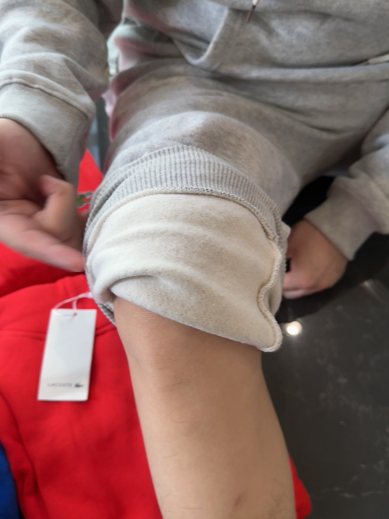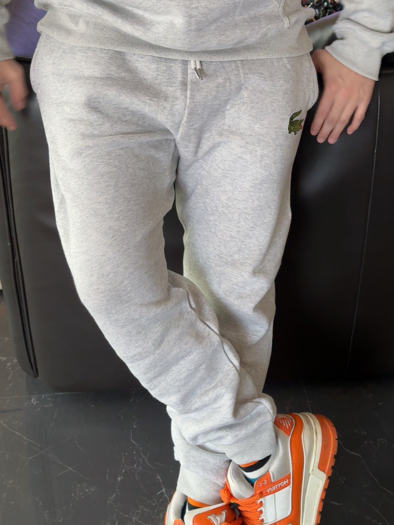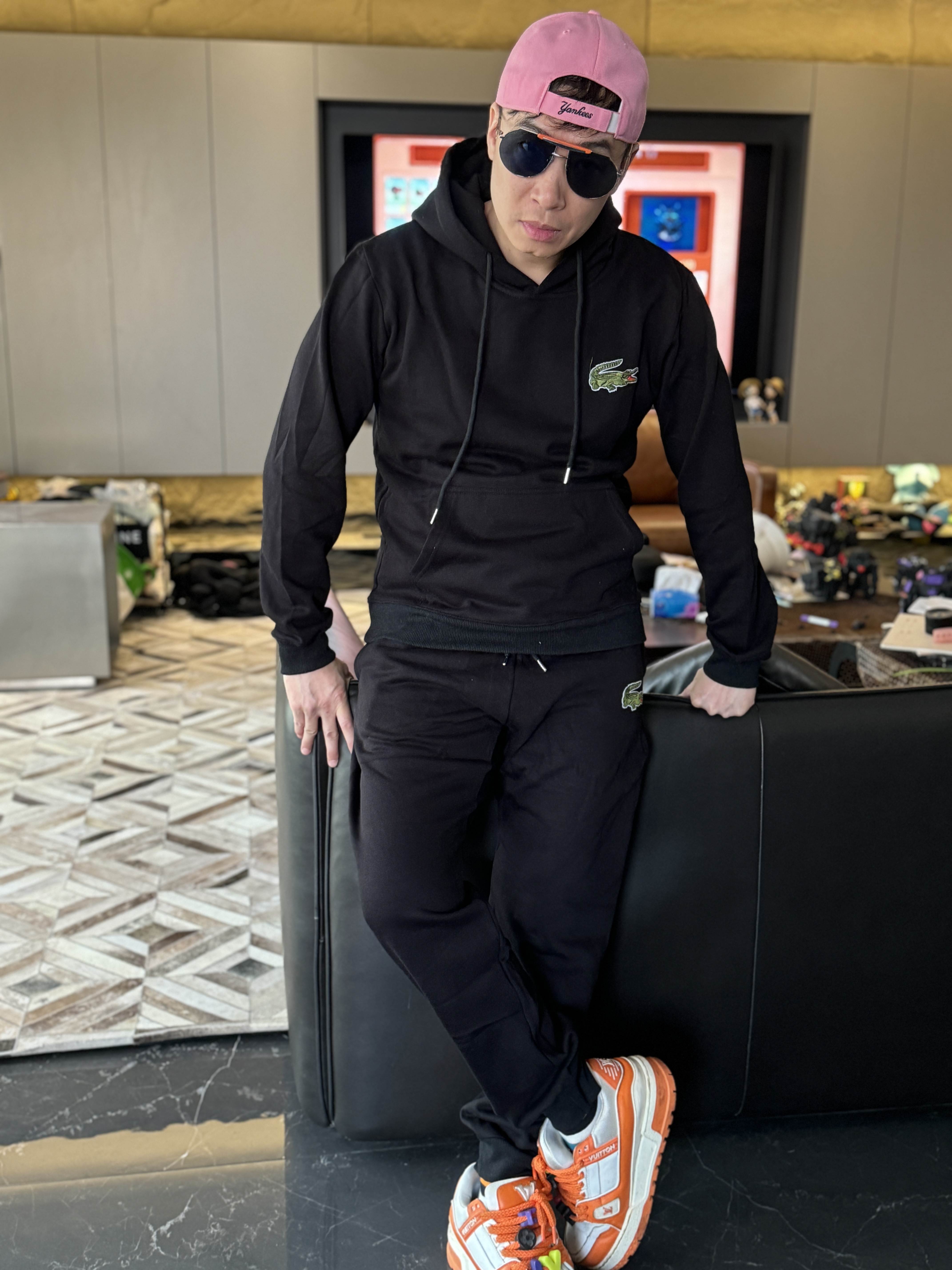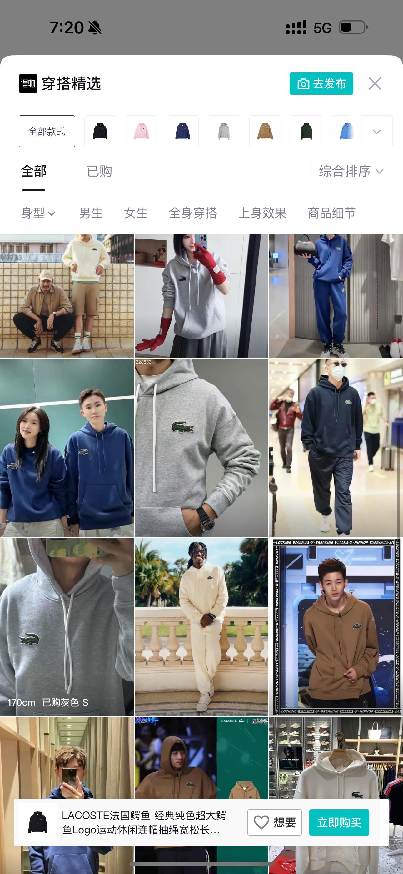 5色:黑色 浅灰色 卡其 蓝色。红色 上身百搭轻松!鳄鱼刺绣好看吸引眼球。简约款式 无复杂大logo。不挑身材 不挑人 随随便便¥1000官价。 很超值。不起球 !摸起来跟婴儿肌肤一样!一点儿都不夸张!比普通卫裤强的不止一点儿半点儿!推荐货。