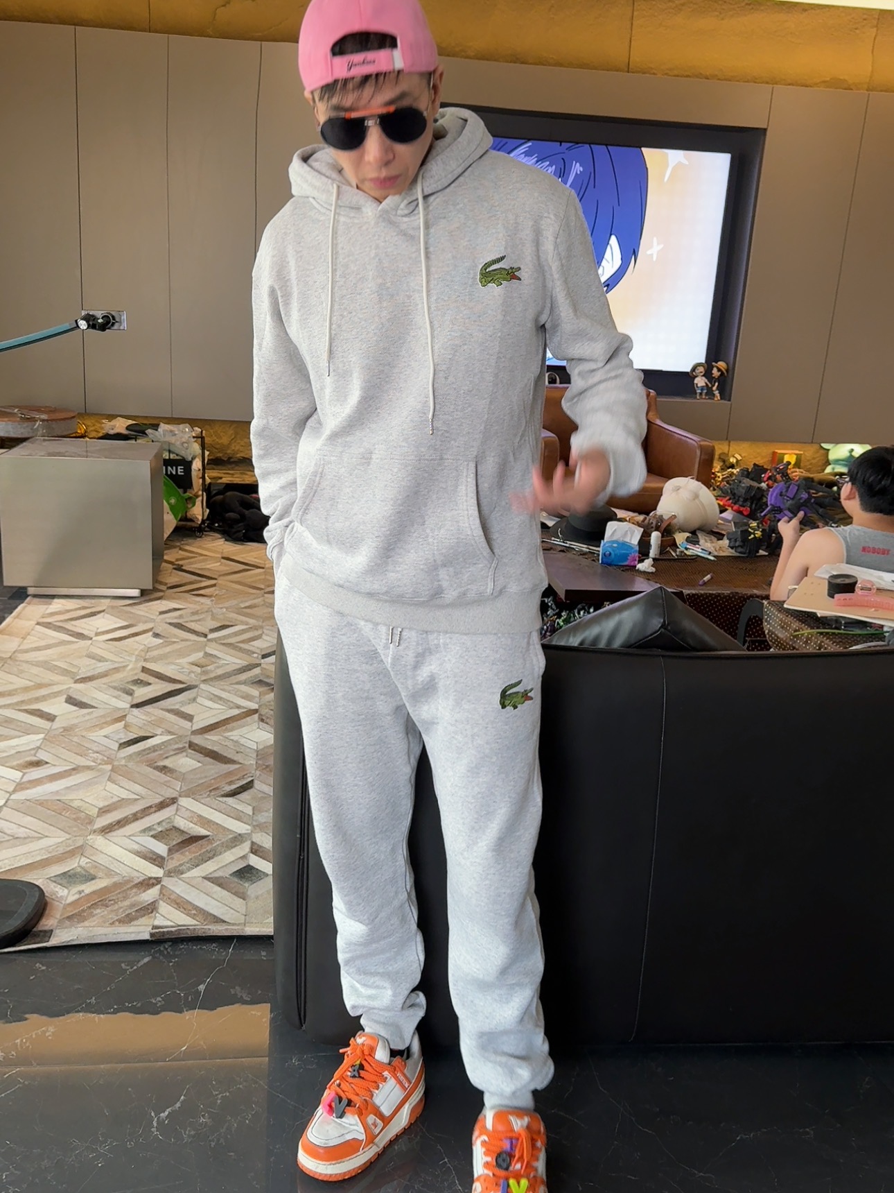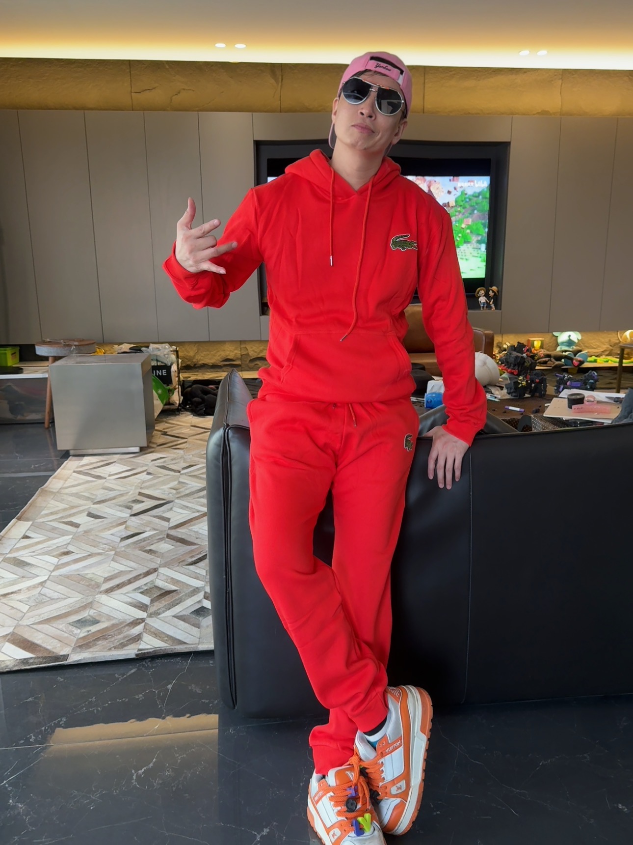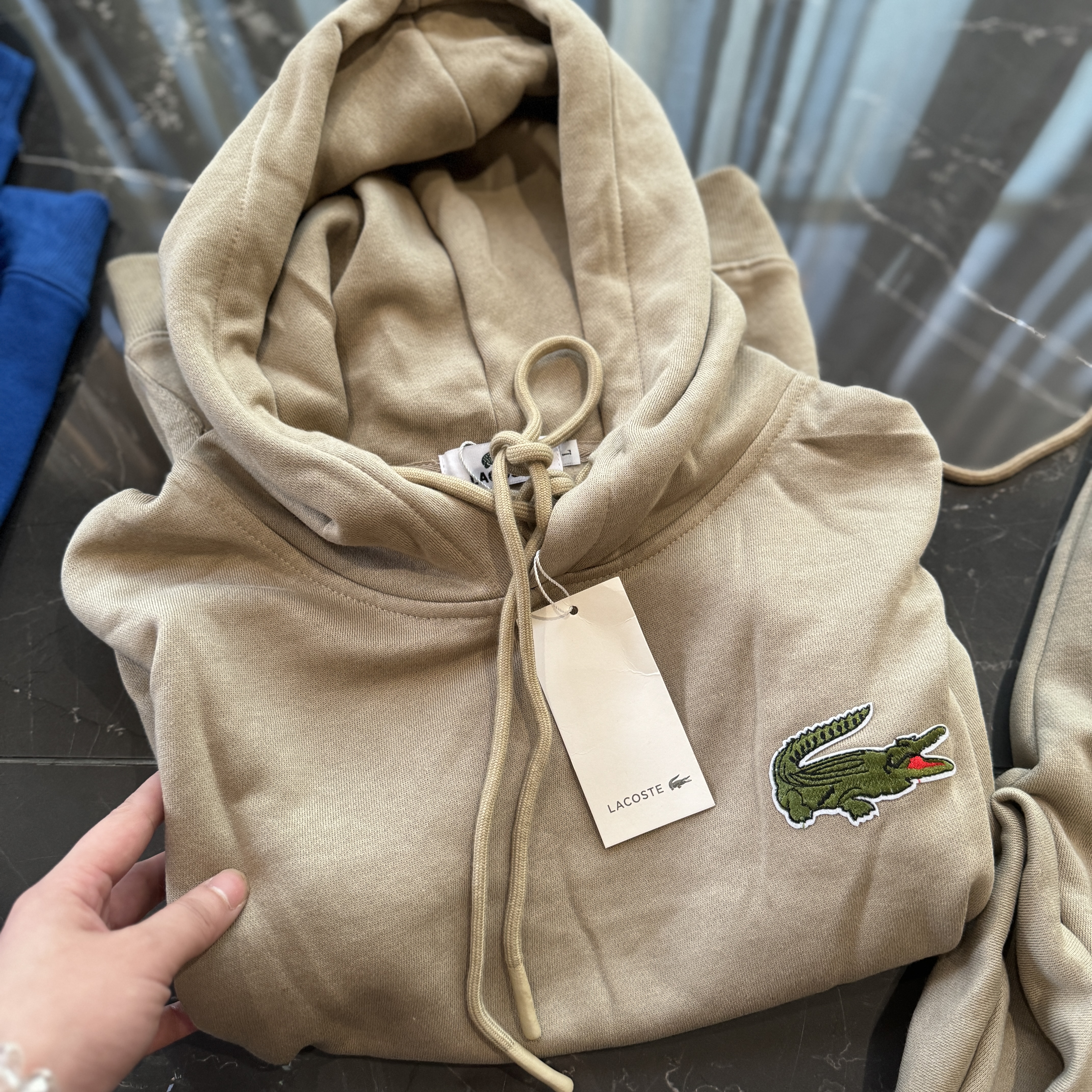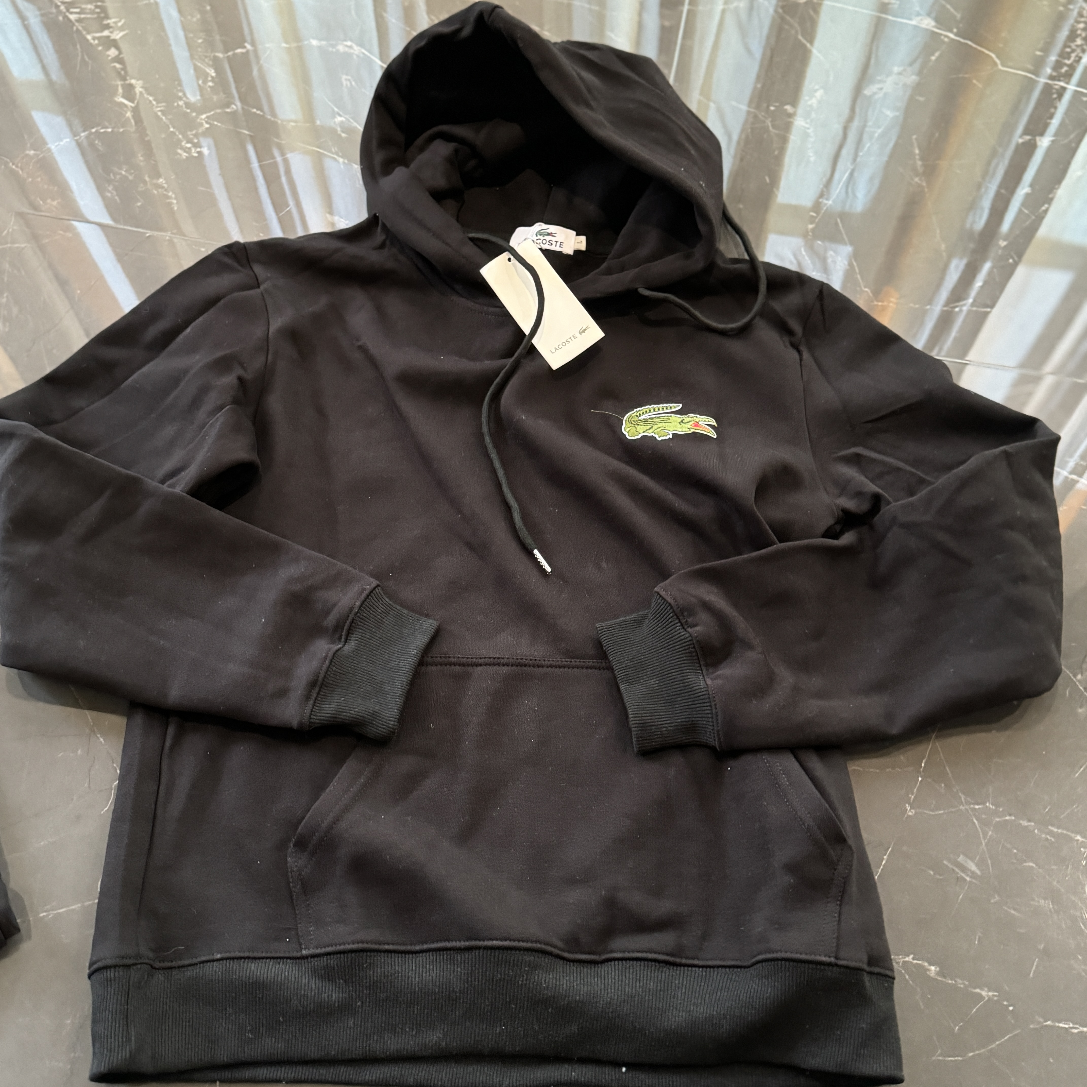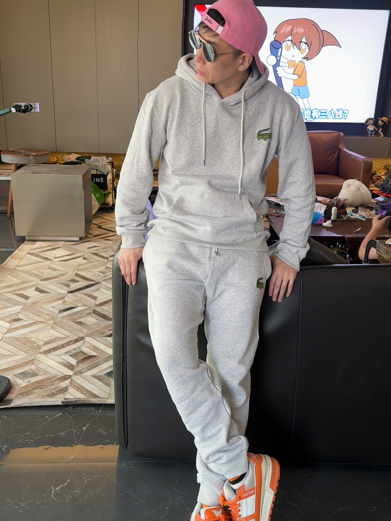 5色:黑色 浅灰色 卡其 蓝色。红色 上身百搭轻松!鳄鱼刺绣好看吸引眼球。简约款式 无复杂大logo。不挑身材 不挑人 随随便便¥1000官价。 很超值。不起球 !摸起来跟婴儿肌肤一样!一点儿都不夸张!比普通卫裤强的不止一点儿半点儿!推荐货。