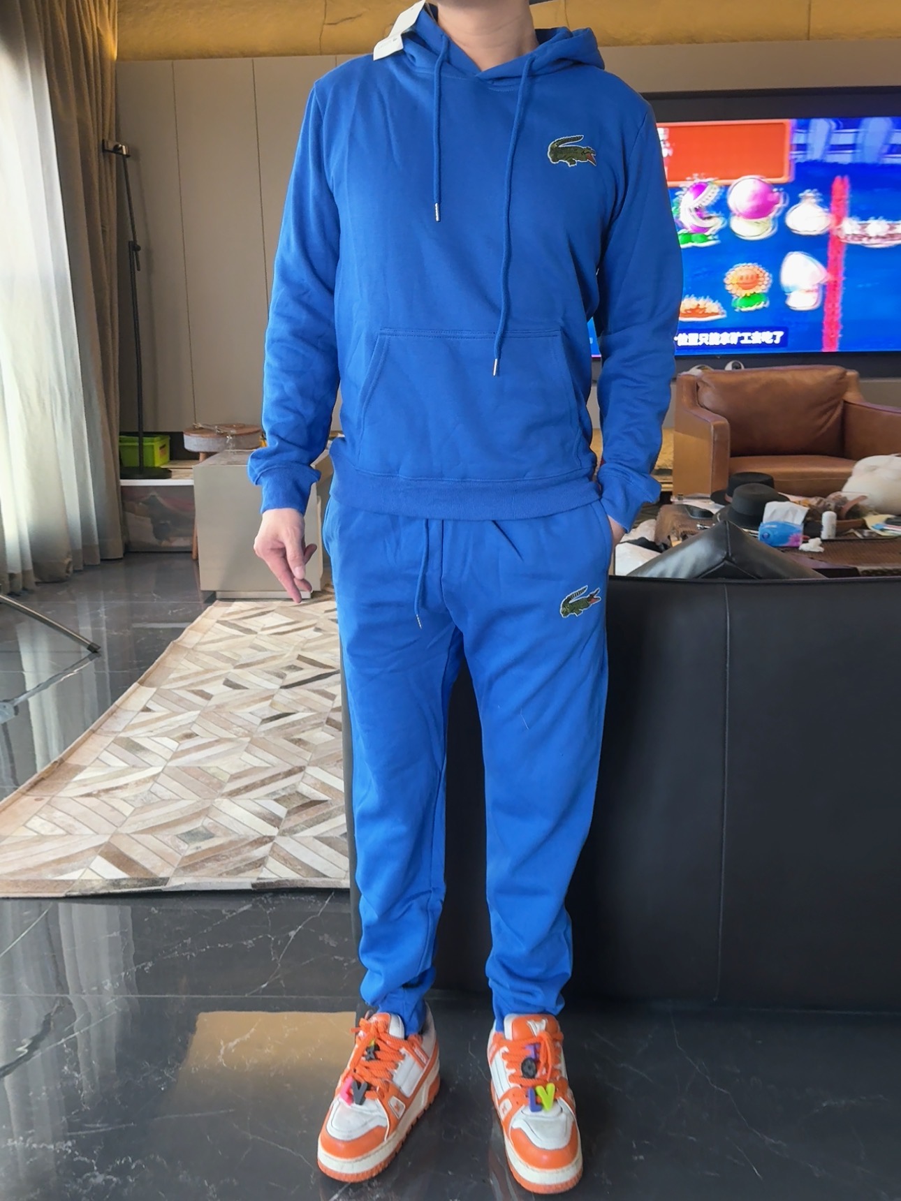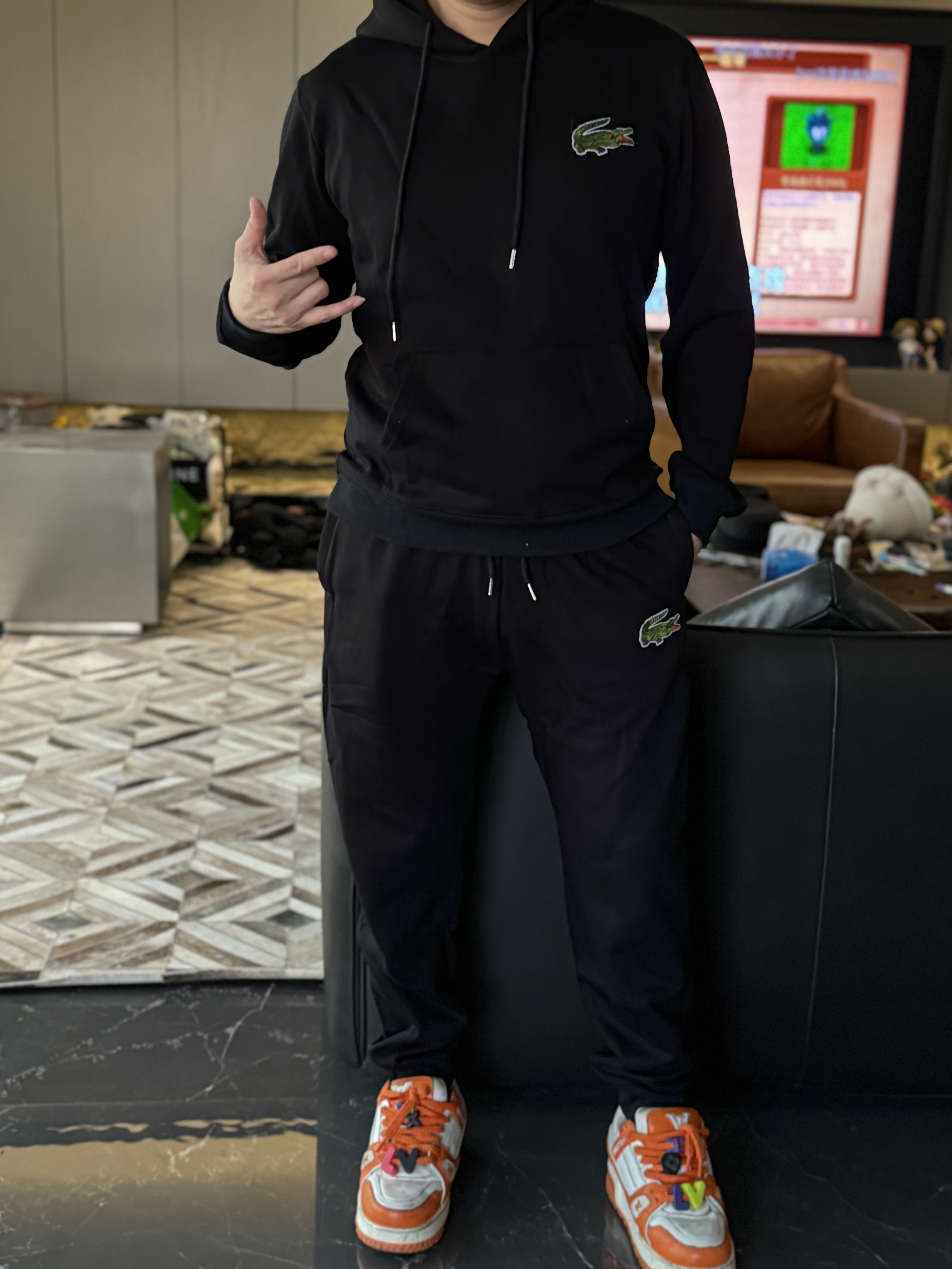 迪丽热巴同款 原单法鳄男士秋冬加绒休闲长裤和卫衣纯棉卫裤。亲肤面料 软糯软糯的面料 跟豆腐块一样的感觉 细嫩细嫩的纹理纹路都非常清晰!