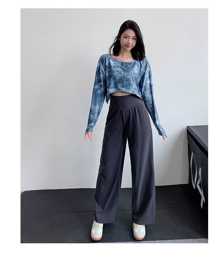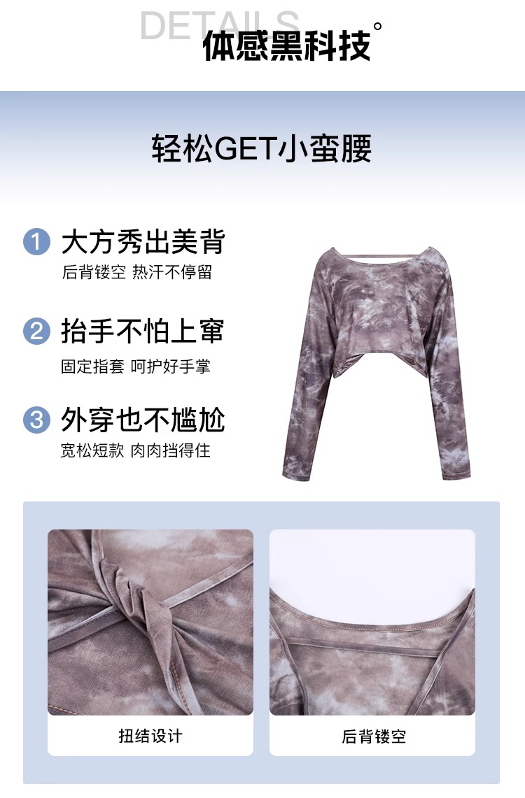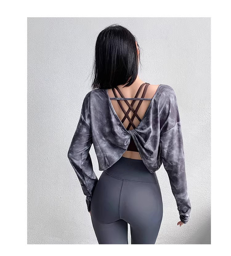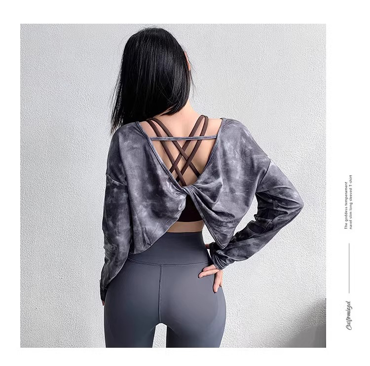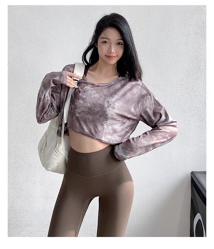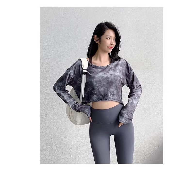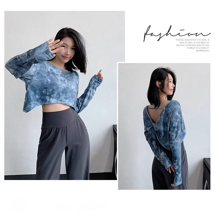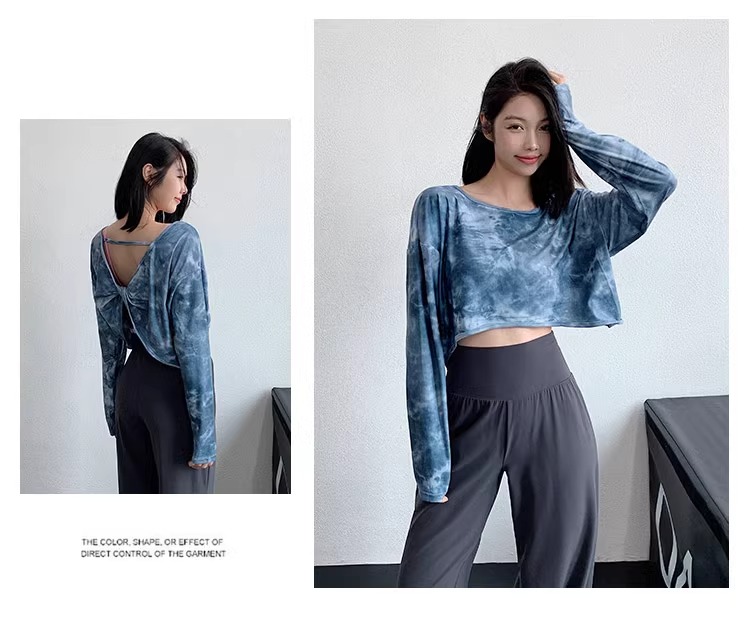 跃牌【洛水之神系列】新款扎染瑜伽罩衫性感气质宽松显瘦透气长袖T恤跑步健身训练上衣HN203