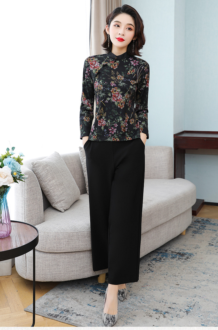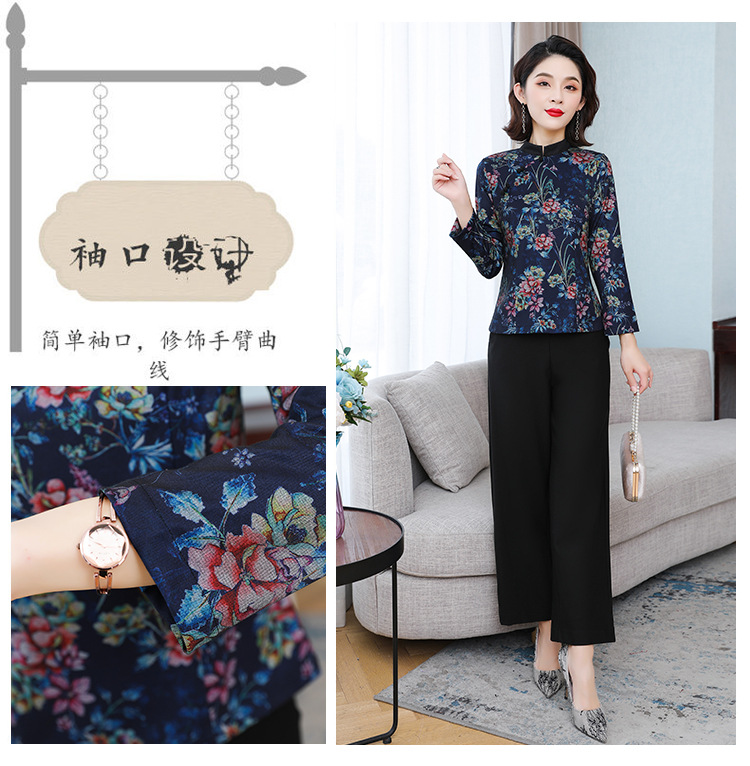 AHM-aqy120新款大码格子衬衫九分裤小脚裤两件套