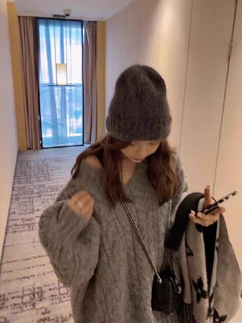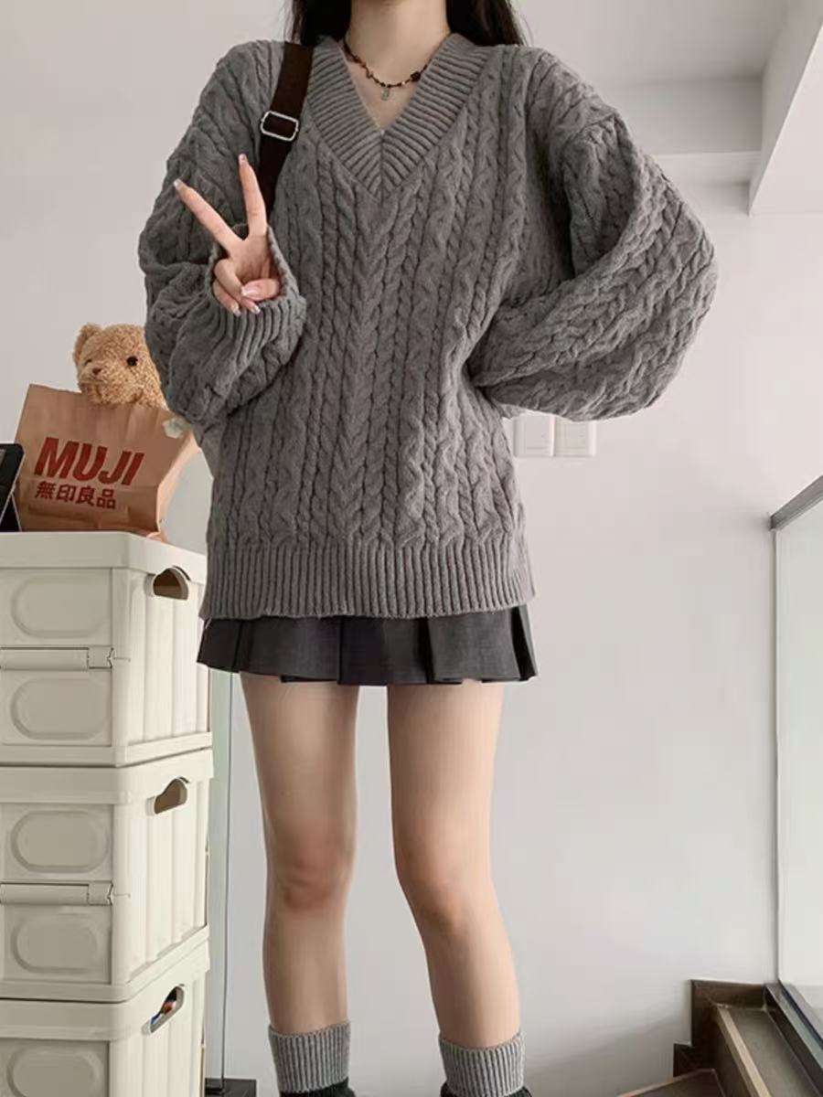 【孤品捡漏】G179灰色V领麻花针织毛衣-喜出