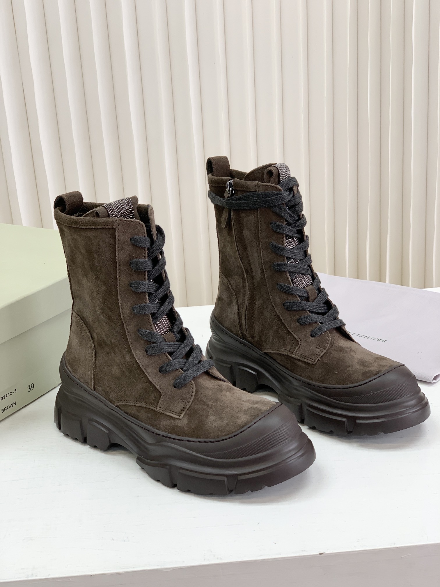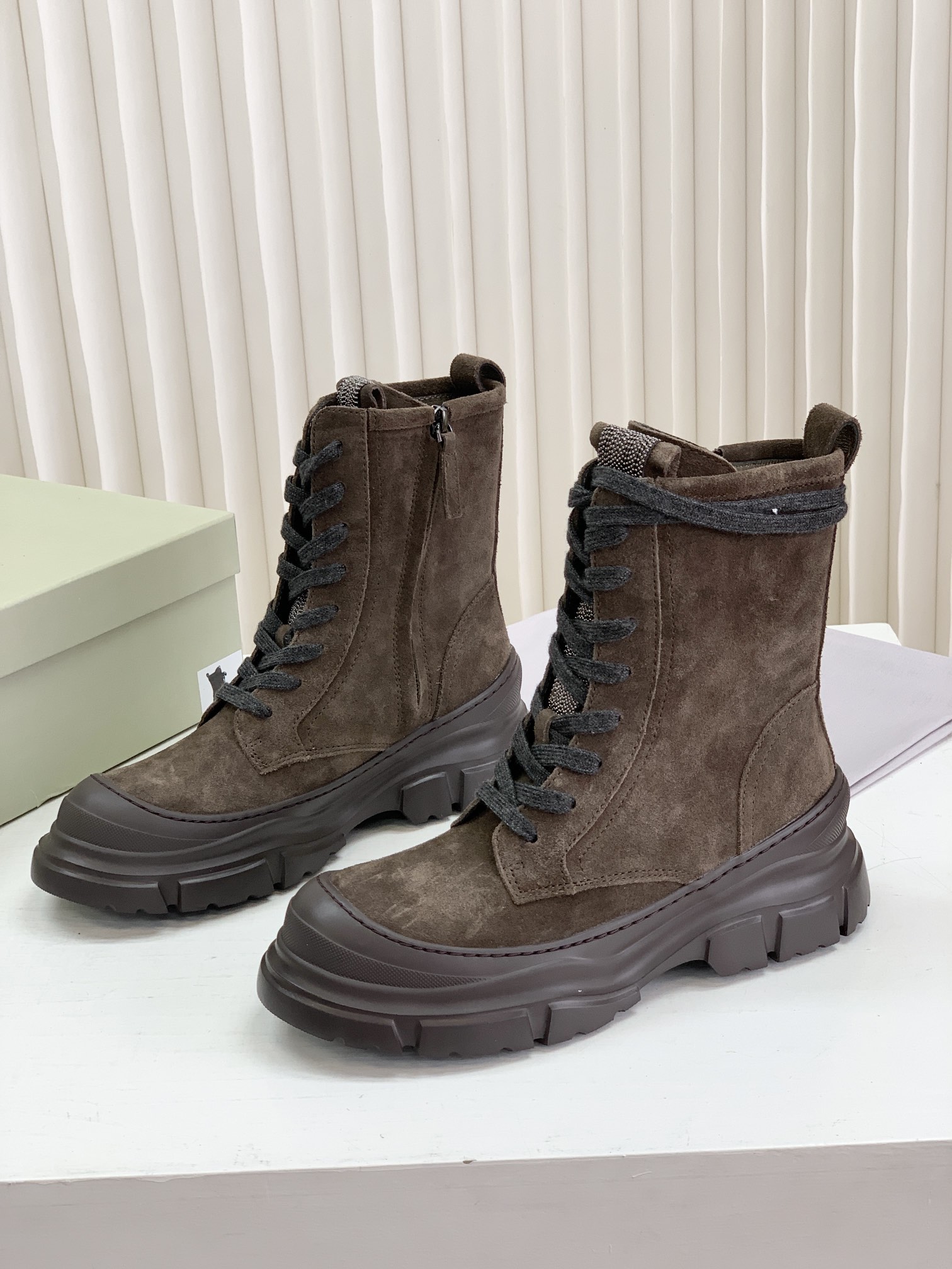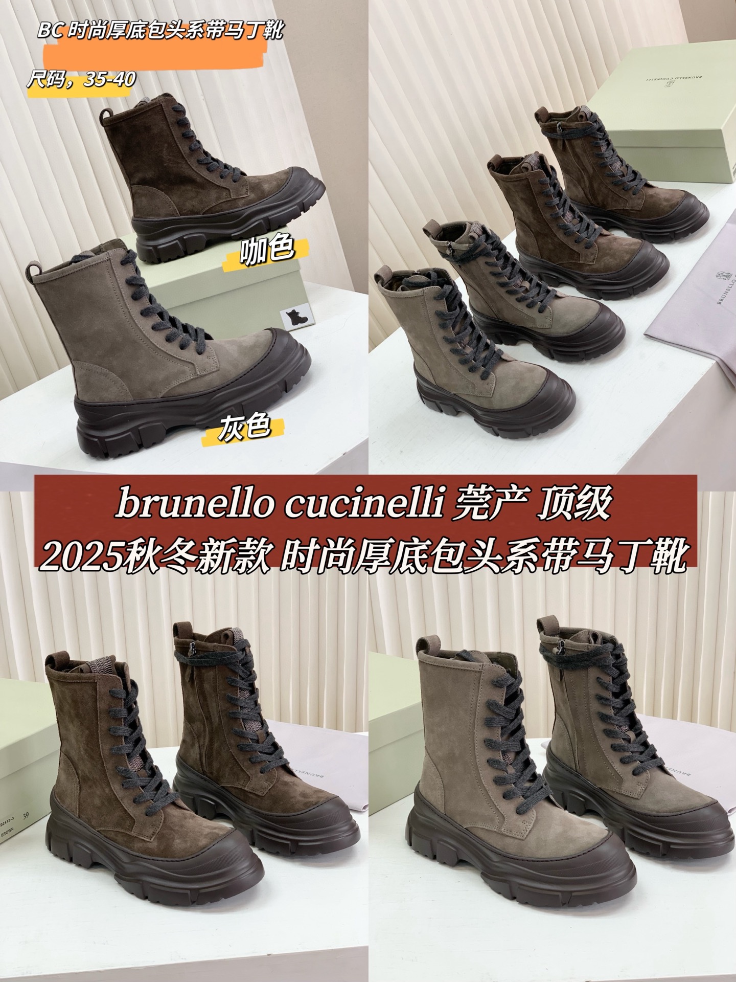 brunello cucinelli,莞产,顶级,官网同步,2025秋冬新款,时尚厚底包头系带马丁靴‼️