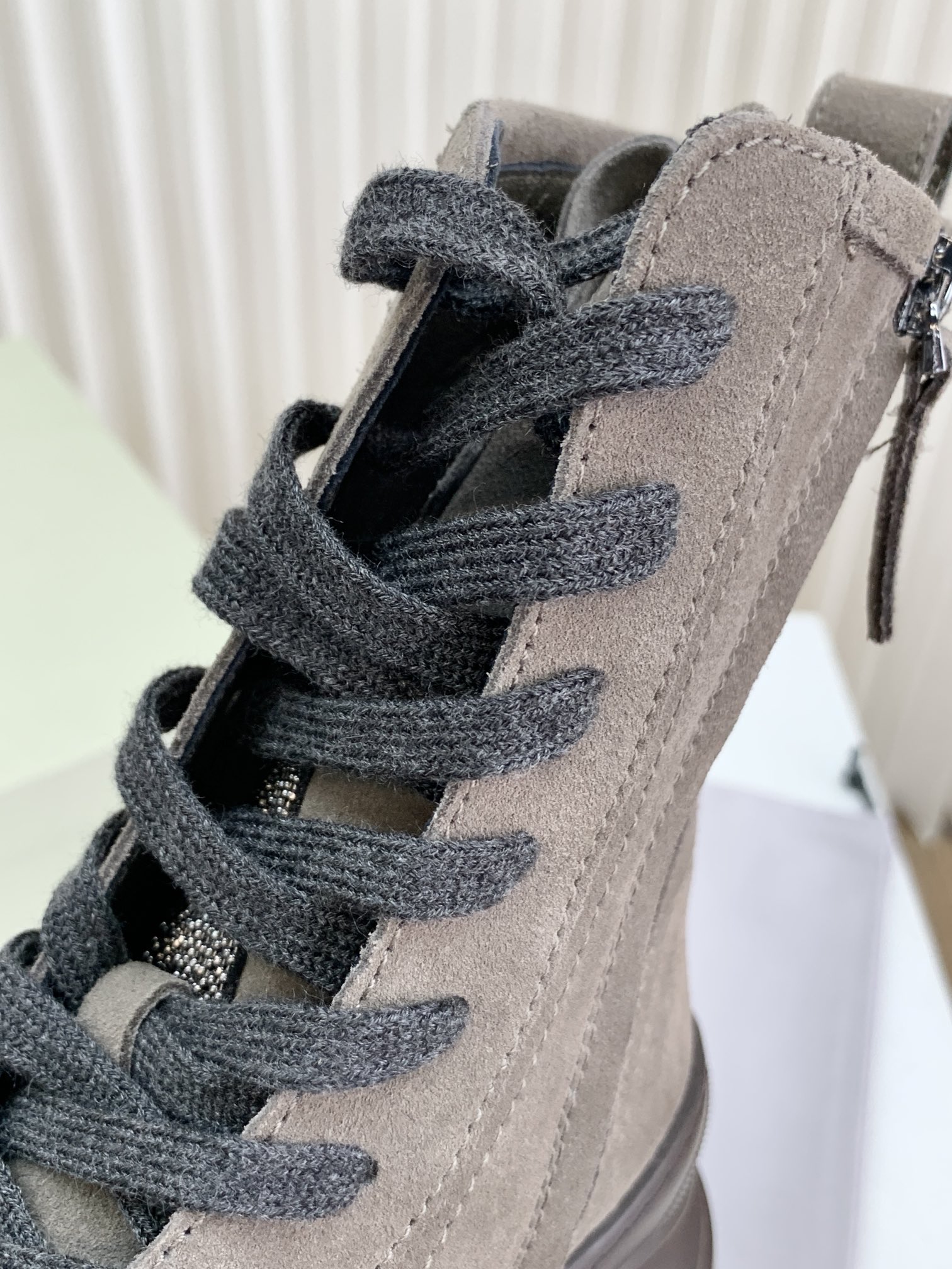 Brunello Cucinelli,来自意大利的世界顶级奢侈品 相信这个品牌老朋友都熟悉了吧,所有的服饰都是采用最顶级的材质与手工制作,每一个作品都是非常耐人寻味的,今天带来超级有范的一款靴子,侧边拉链设计,方便穿脱,鞋带一定范围内调节松紧以便不通的脚型