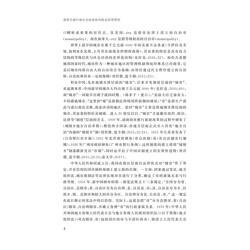 在全球化背景下,国家之间的竞争越来呈现为大都市区。作为行政体制的空间投影,区划改革是重塑治理格局、推进市域治理体系和治能力现代化的重要基础。当前,由于我国特殊的市管县体制及相应度安排,在地域范围、资源配置能力公共服务水平等诸多方面,我国市域行政区划改革面临经济绩效不确定、公众参与不充分、社会秩序不稳定、历史文化不延续、生态保护不全面等五大风险。为此,本书提出,可以从“全流程”和应急管理“ 5R ”理论的视角,优化我国市域行政区划改革。