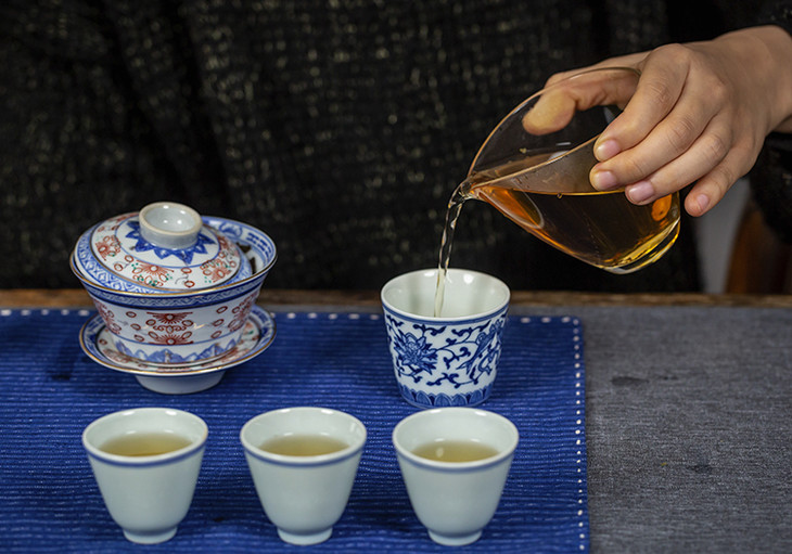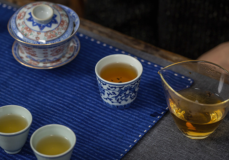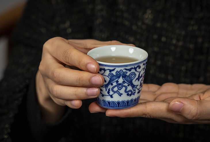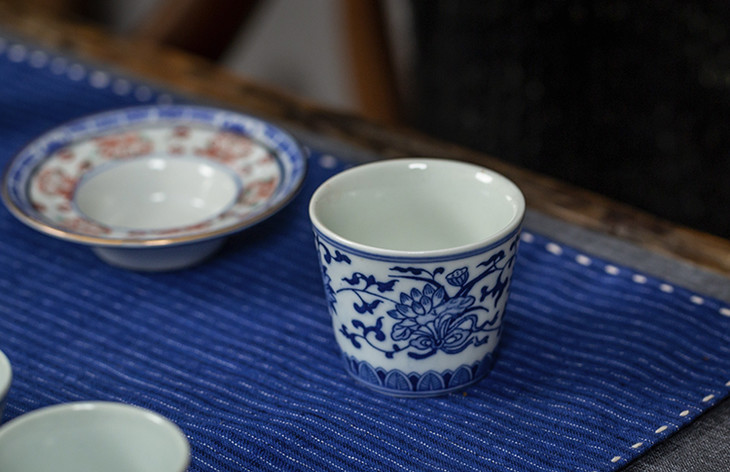 茶香记 景德镇 仿老厂瓷 青花直口双凤杯 青花双鱼杯 贴花工艺