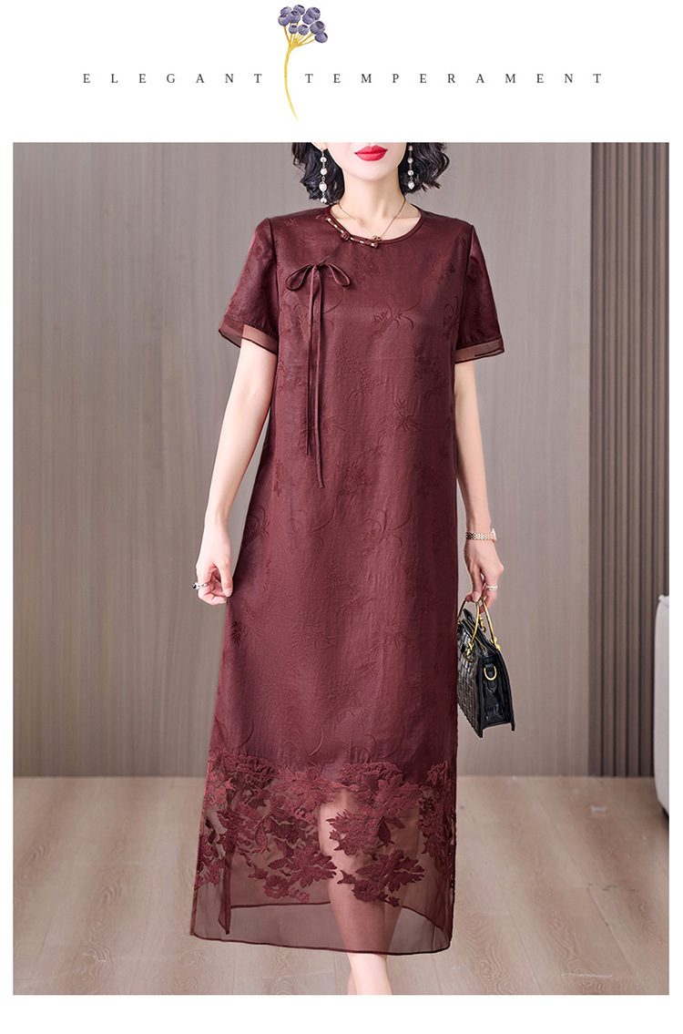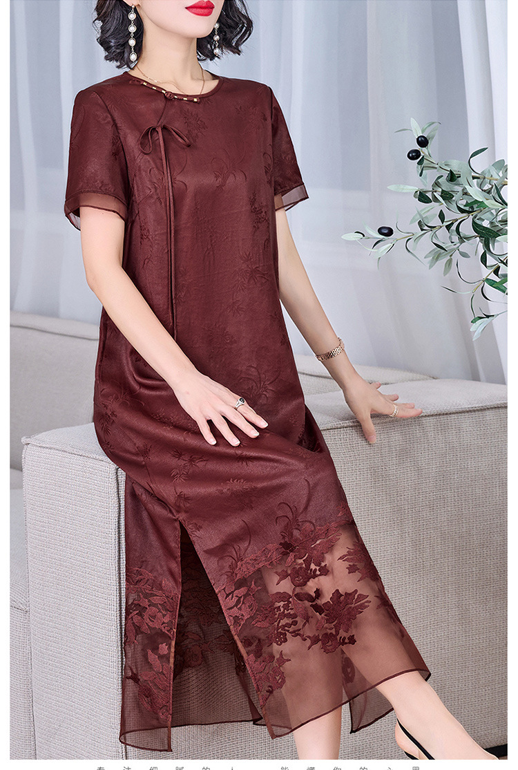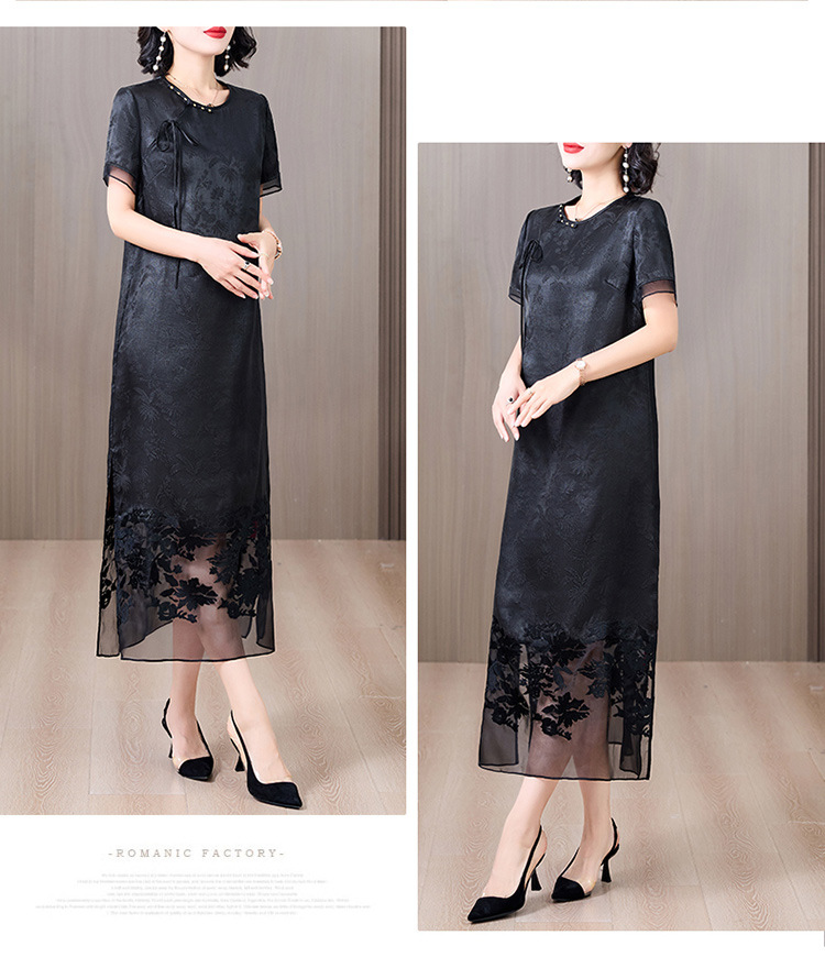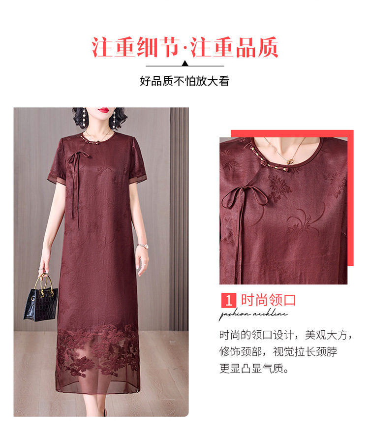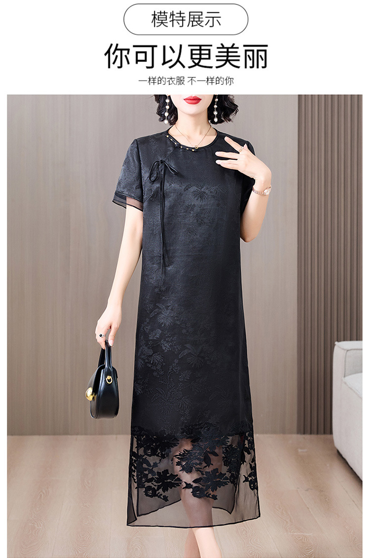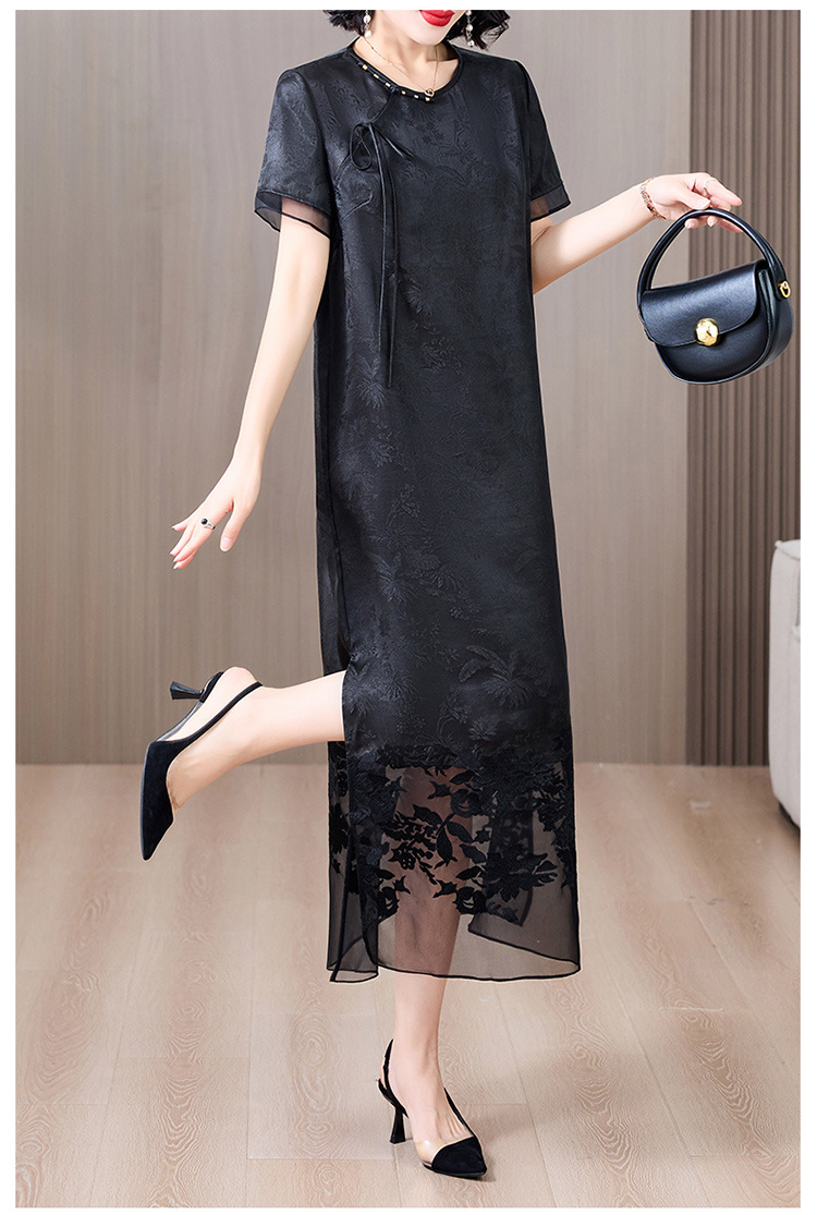 2025夏装新款香云纱气质连衣裙提花重工刺绣短袖裙子女