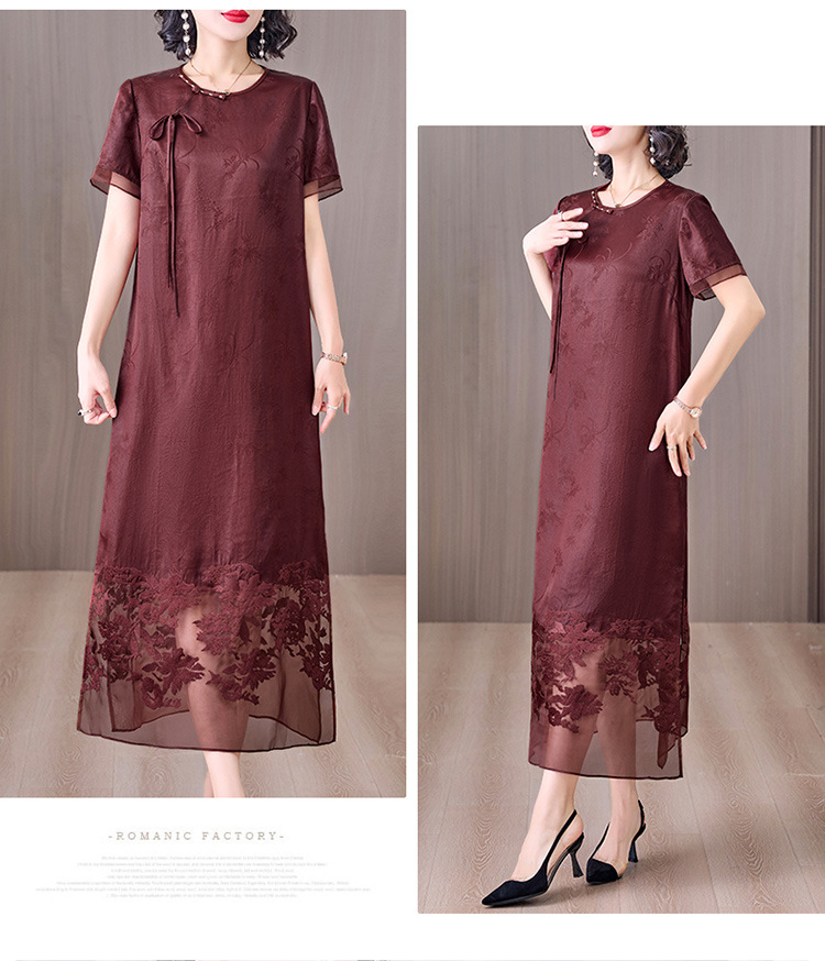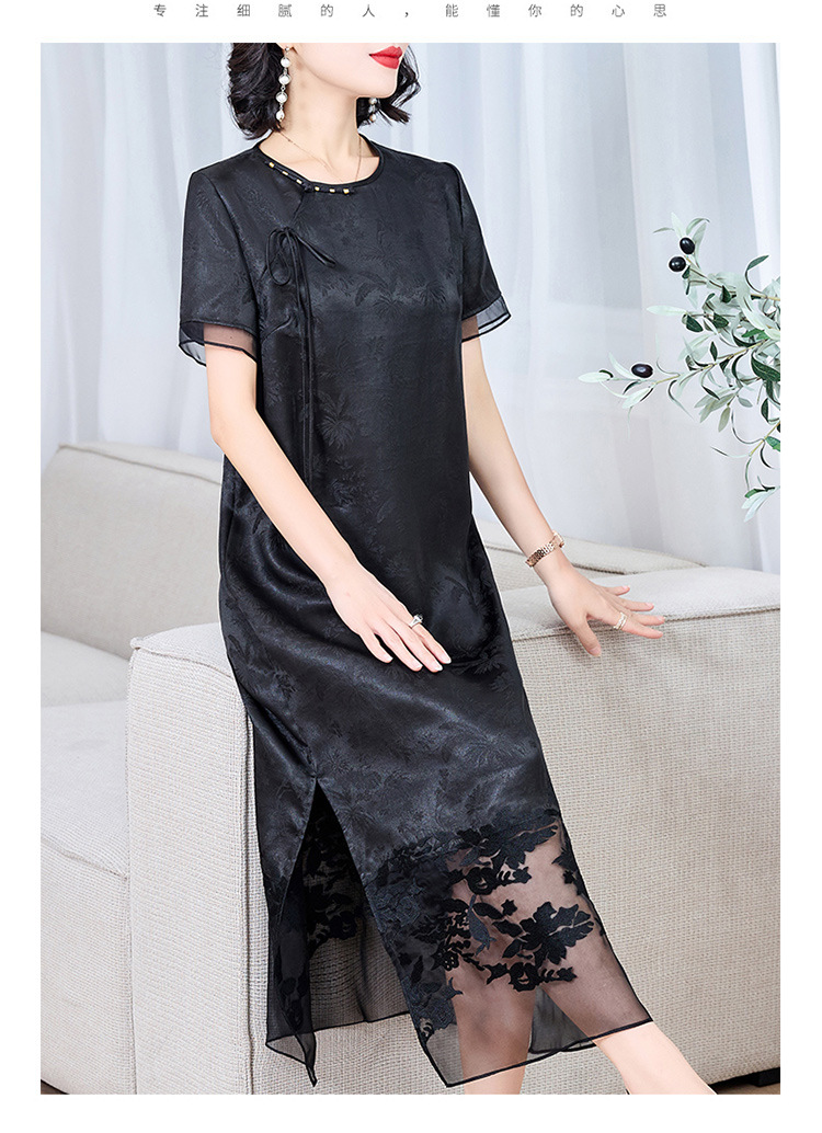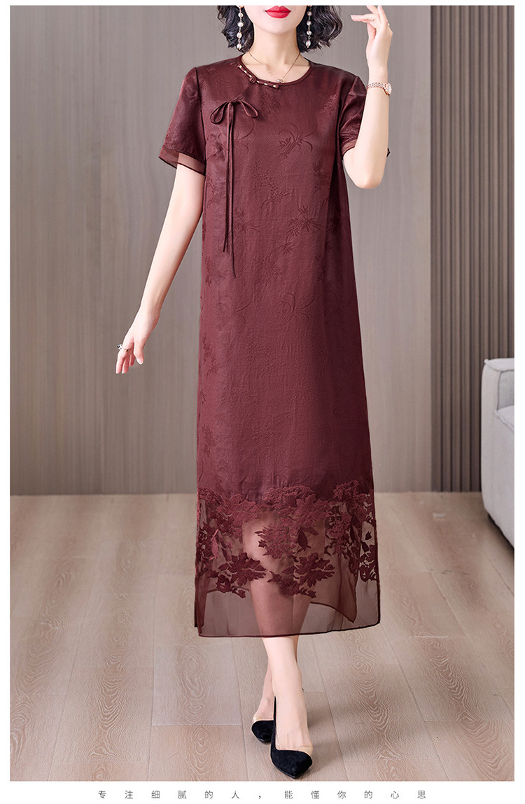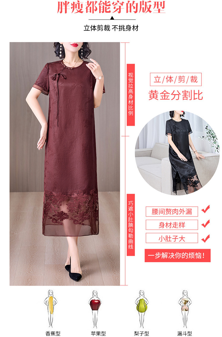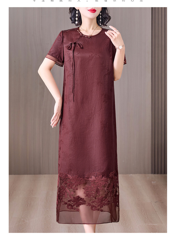 2025夏装新款香云纱气质连衣裙提花重工刺绣短袖裙子女