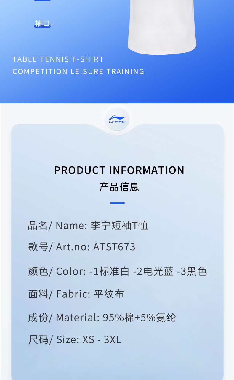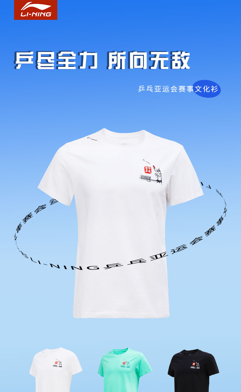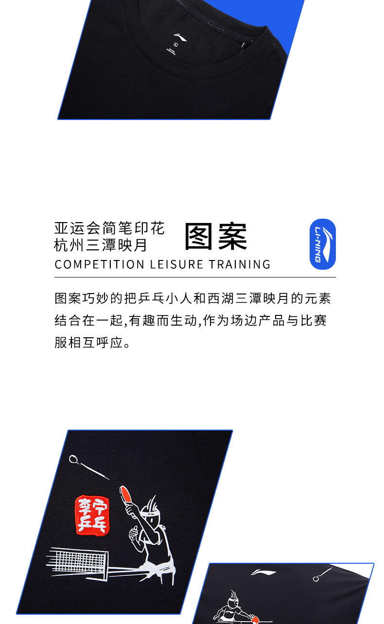 李宁2023新亚运会文化衫乒乓球服文化衫男 女T恤含棉舒适乒乓球衣