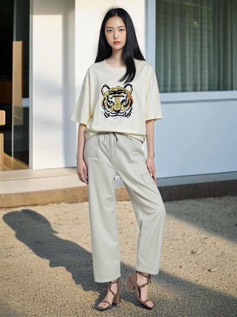 仅限11.11,不参与退~(不支持退)【NOIDARA品牌】100%棉(亮片虎头可变熊猫)T恤2116-喜出
