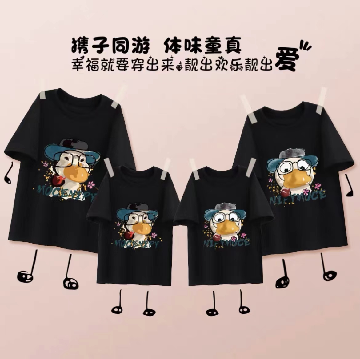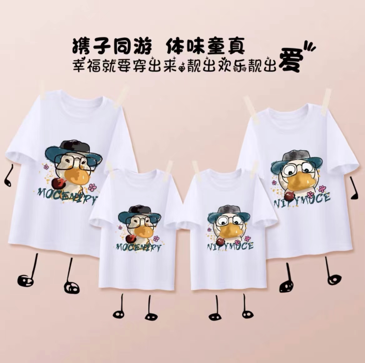 2件39.9元【童T】男童女童同款100%棉(潮牌趣味眼镜鸭鸭)印花T恤-喜出
