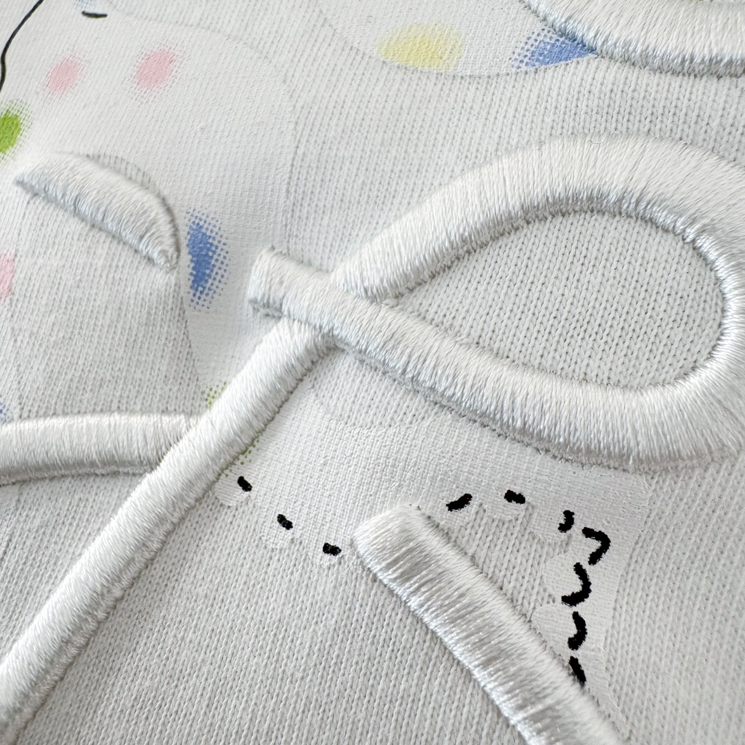 印花采用进口兄弟机白墨直喷,透气色牢度好。原版一比一复刻,区别于市场胶浆打底印花,丝毫不会有任何闷热感,百灵达立体刺绣 层次分明