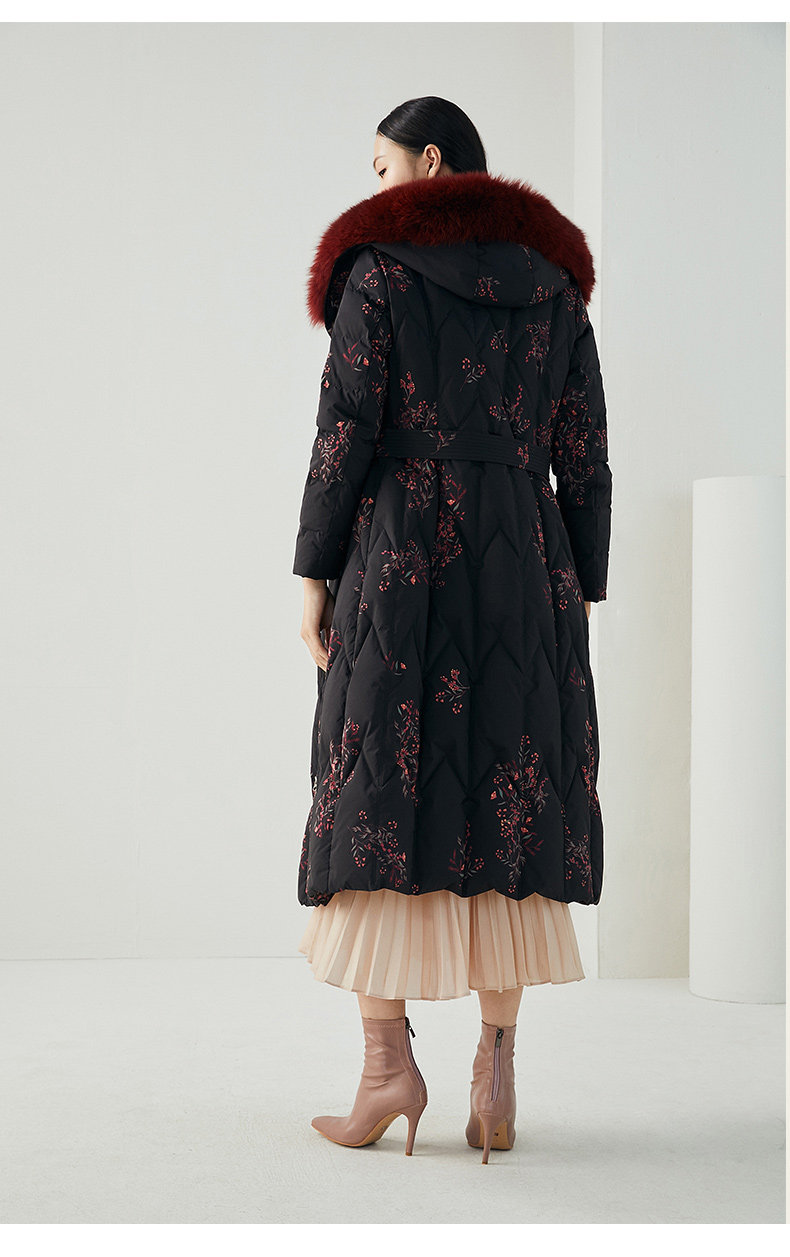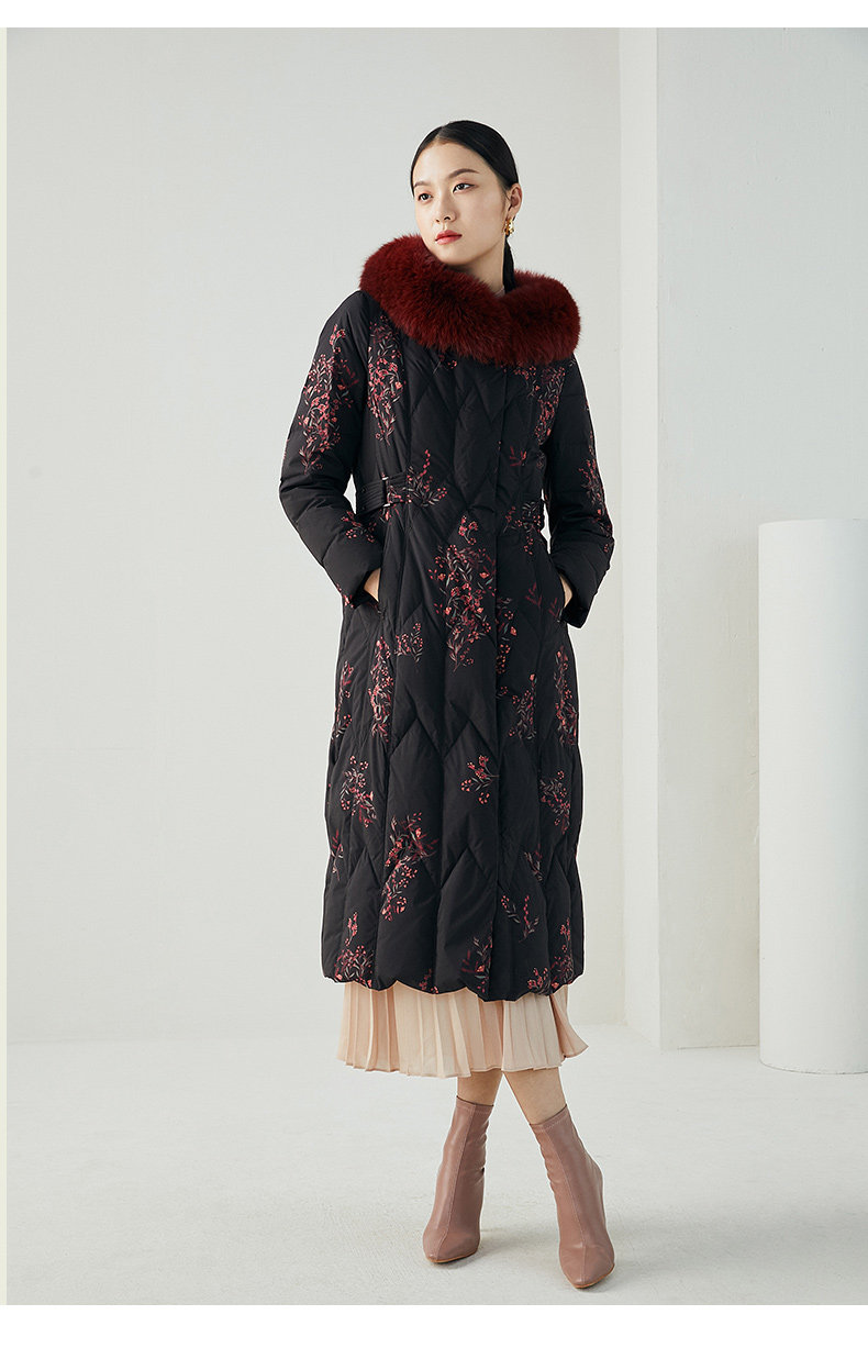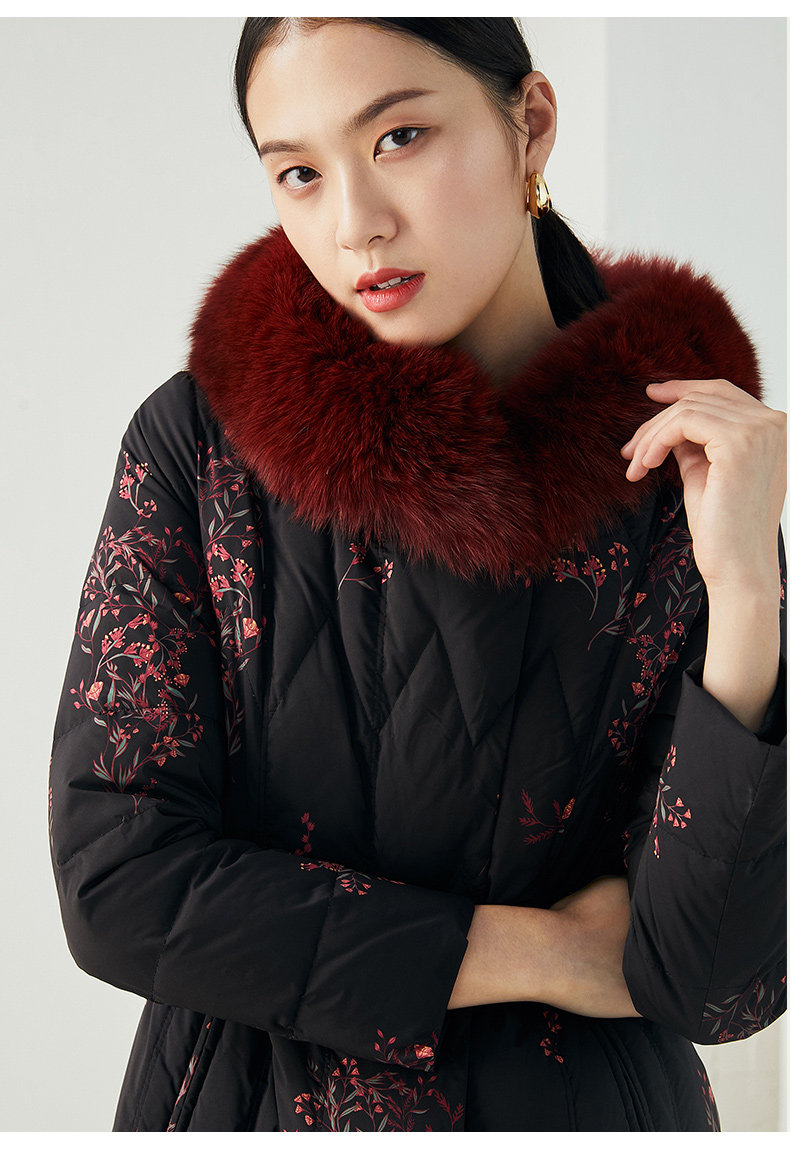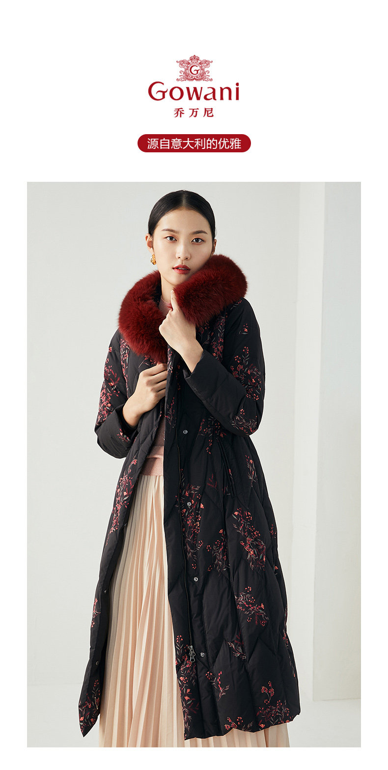 乔万尼复古奢华设计加长款抗寒保暖狐毛领90白鸭绒羽绒服ES4T372