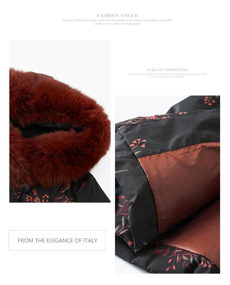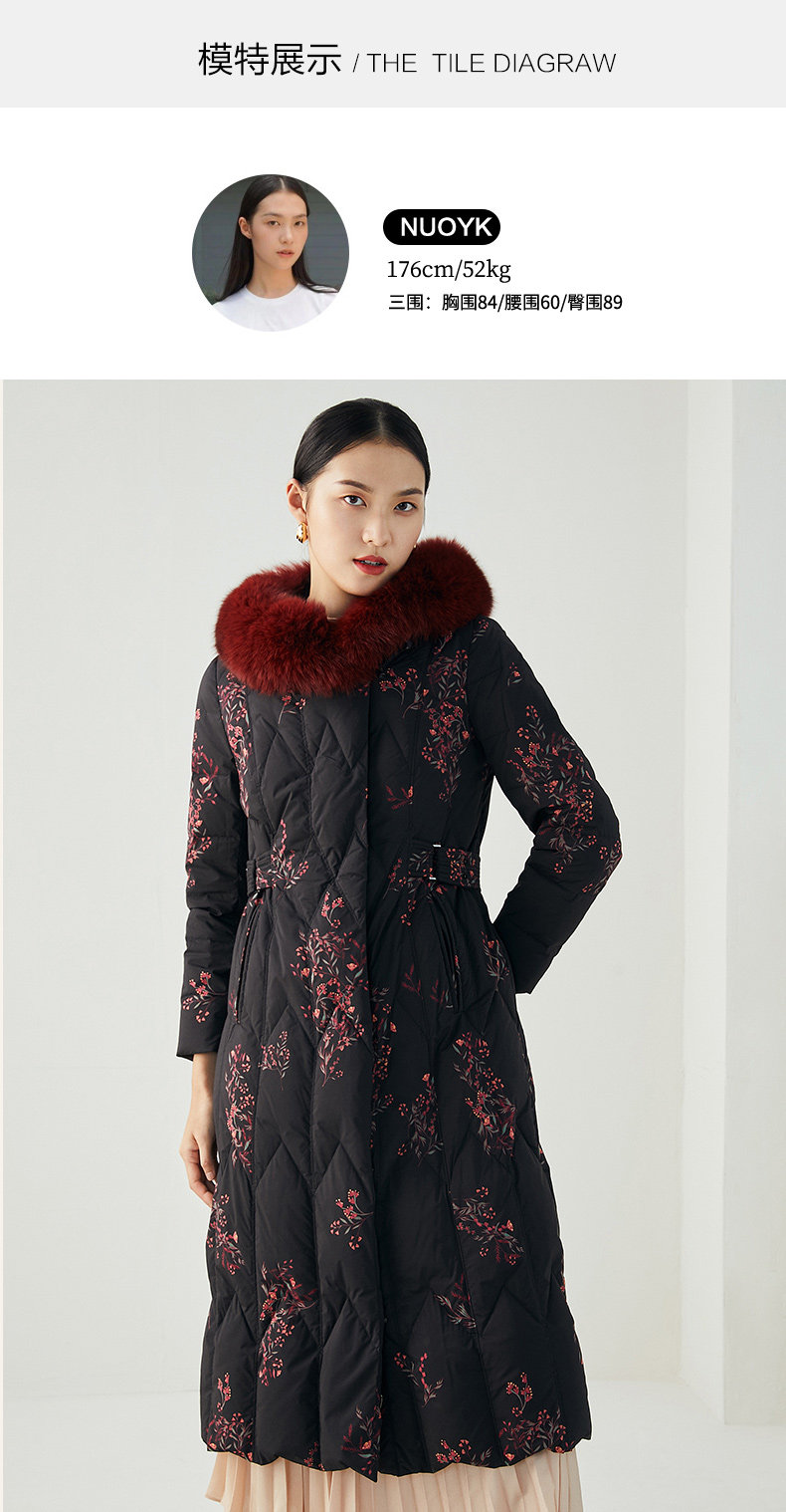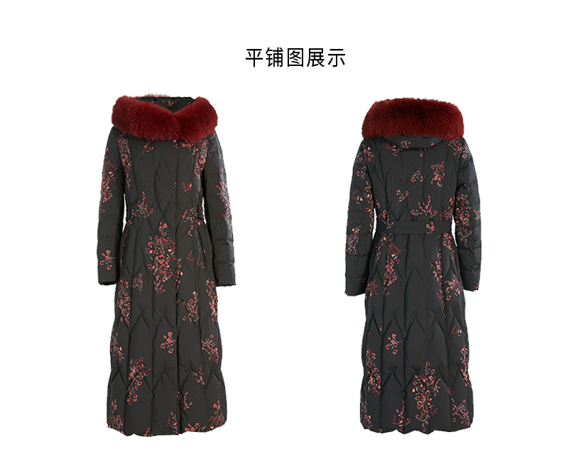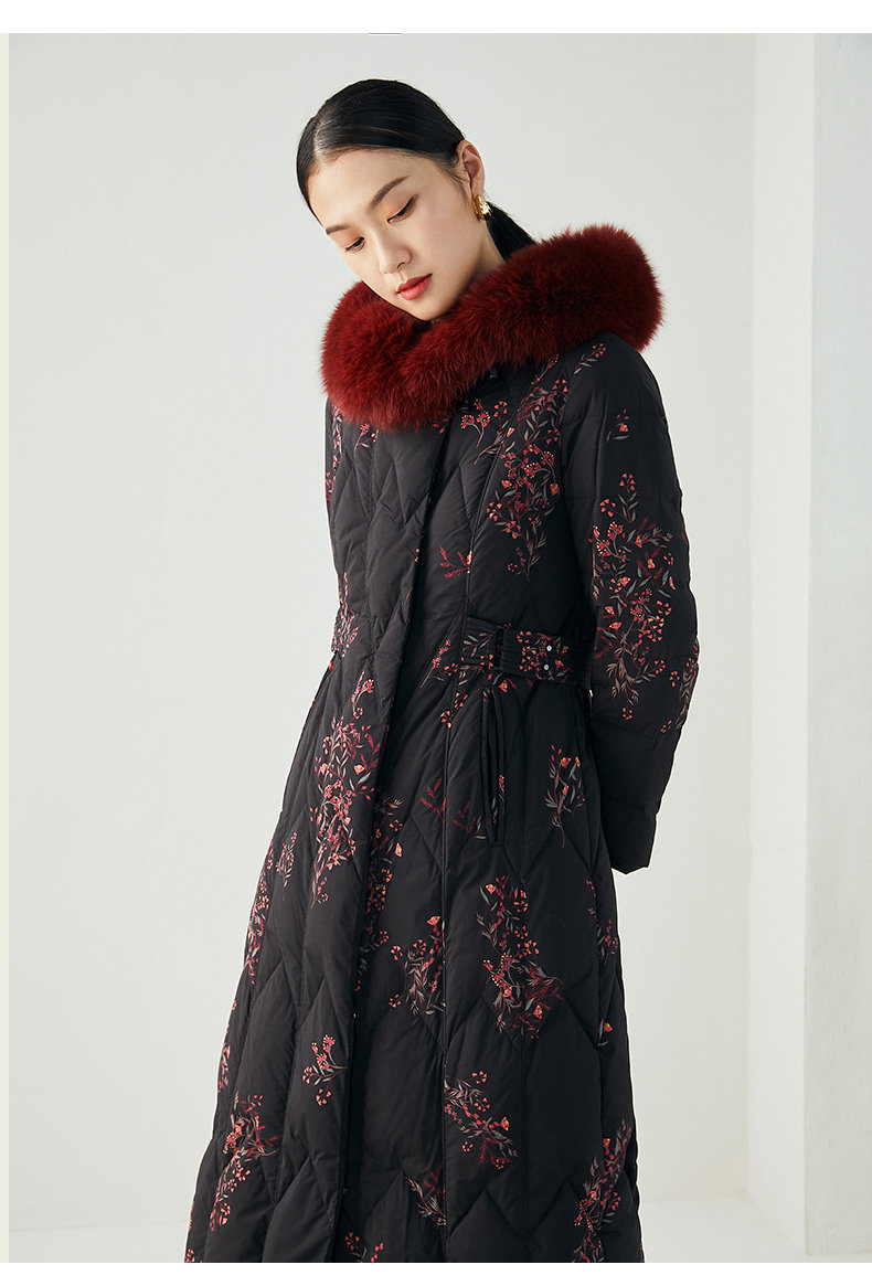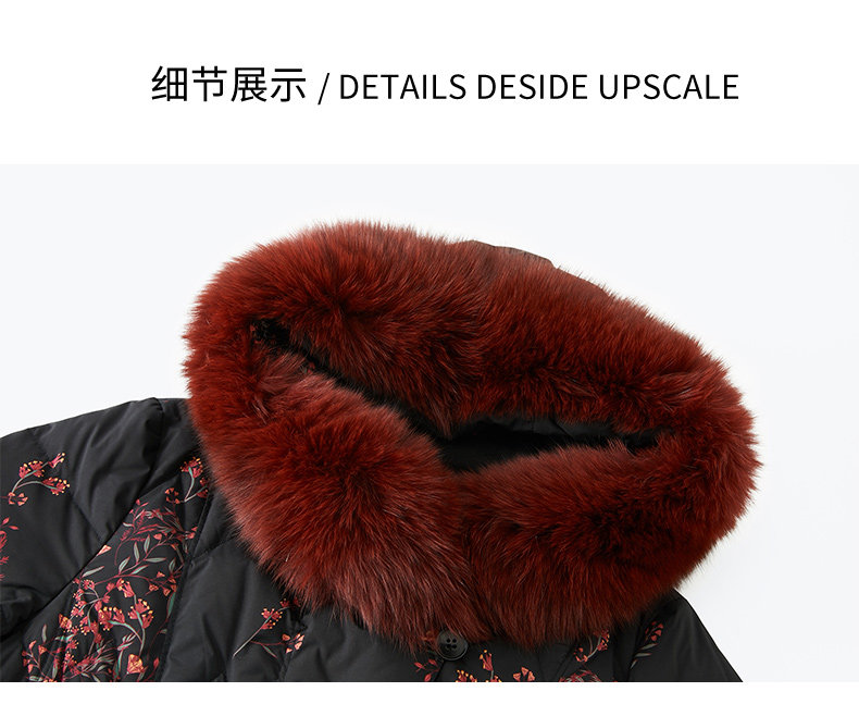 乔万尼复古奢华设计加长款抗寒保暖狐毛领90白鸭绒羽绒服ES4T372