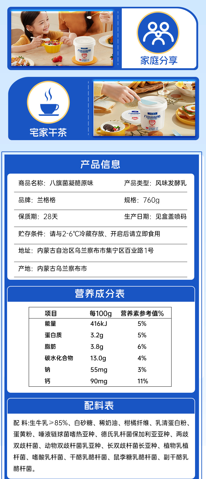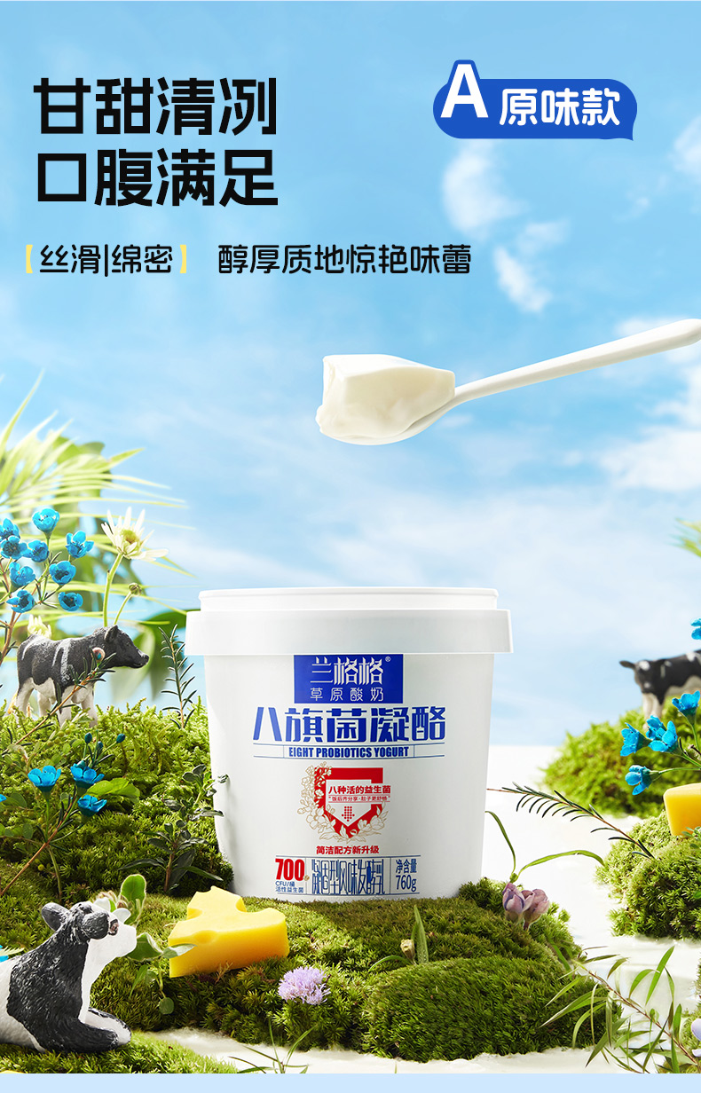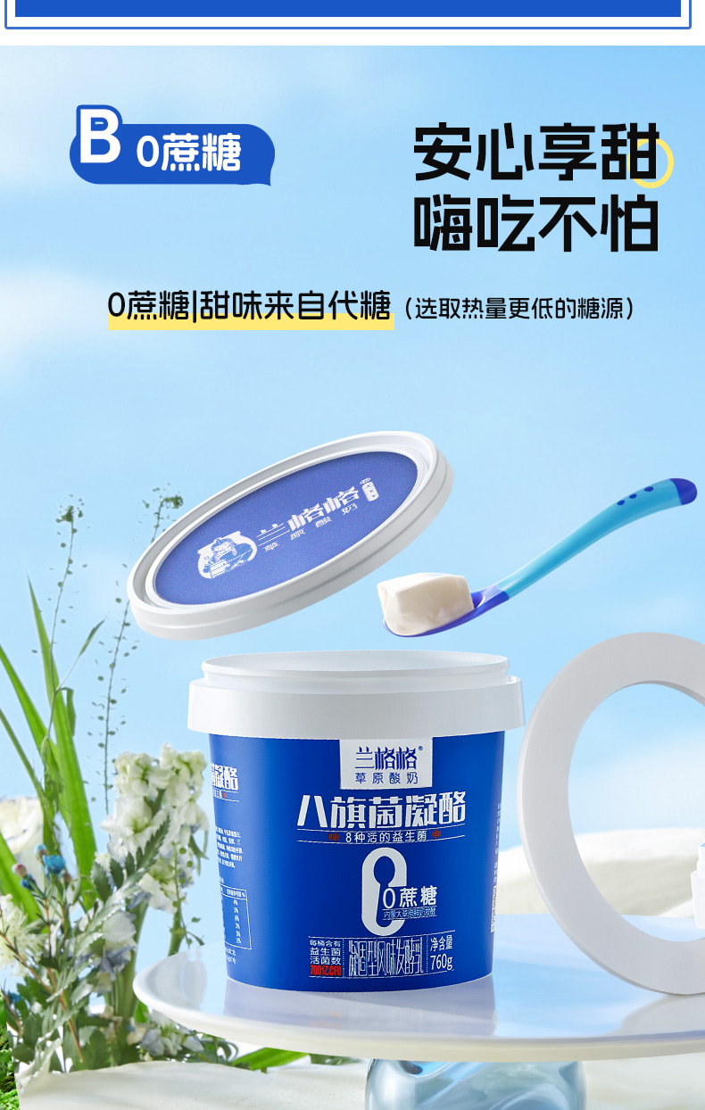 兰格格内蒙古草原酸奶八旗菌凝酪760g*1桶+凝酪0蔗糖760g*1桶
