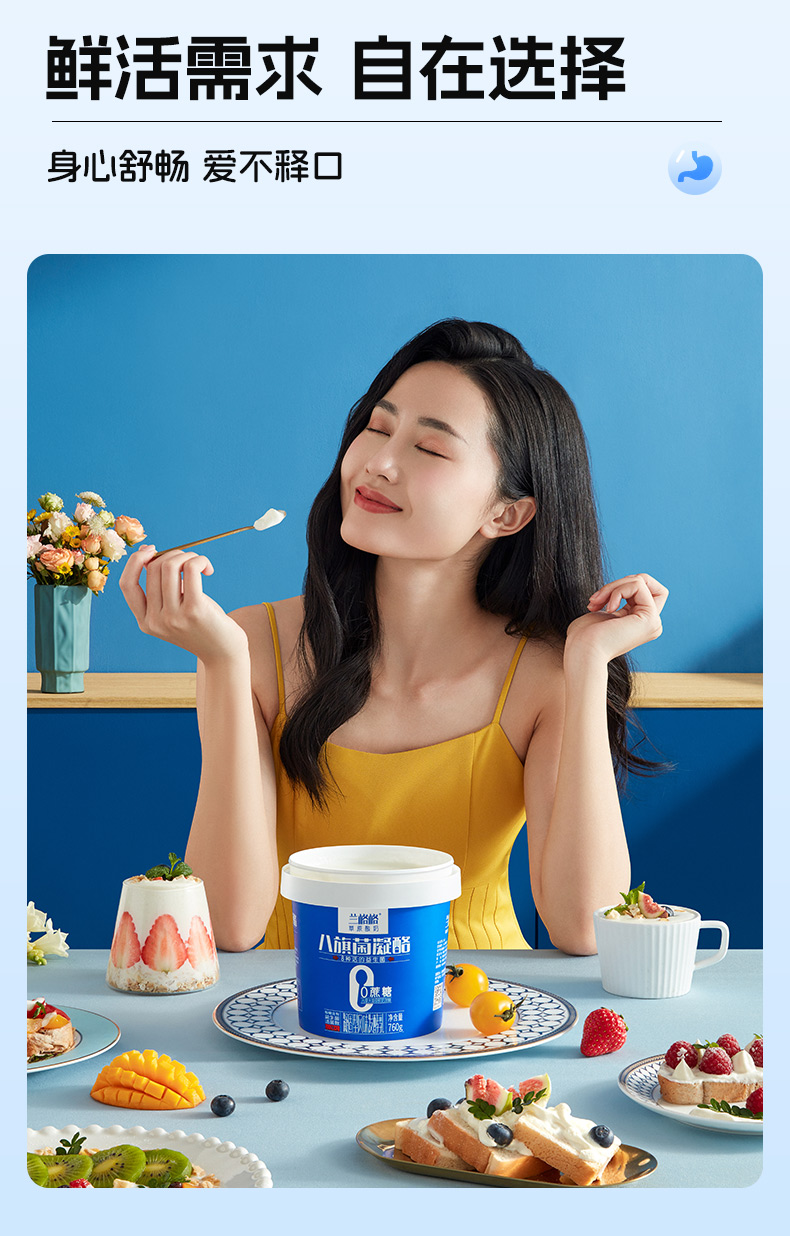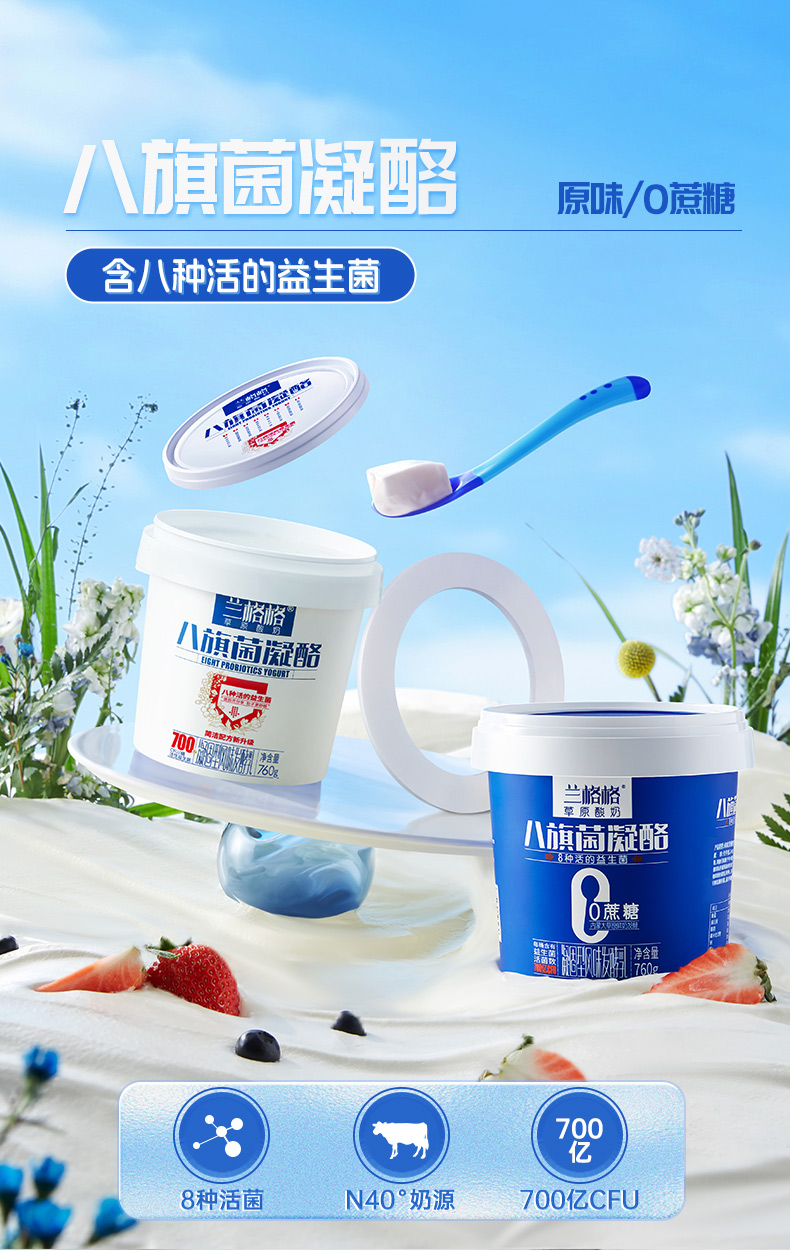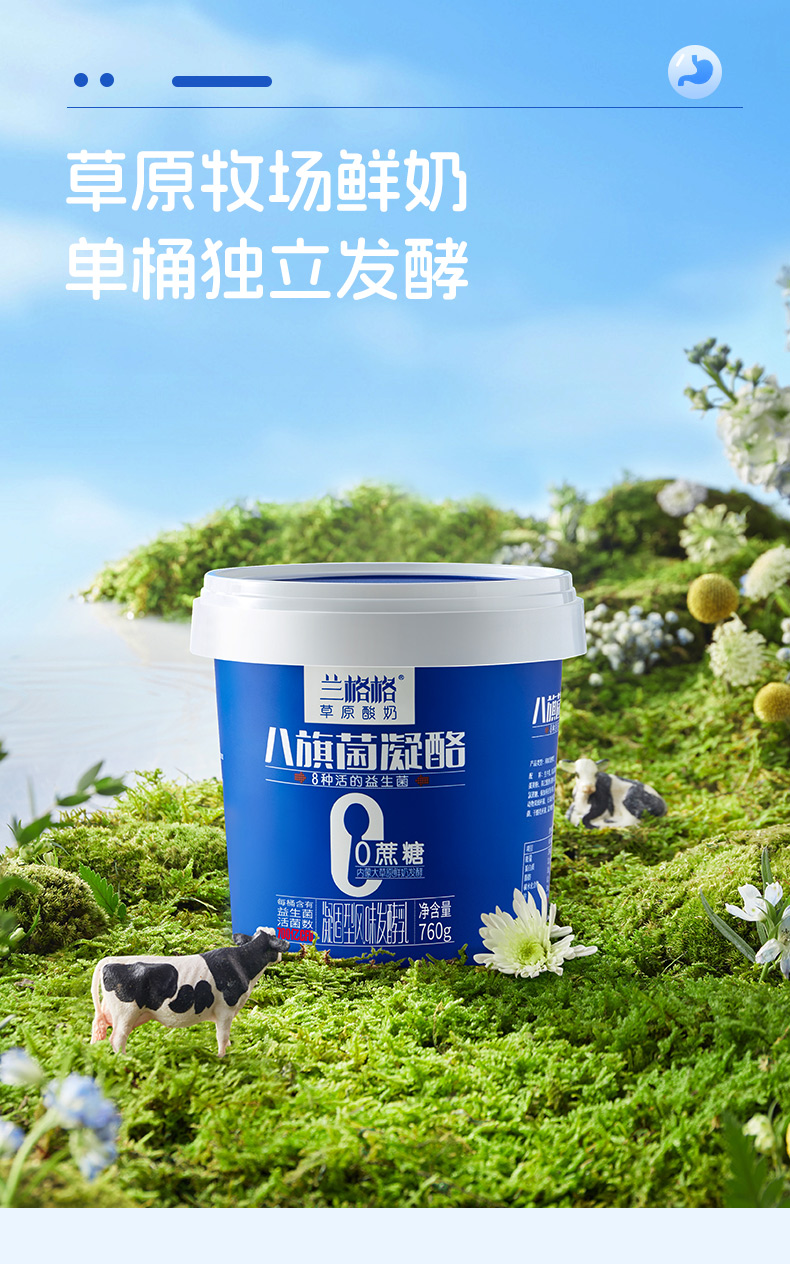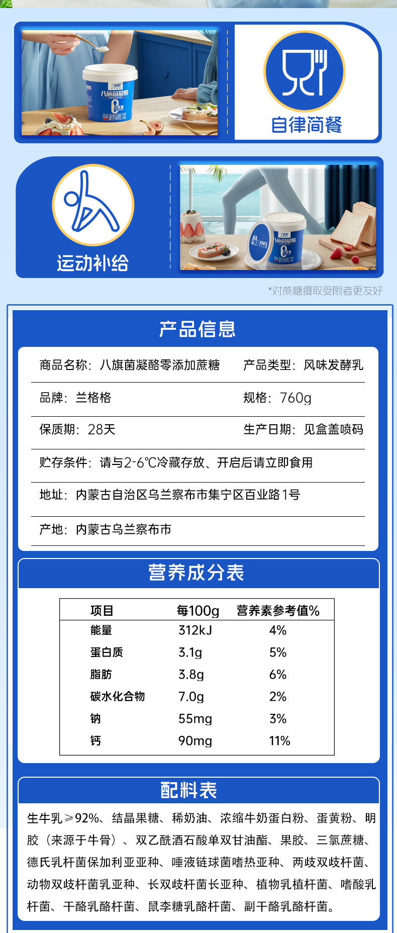 兰格格内蒙古草原酸奶八旗菌凝酪760g*1桶+凝酪0蔗糖760g*1桶