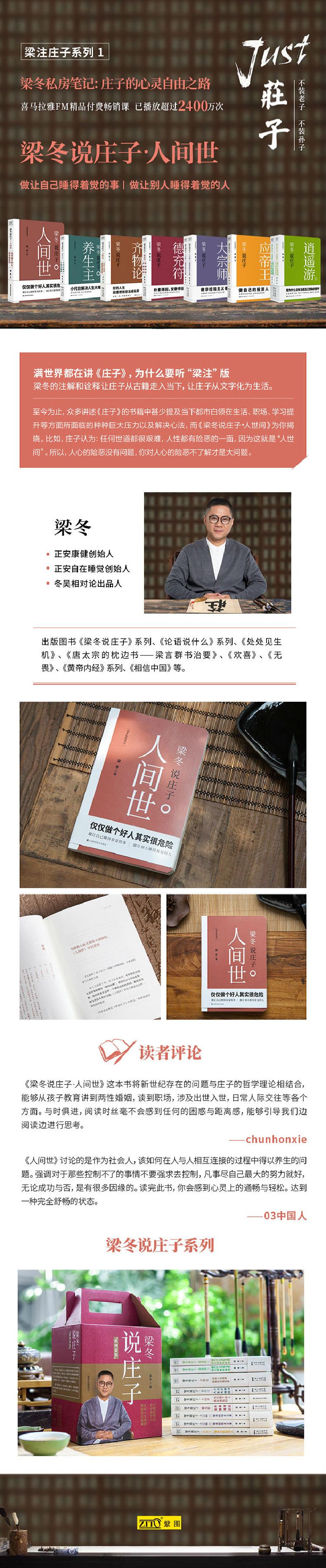 ★每本只讲一个篇目,只求讲好讲透!梁冬继《黄帝内经说什么》之后,延续逐字逐句解读典的风格,为您还原将智慧化为绕指柔,圆滑得可爱极、接当代地气的庄子。深度解读《庄子?内篇?人间世》中你未知道却又须知道的与人相处之道!