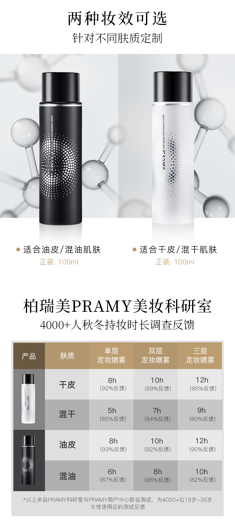 【门店直发 支持同城配送】PRAMY/柏瑞美定妆喷雾100ml保湿补水控油持久定妆防脱妆快速提亮