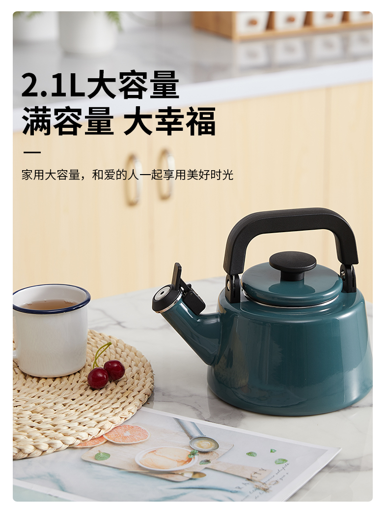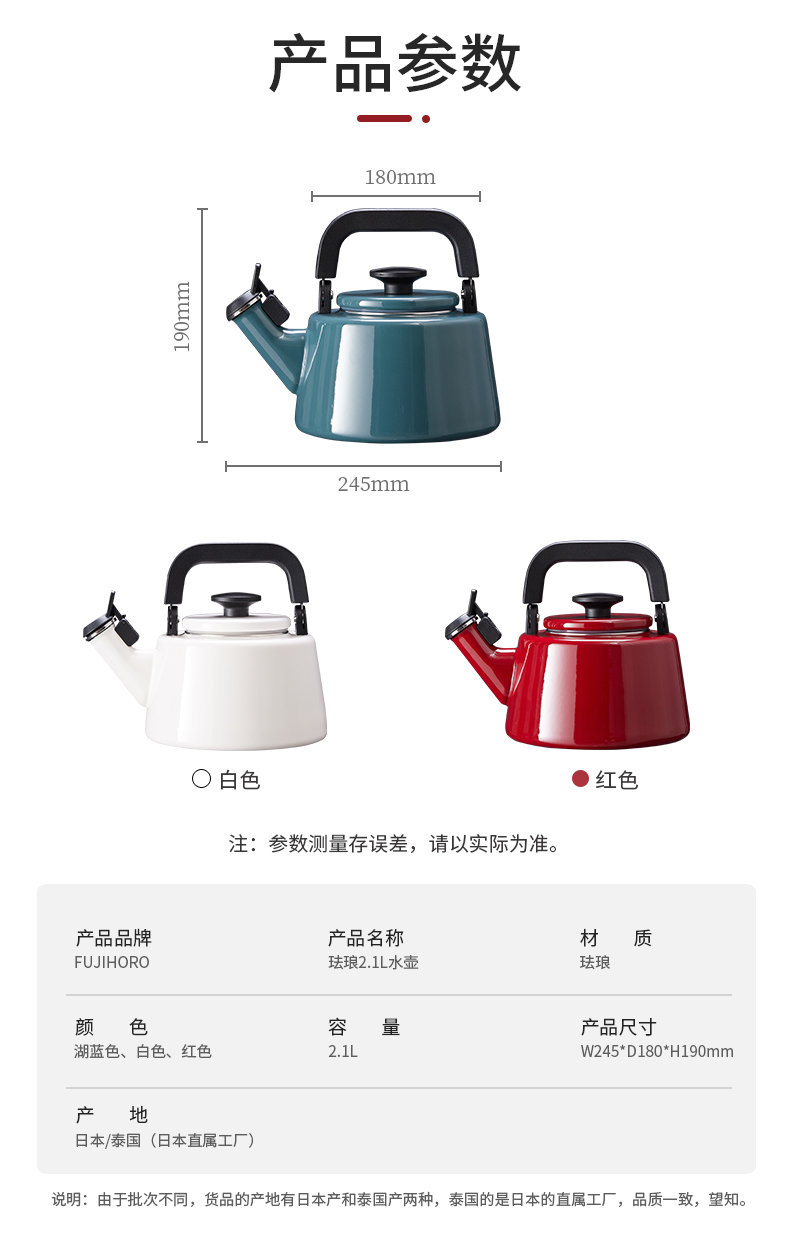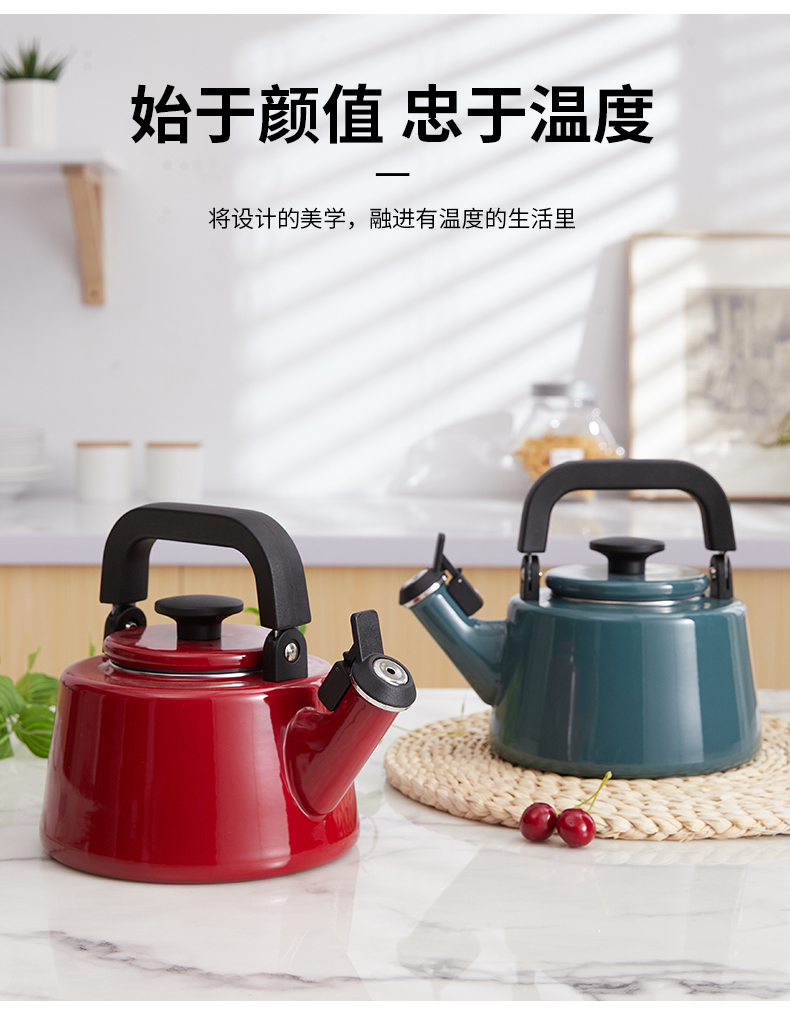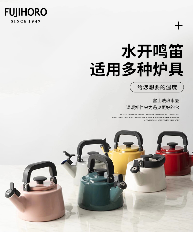 【FUJIHORO 富士珐琅】纯色珐琅方形鸣笛叫壶 2.1L