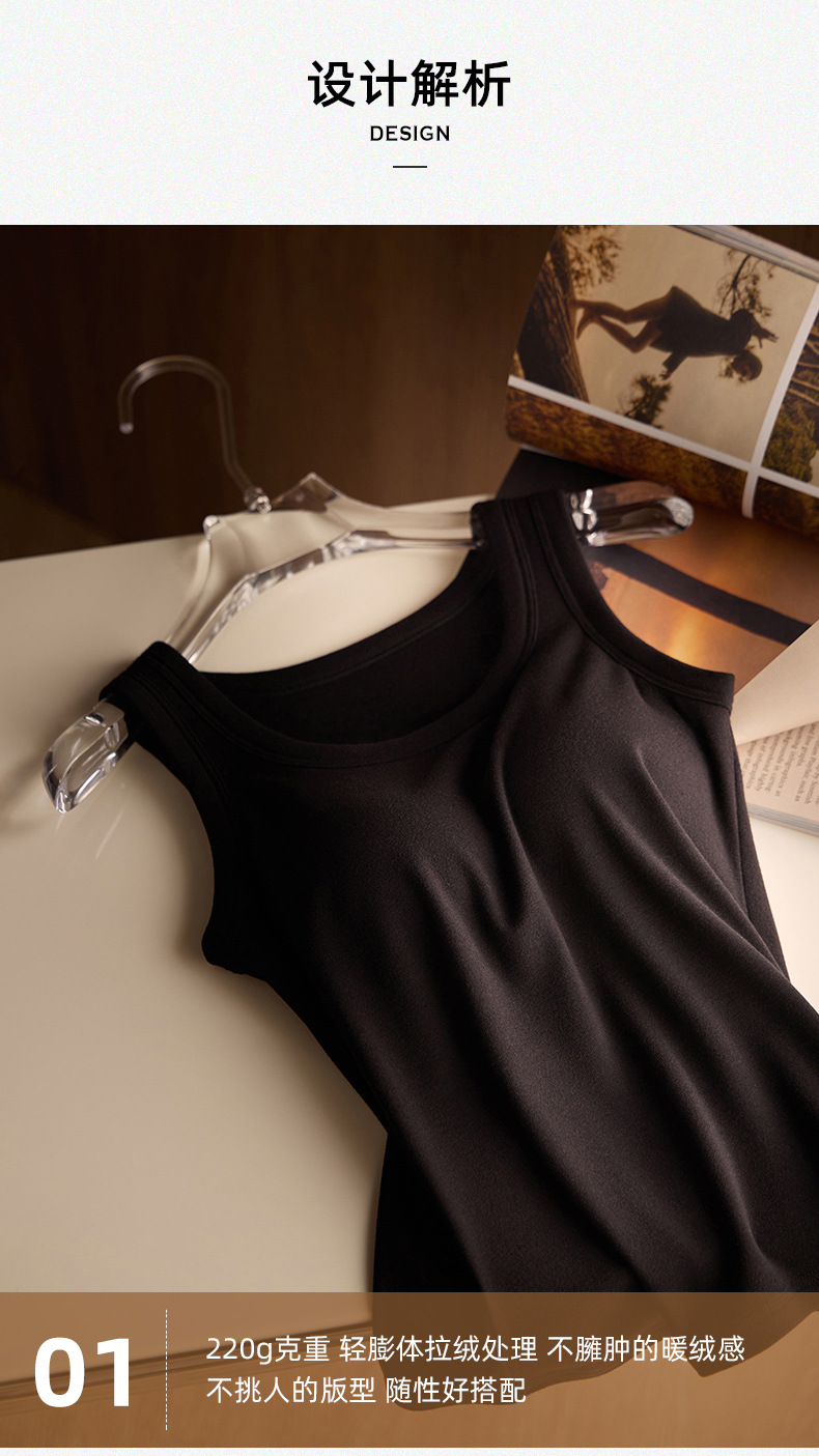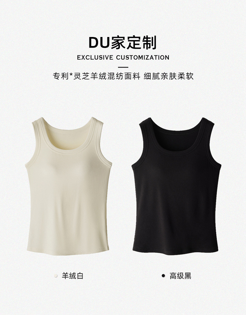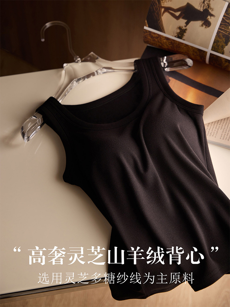 「自」全新升级【铂金会员119/天猫159/差价40】(04827)洛诗琳灵芝山羊绒保暖背心2025秋冬U领胸垫一体打底背心