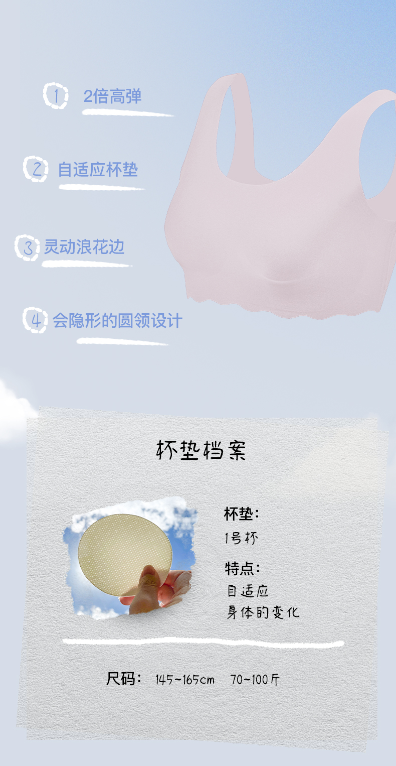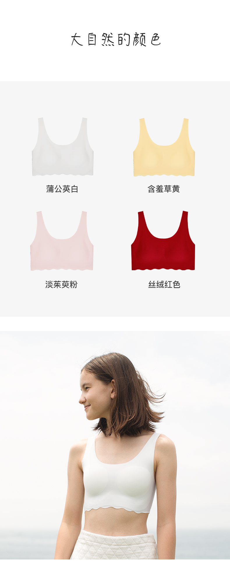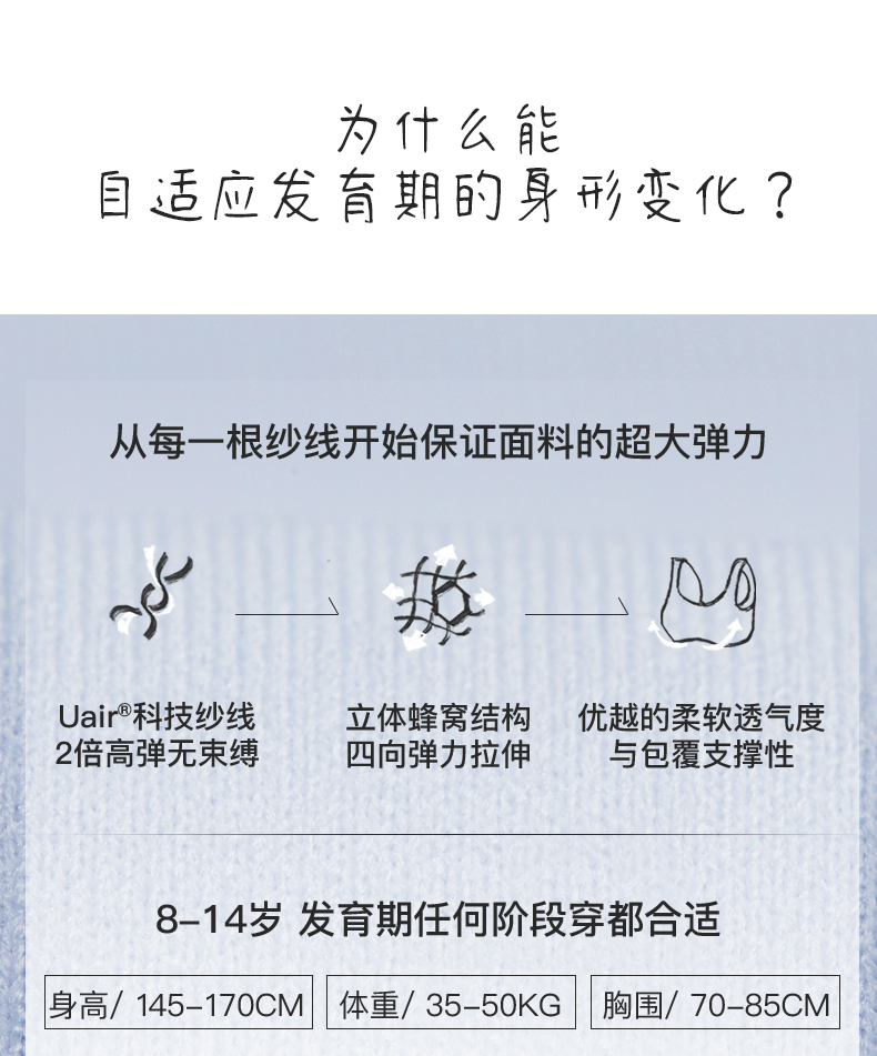 ubras旗下likeuu少女发育期内衣小浪花圆领文胸女童无痕小背心