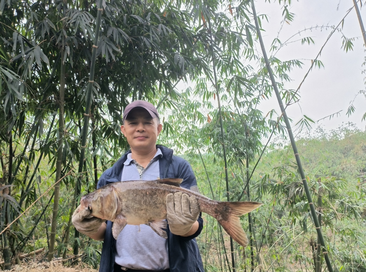 生产方式:鱼塘在竹园里,竹园生态管理,不用农药、化肥、除草剂,不会对鱼塘有影响,4年前投下的鱼苗,投喂花生麸、鲜草、米糠,低密度养殖,不用鱼药,自然淘汰。