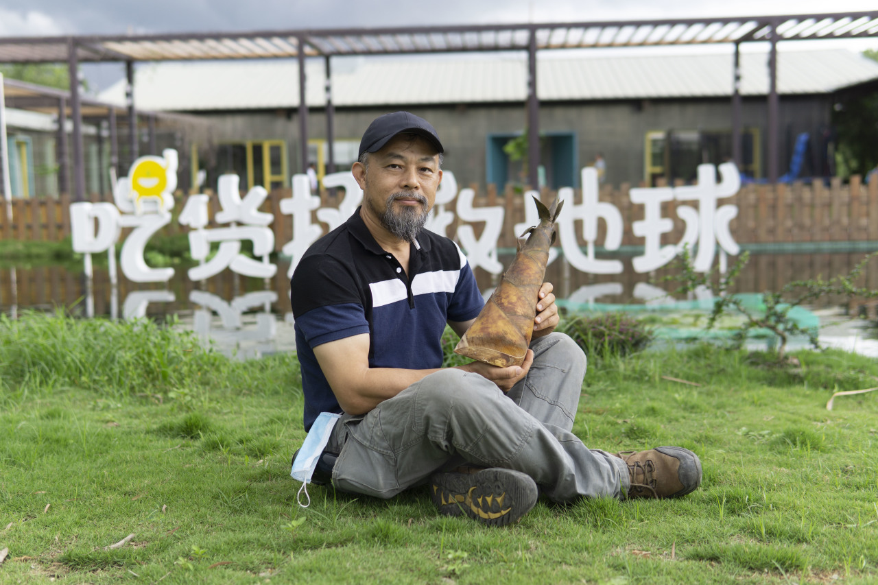 2018年开始只使用自制的堆肥,在竹园自己用破碎竹子跟牛粪制作有机肥,改善土质。