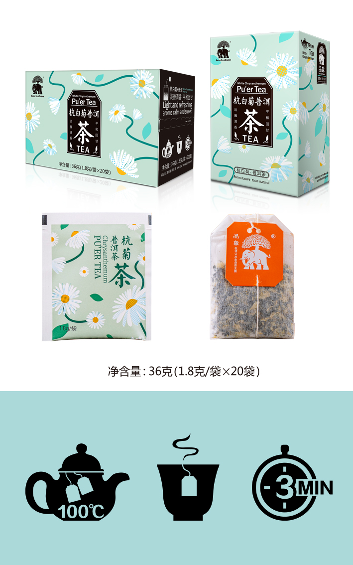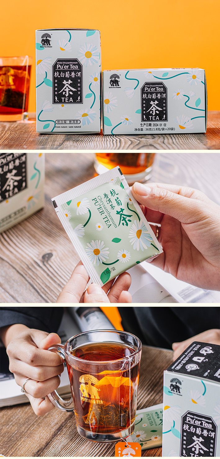 品象袋泡茶杭白菊普洱熟茶淡雅清香汤色黄绿明亮滋味醇和回味甘爽