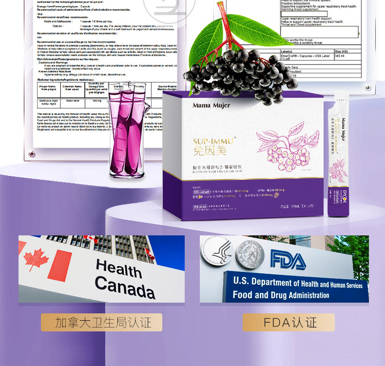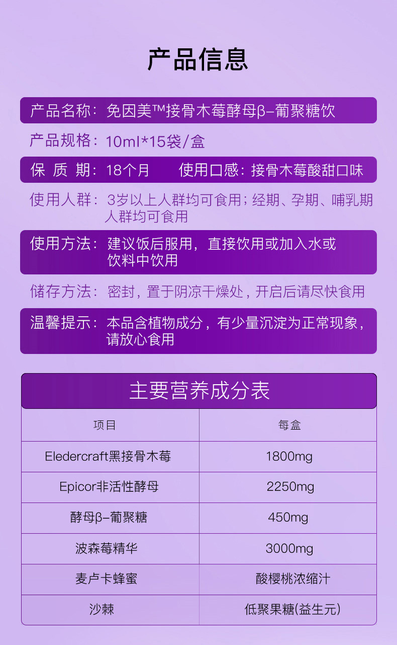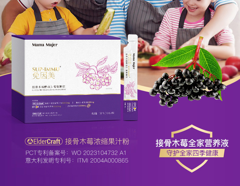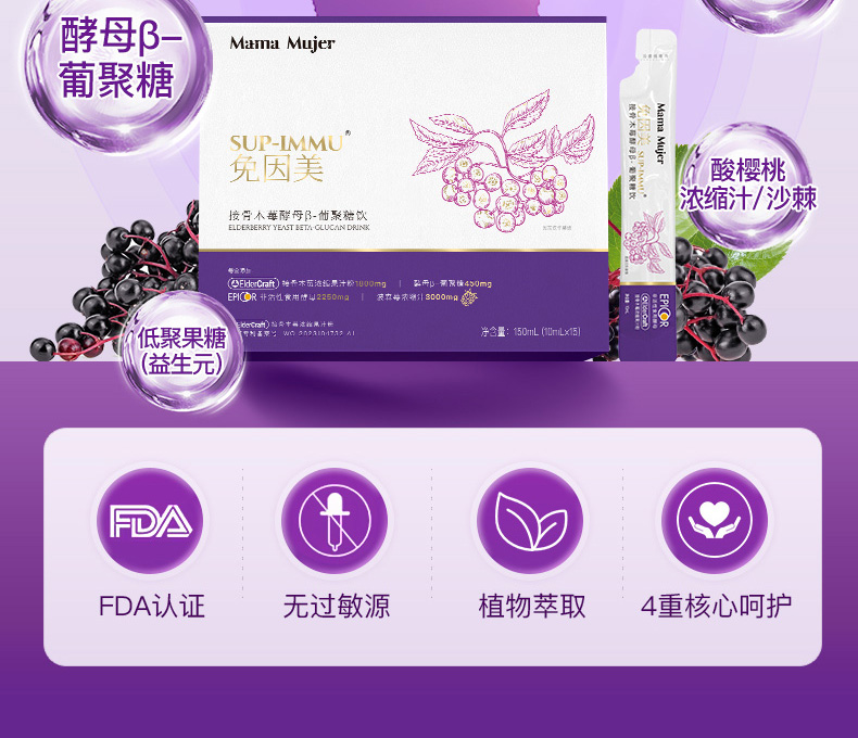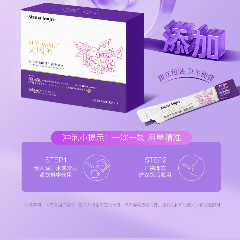 【不参与双12满赠活动】【紧急补货】【现货】Mama Mujer 免因美 接骨木莓酵母β—葡聚糖饮 呼吸道不适 免疫力调节 15支/盒 国内发货 MMMJ