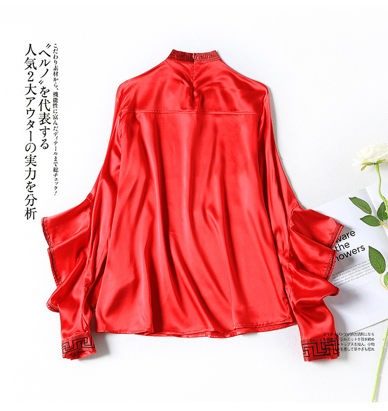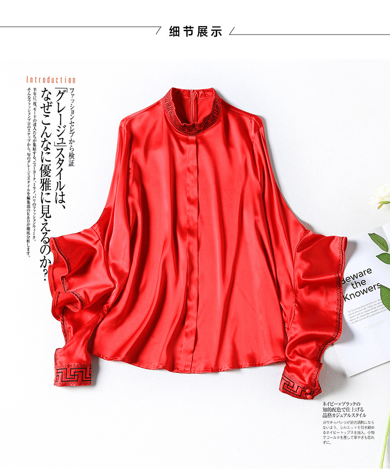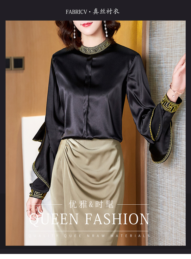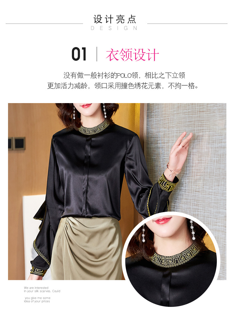 NYT-YR040春夏新款时尚刺绣立领真丝弹力缎衬衣